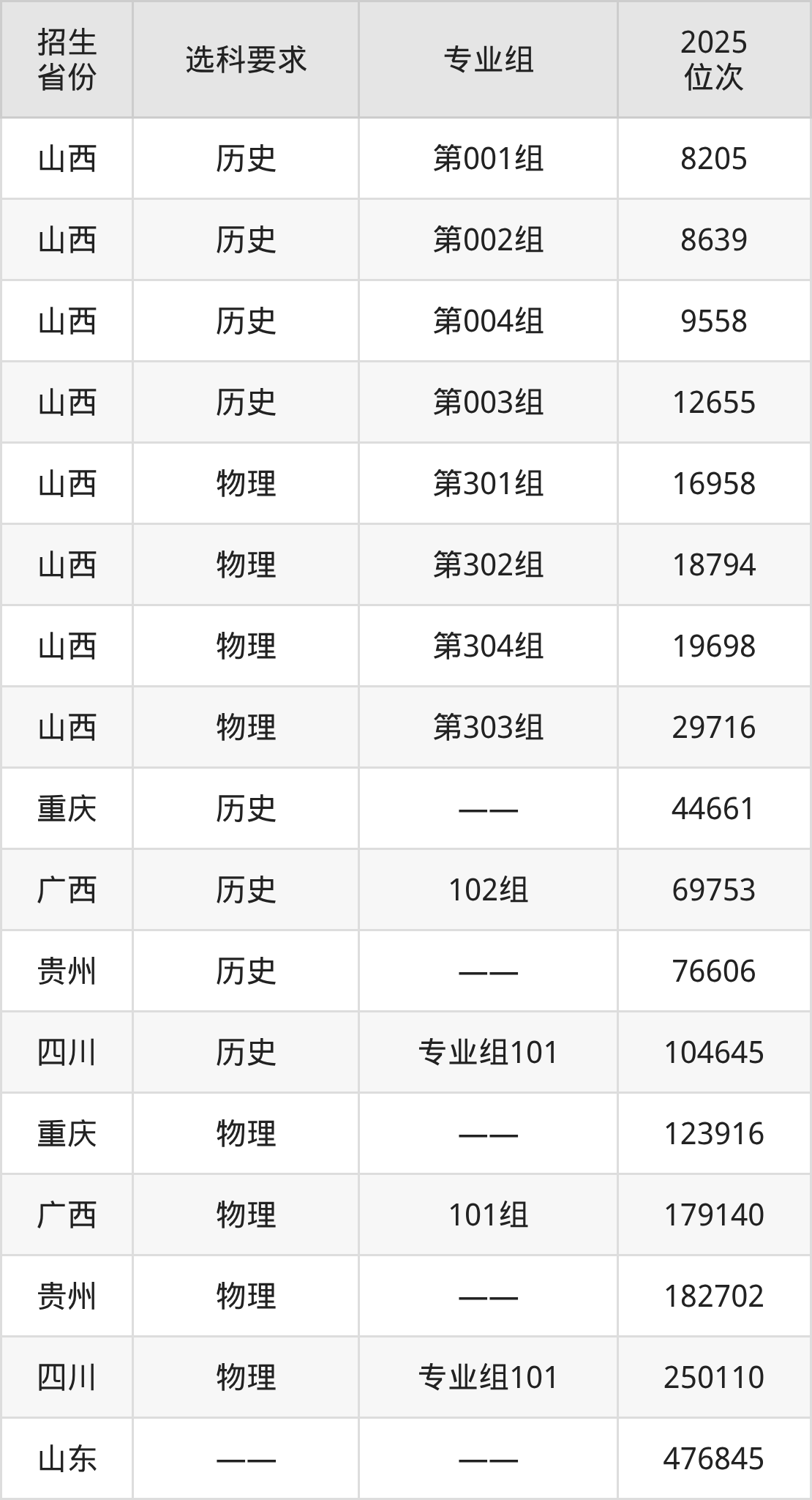 贵阳职业技术学院2025年在全国各省的位次差异较大,最高位次是8205位(山西历史类)、最低位次是476845位(山东)。各省具体位次请看下图: