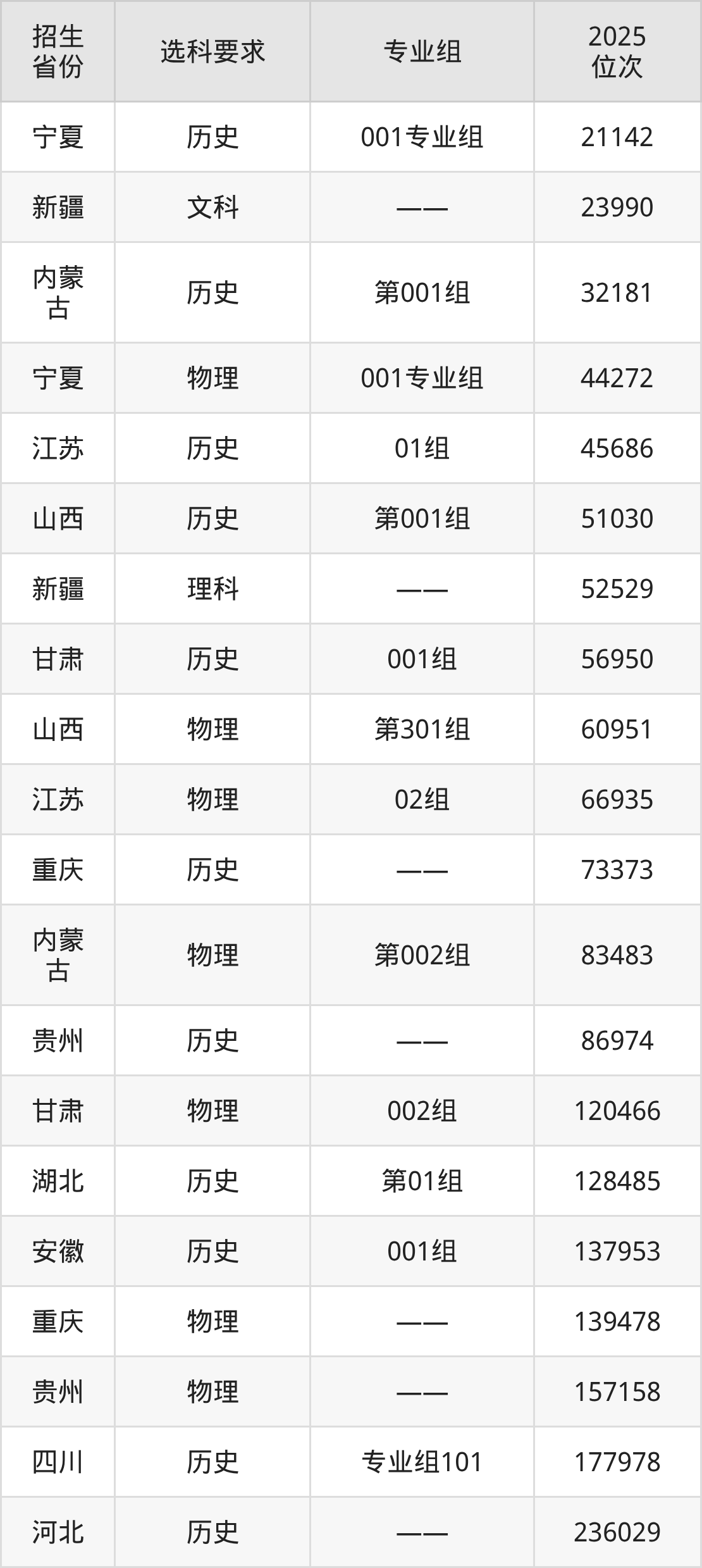 西安城市建设职业学院2025年在全国各省的位次差异较大,最高位次是21142位(宁夏历史类)、最低位次是634741位(山东)。各省具体位次请看下图: