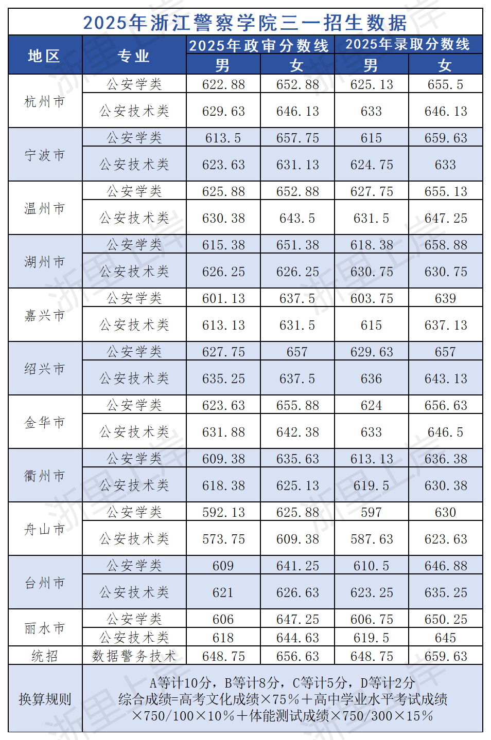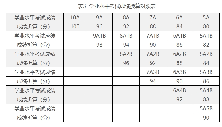 学考成绩折算方法:书面材料评审成绩=学业水平考试折算成绩[A等计10分,B等计8分,C等计6分(新高考之前的往届生学业水平考试C等计2分),D等计2分(满分100分)]×60%+中学阶段综合表现专家评分×40%。