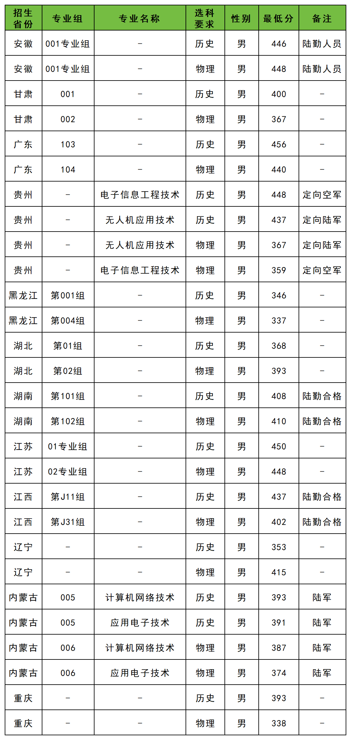 下面是山东信息职业技术学院2025年在全国各省定向士官招生分数线一览表,供参考: