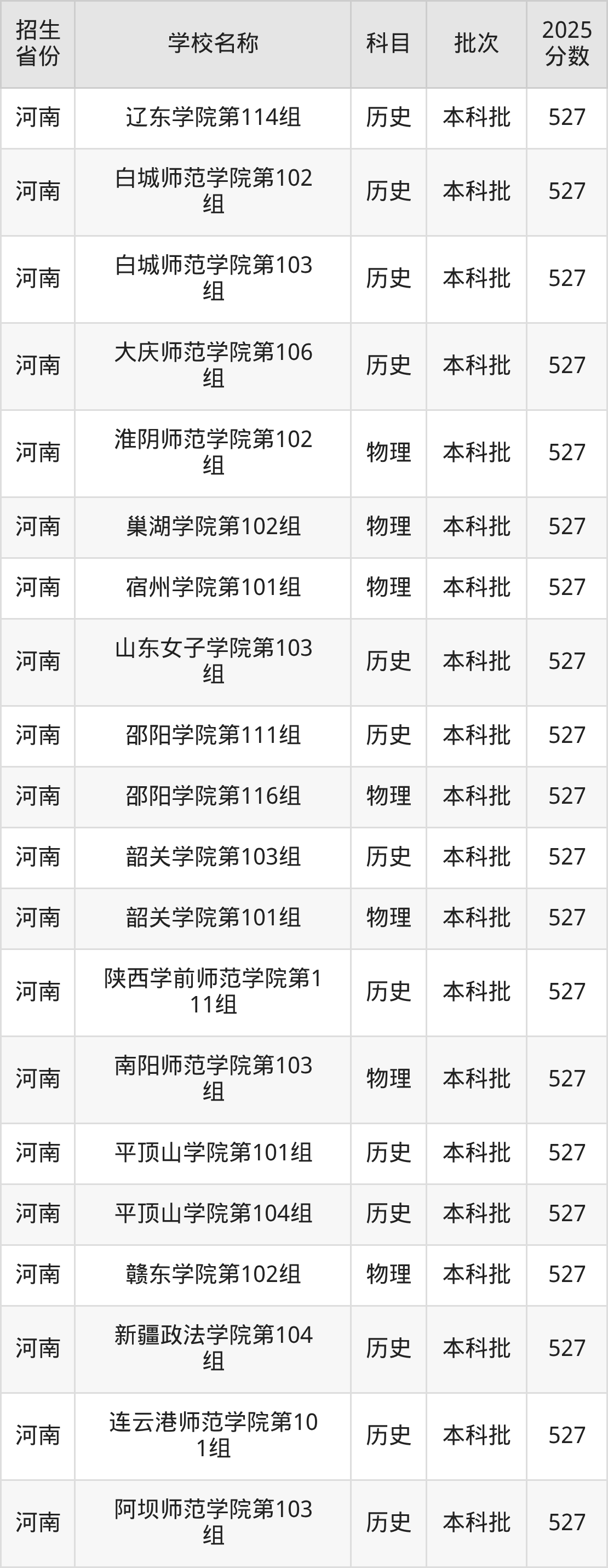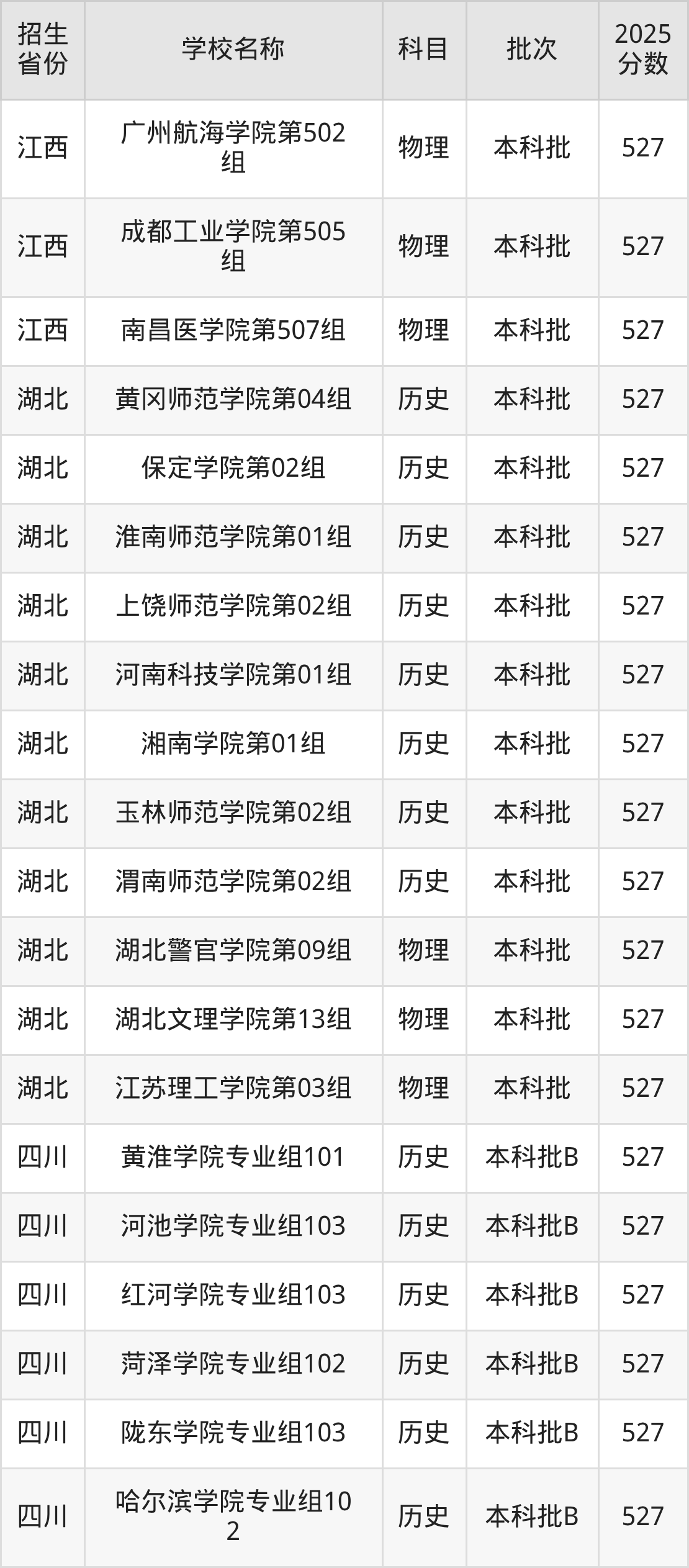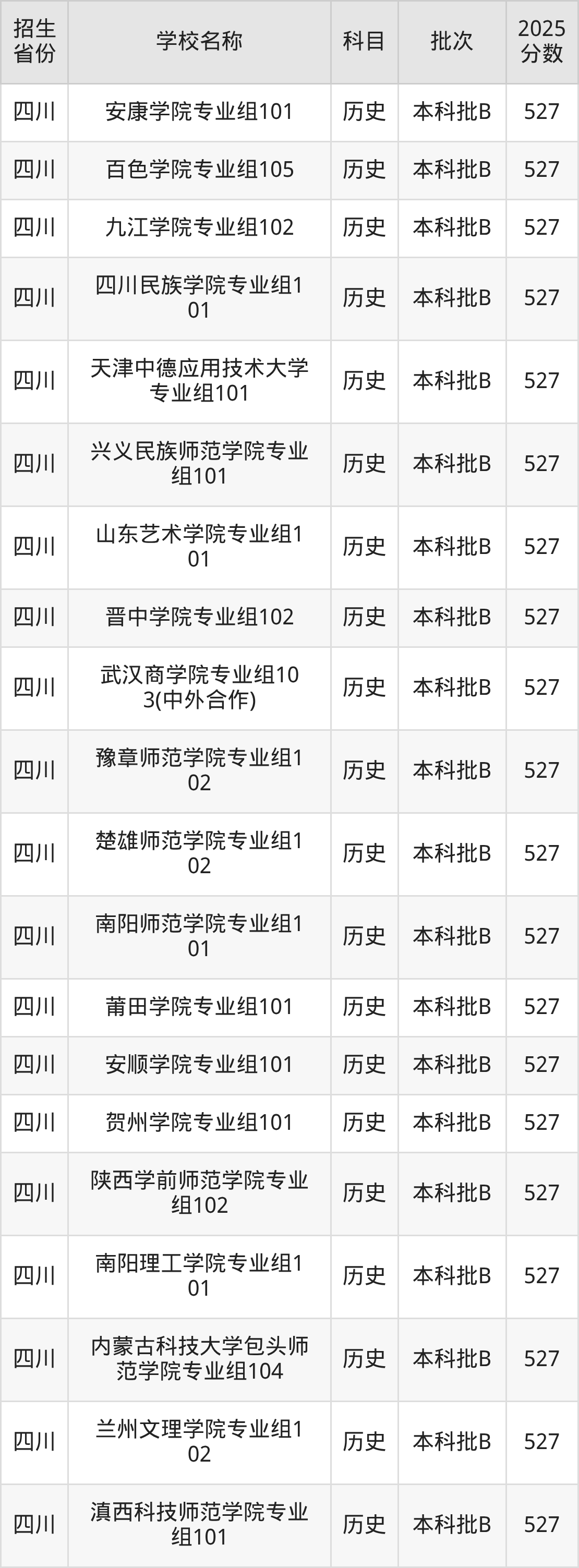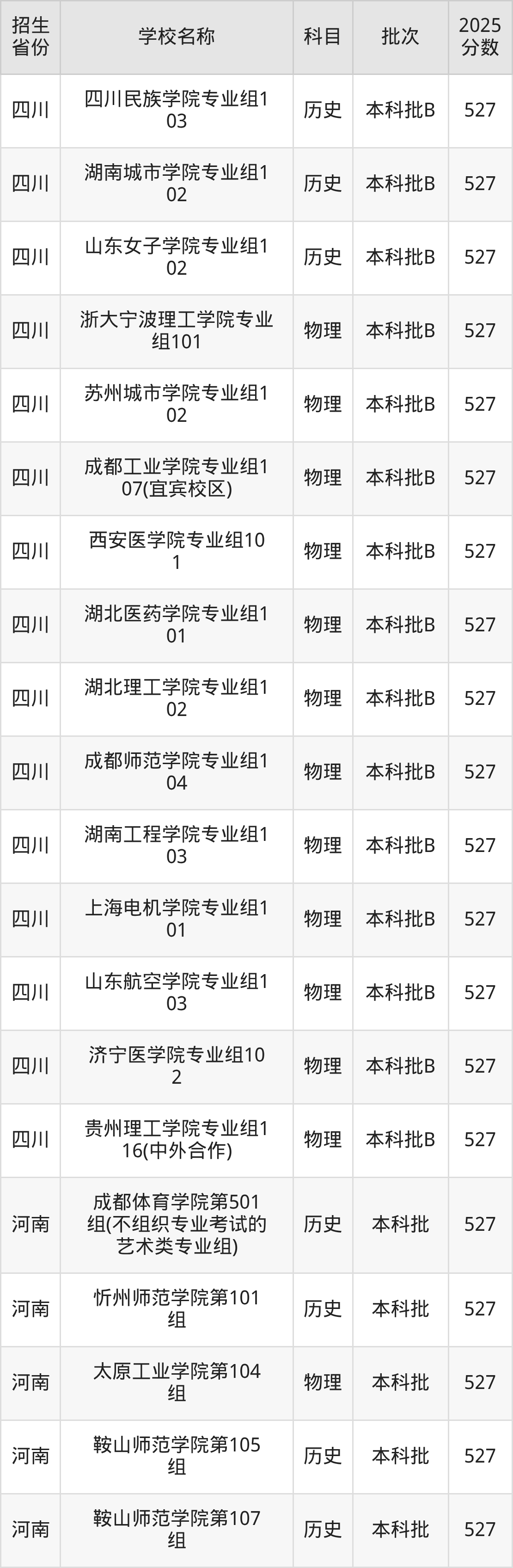 二、各省527分的二本公办大学名单