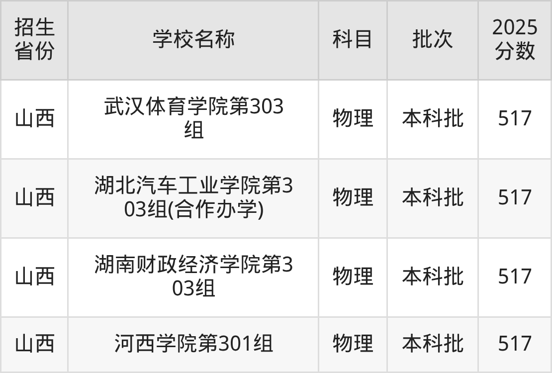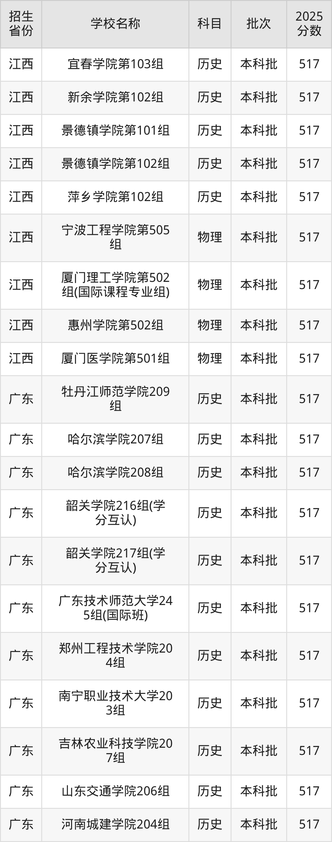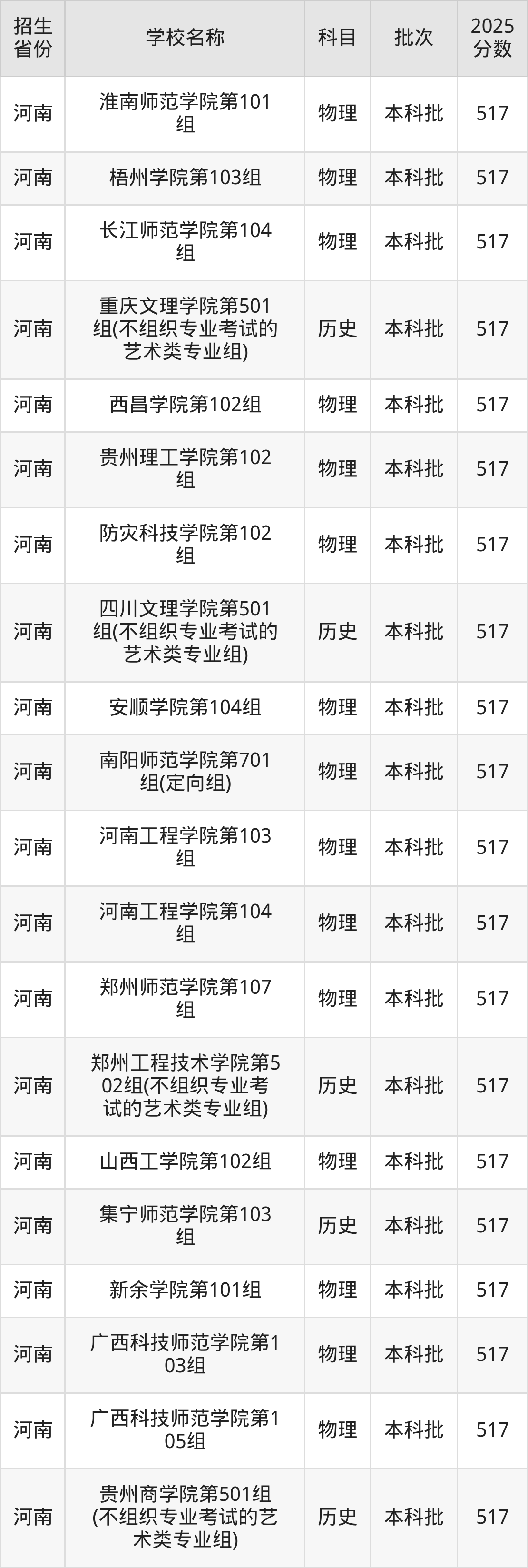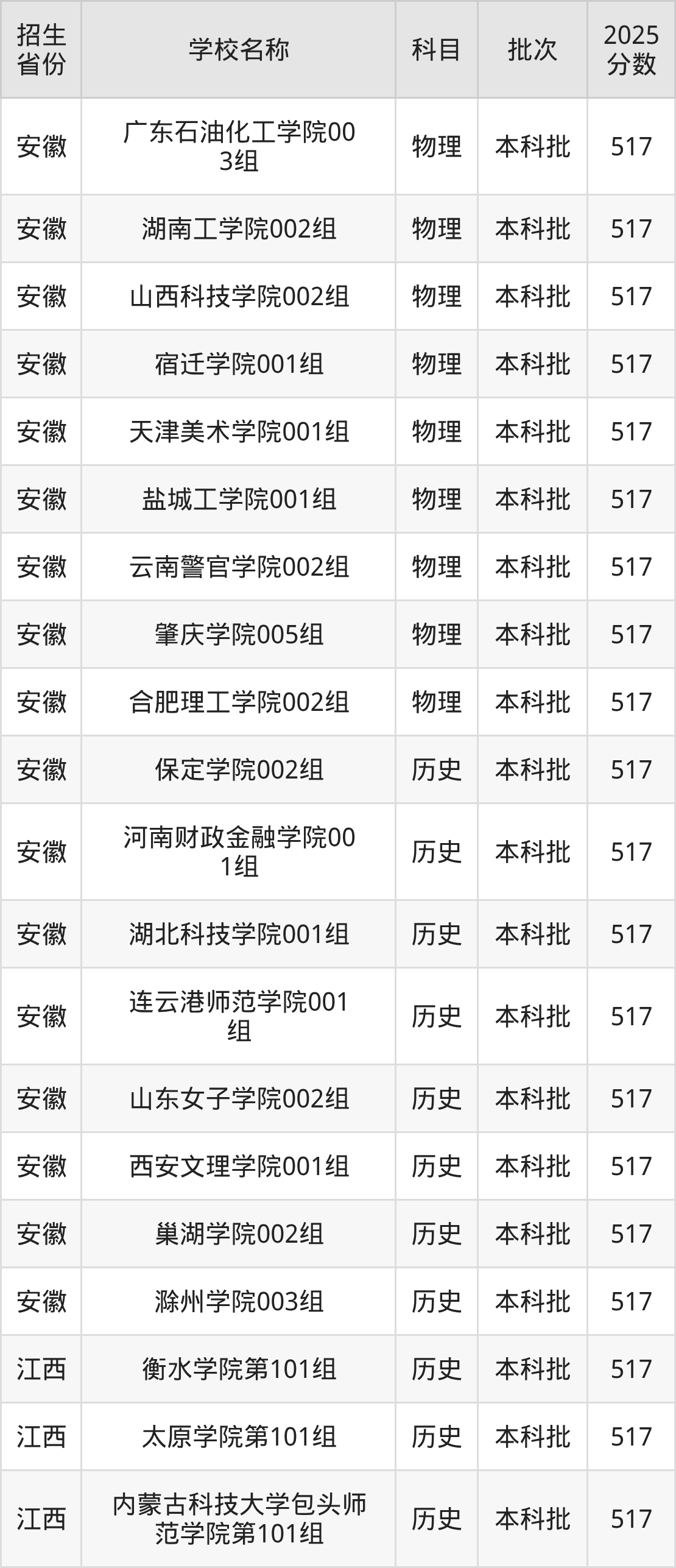 二、各省517分的二本公办大学名单