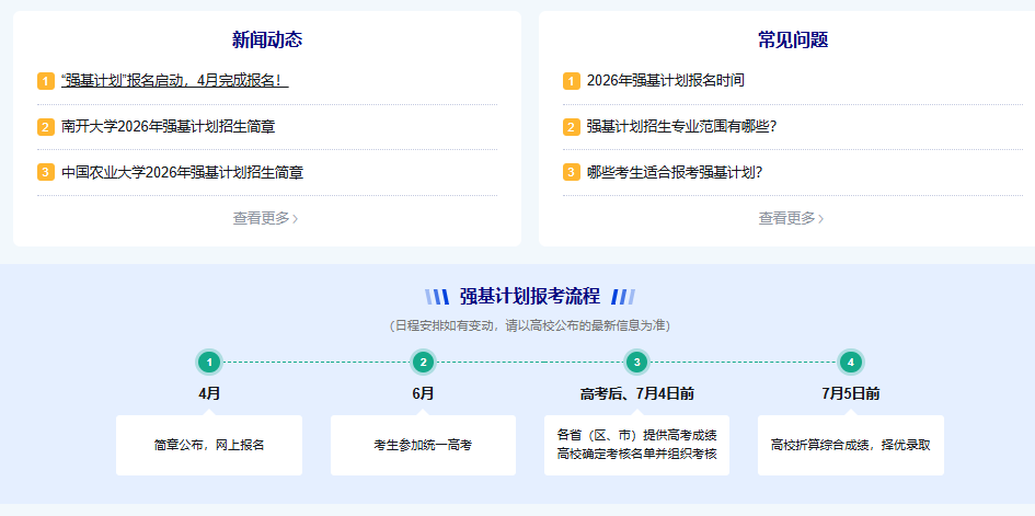 想要参加强基计划,需经历网上报名(4月份),参加高考(6月份),等待校测等环节,基础学科表现突出或者是成绩优异的同学均可报名参加强基计划。本期老师将带来2025强基计划报名条件,并附上强基计划报考流程图解,供查阅。