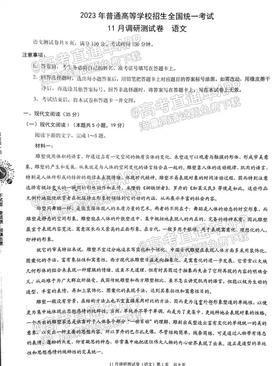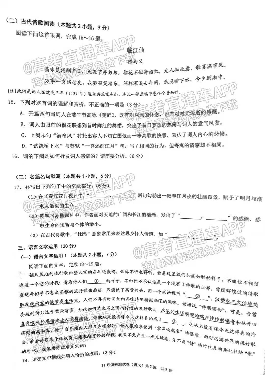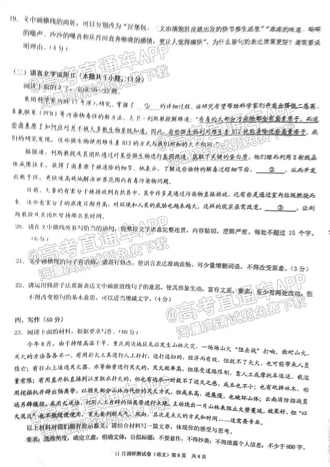 目前2023重庆高三联考语文试卷已更新,具体试卷情况如下,如果大家想要了解更多试卷内容,可以进入高考100网进行查看,本试卷共8页,仅供参考。
