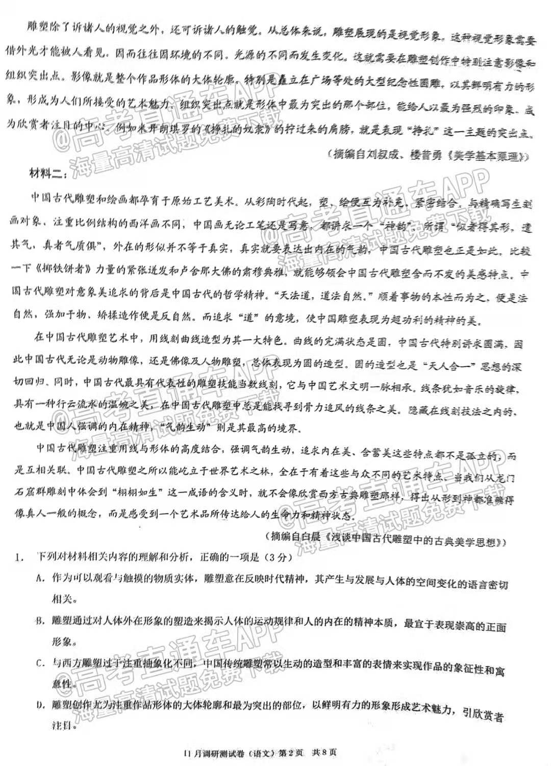目前2023重庆高三联考语文答案已更新,具体答案情况如下,如果大家想要了解更多试卷内容,可以进入高考100网进行查看,本答案共2页,仅供参考。