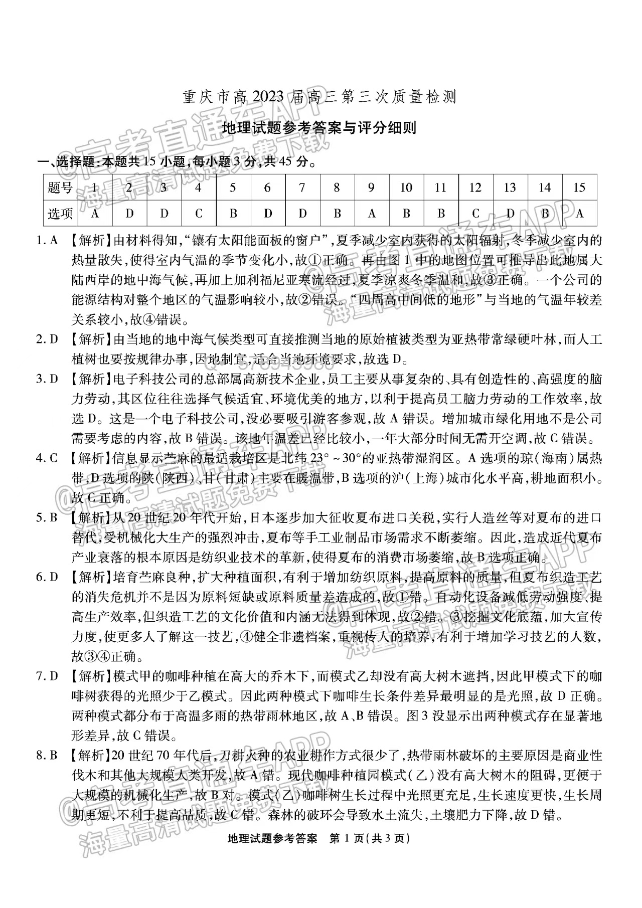 目前2023重庆高三联考地理答案已更新,具体答案情况如下,如果大家想要了解更多试卷内容,可以进入高考100网进行查看,本答案共3页,仅供参考。