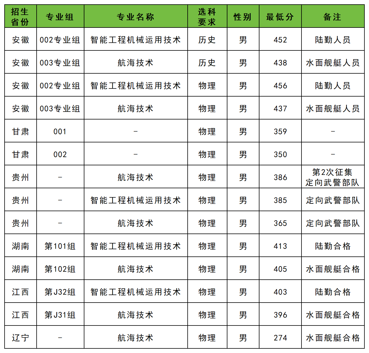 下面是安徽交通职业技术学院2025年在全国各省定向士官招生分数线一览表,供参考: