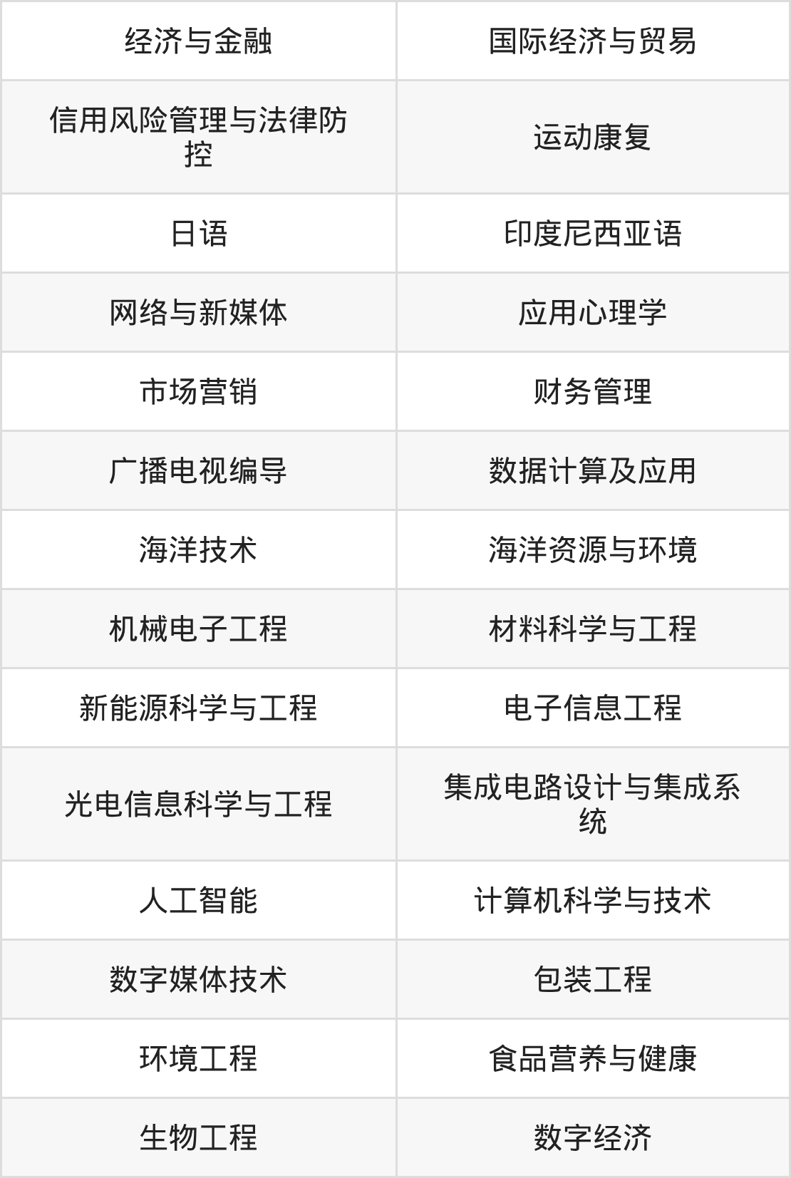根据2025年福建高考招生计划可知,福建技术师范学院招生专业包含经济与金融、国际经济与贸易、信用风险管理与法律防控等,完整版名单如下。