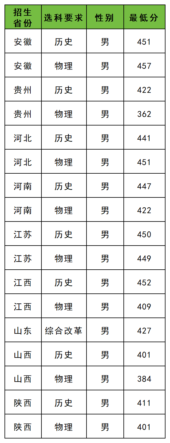 下面是阜阳职业技术学院2025年在全国各省定向士官招生分数线一览表,供参考: