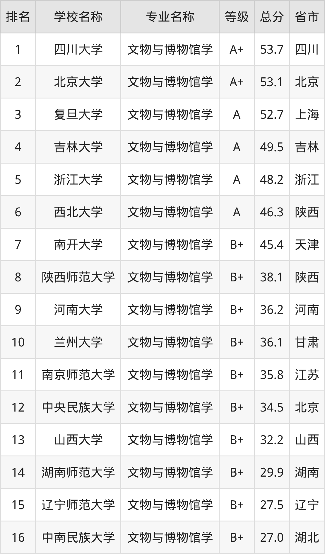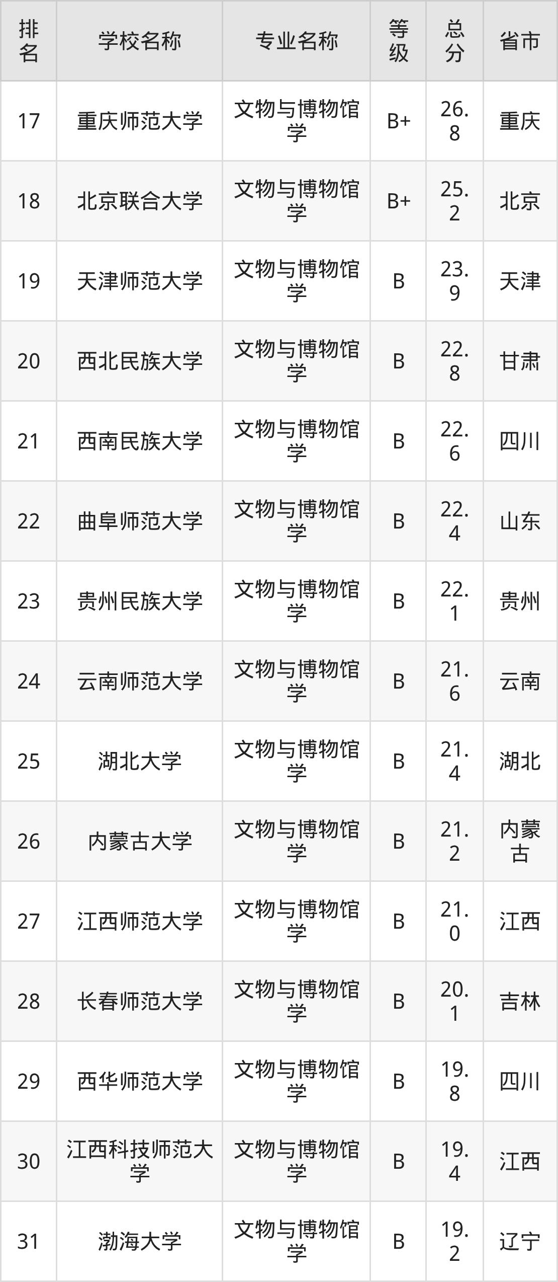 附文物与博物馆学专业全国31所院校排名榜单一览表!