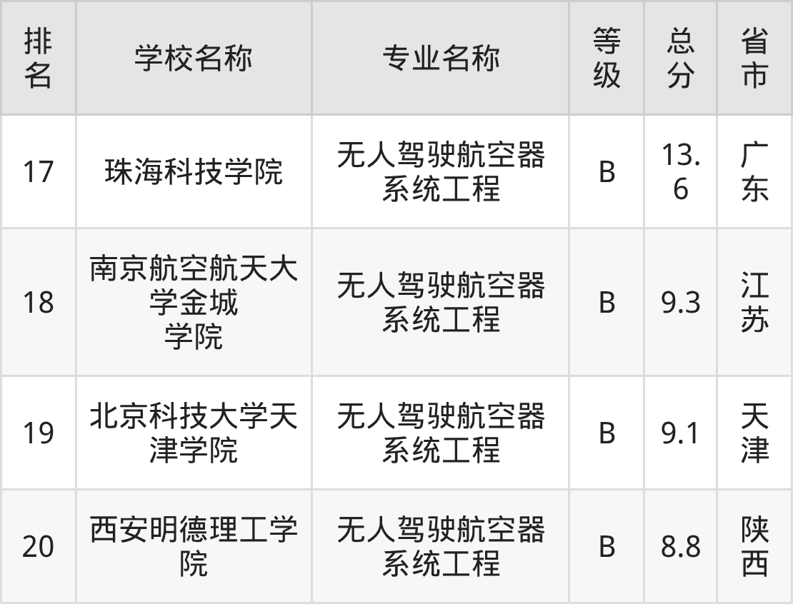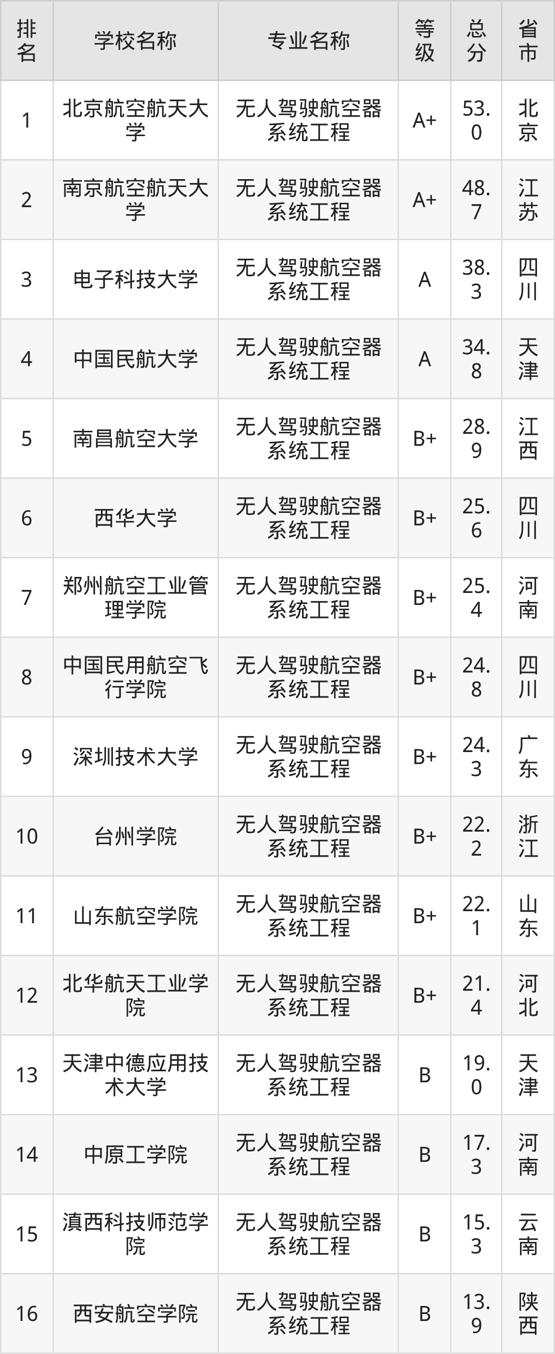附无人驾驶航空器系统工程专业全国20所院校排名榜单一览表!