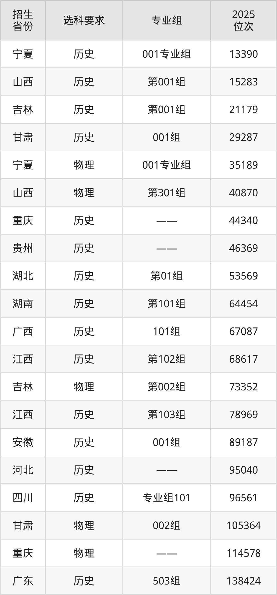 江西司法警官职业学院2025年在全国各省的位次差异较大,最高位次是13390位(宁夏历史类)、最低位次是347406位(广东物理类)。各省具体位次请看下图: