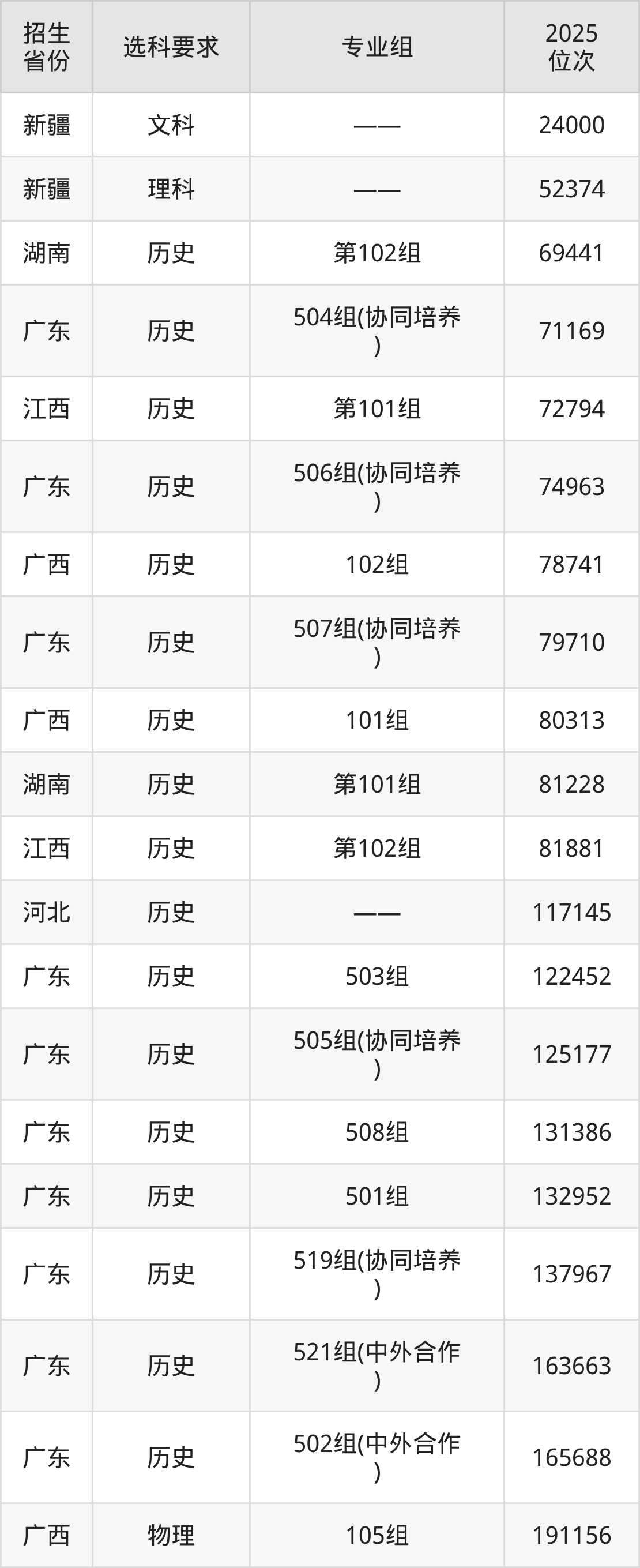 广东女子职业技术学院2025年在全国各省的位次差异较大,最高位次是24000位(新疆文科)、最低位次是382075位(广东物理类)。各省具体位次请看下图: