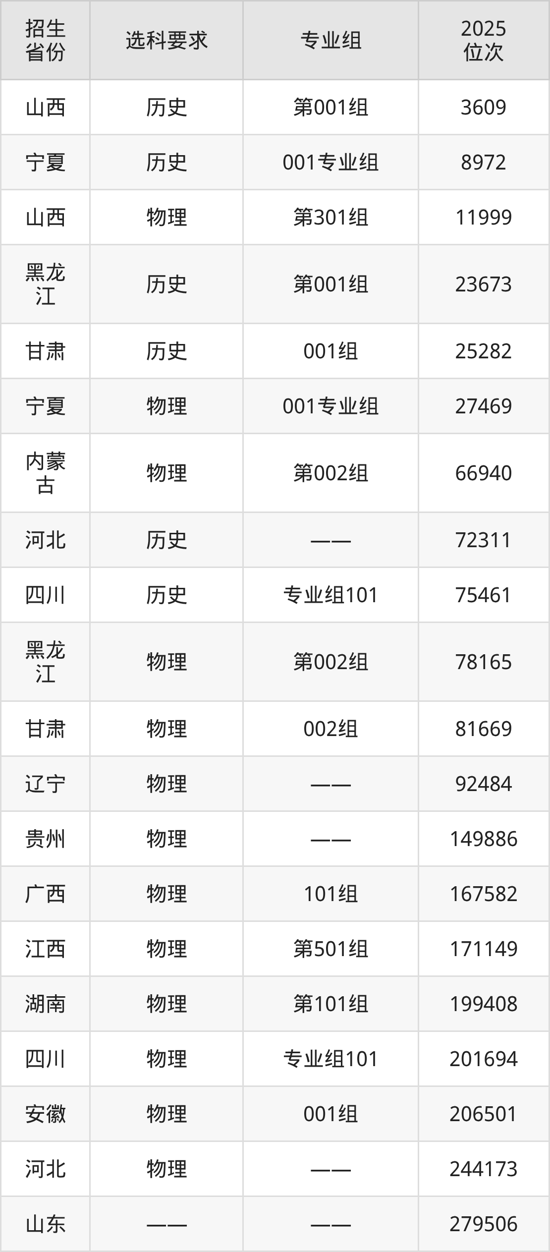 陕西国防工业职业技术学院2025年在全国各省的位次差异较大,最高位次是3609位(山西历史类)、最低位次是279506位(山东)。各省具体位次请看下图: