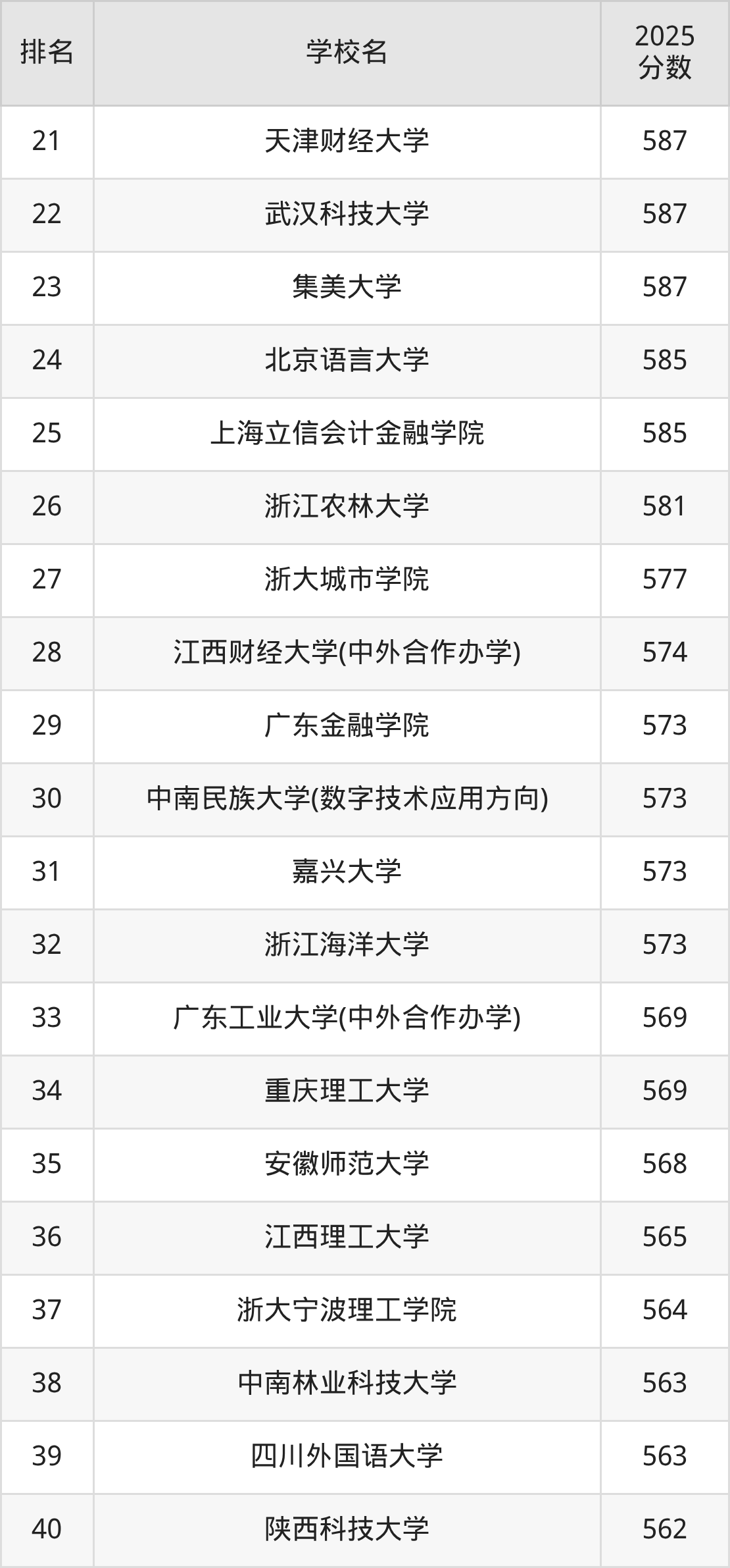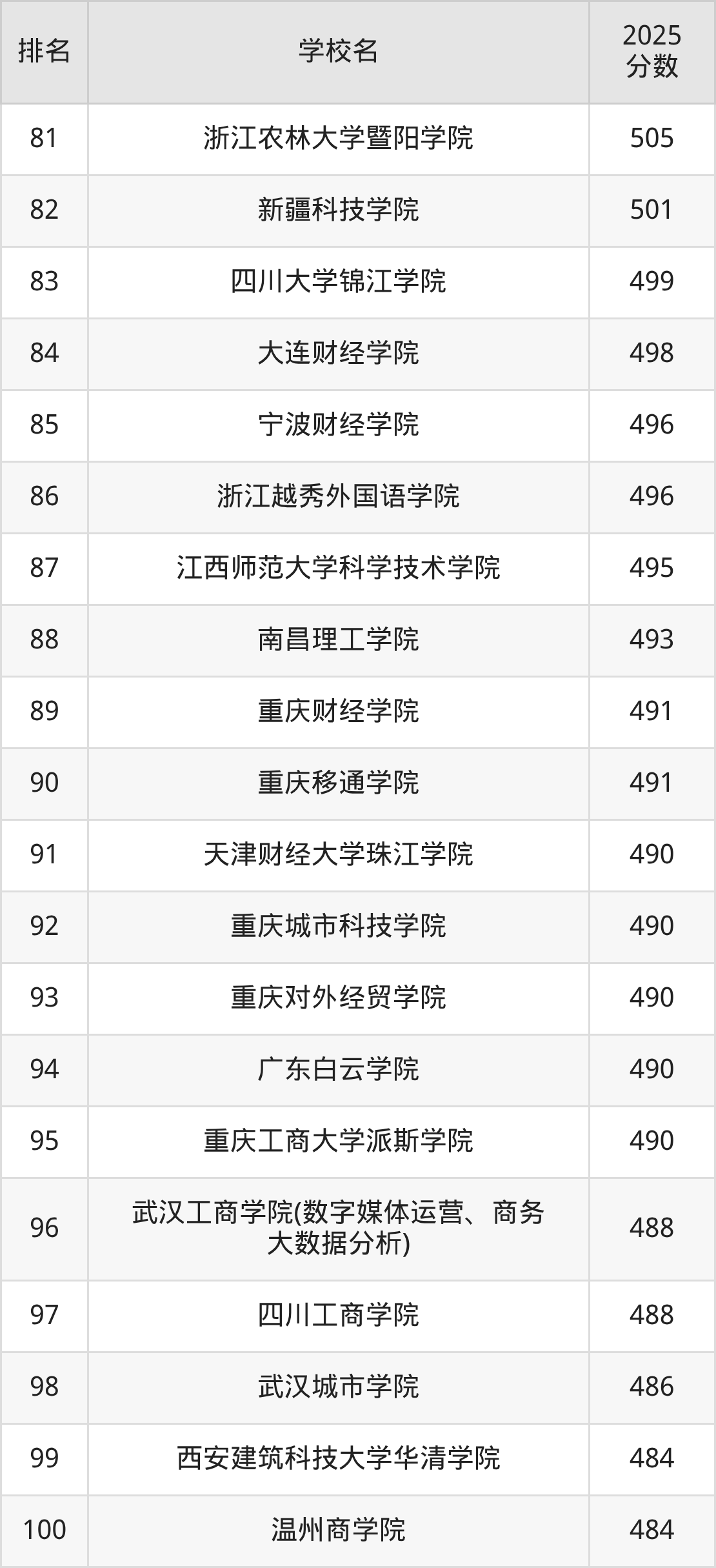以下为全国数字经济专业在浙江省分数线排名前100的大学。