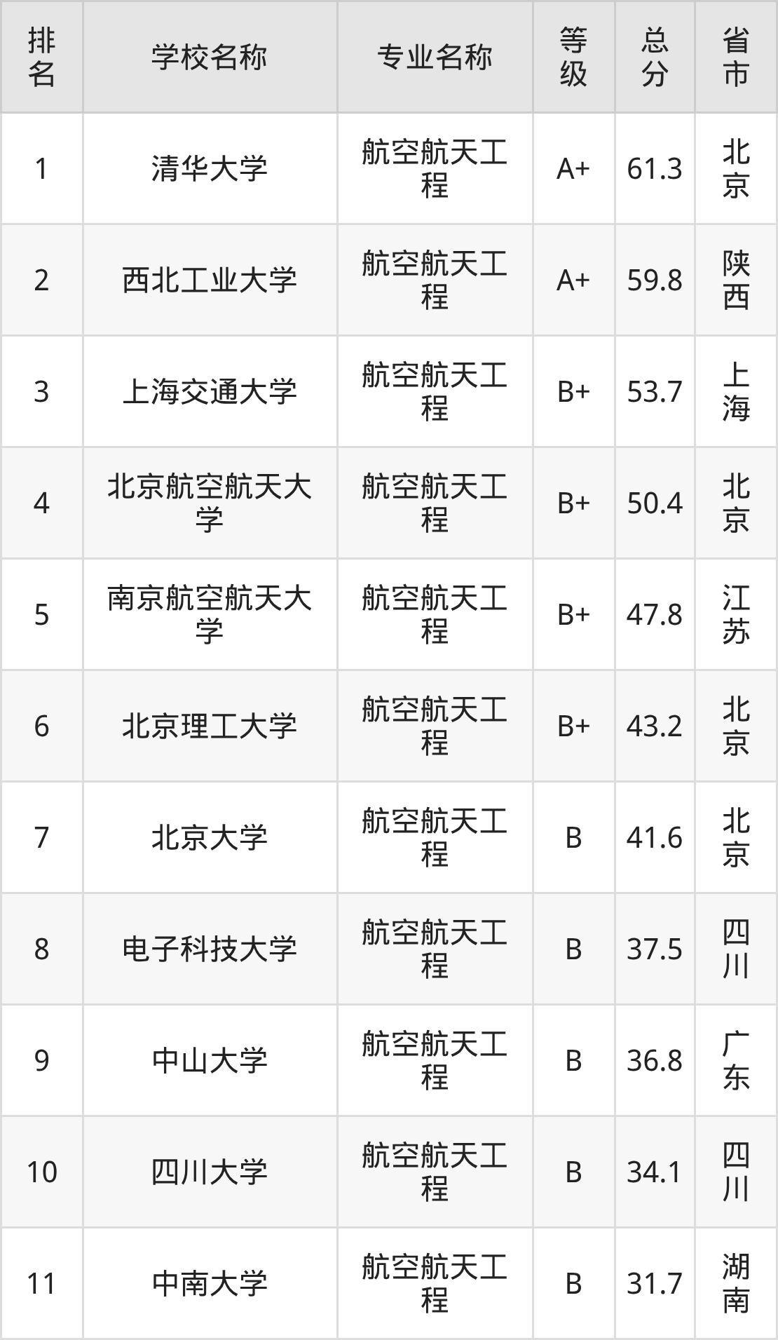 附航空航天工程专业全国11所院校排名榜单一览表!