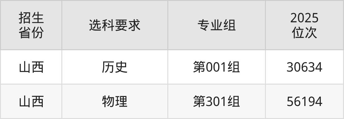 大同煤炭职业技术学院2025年的位次差异较大,最高位次是30634位(山西历史类)、最低位次是56194位(山西物理类)。具体位次请看下图: