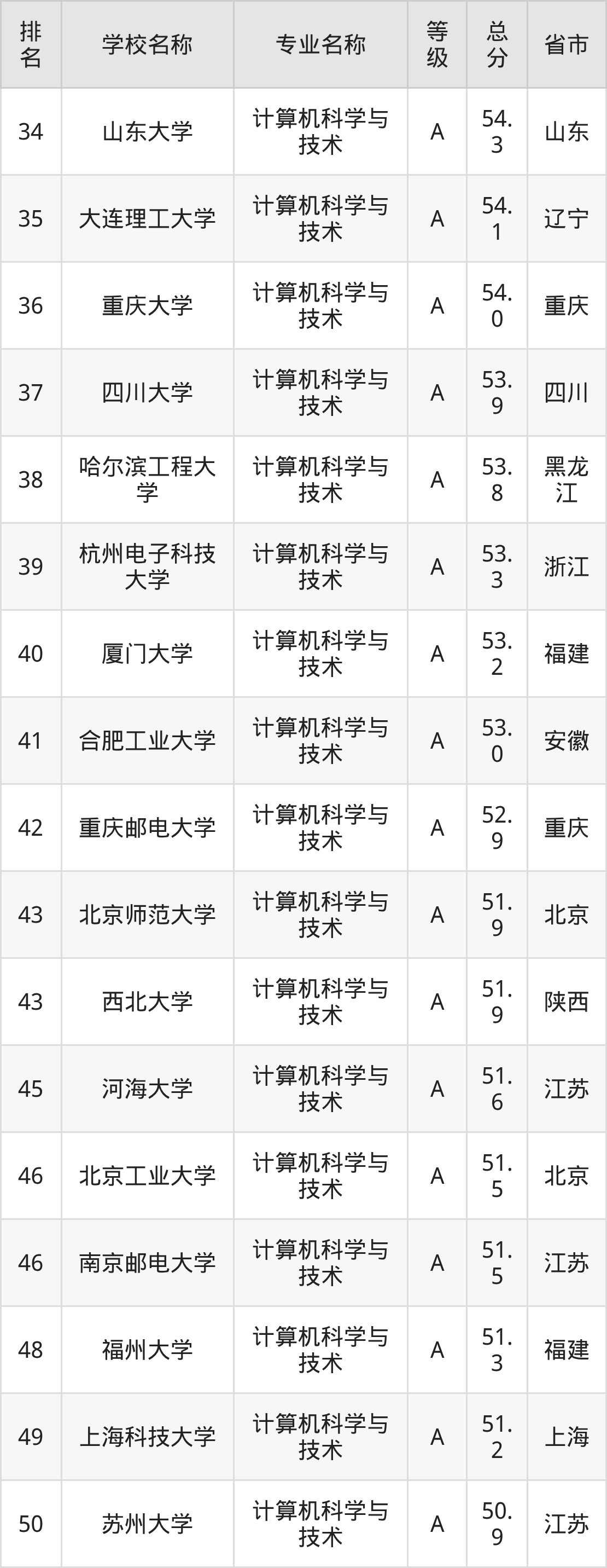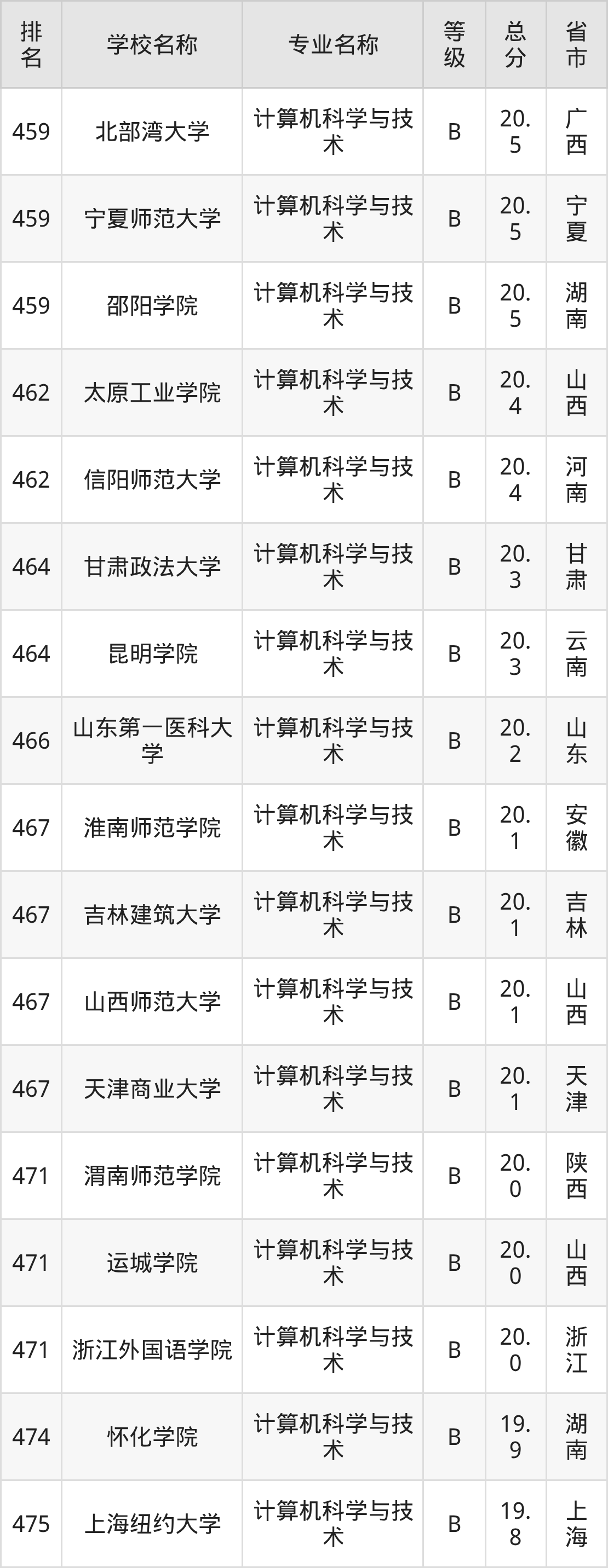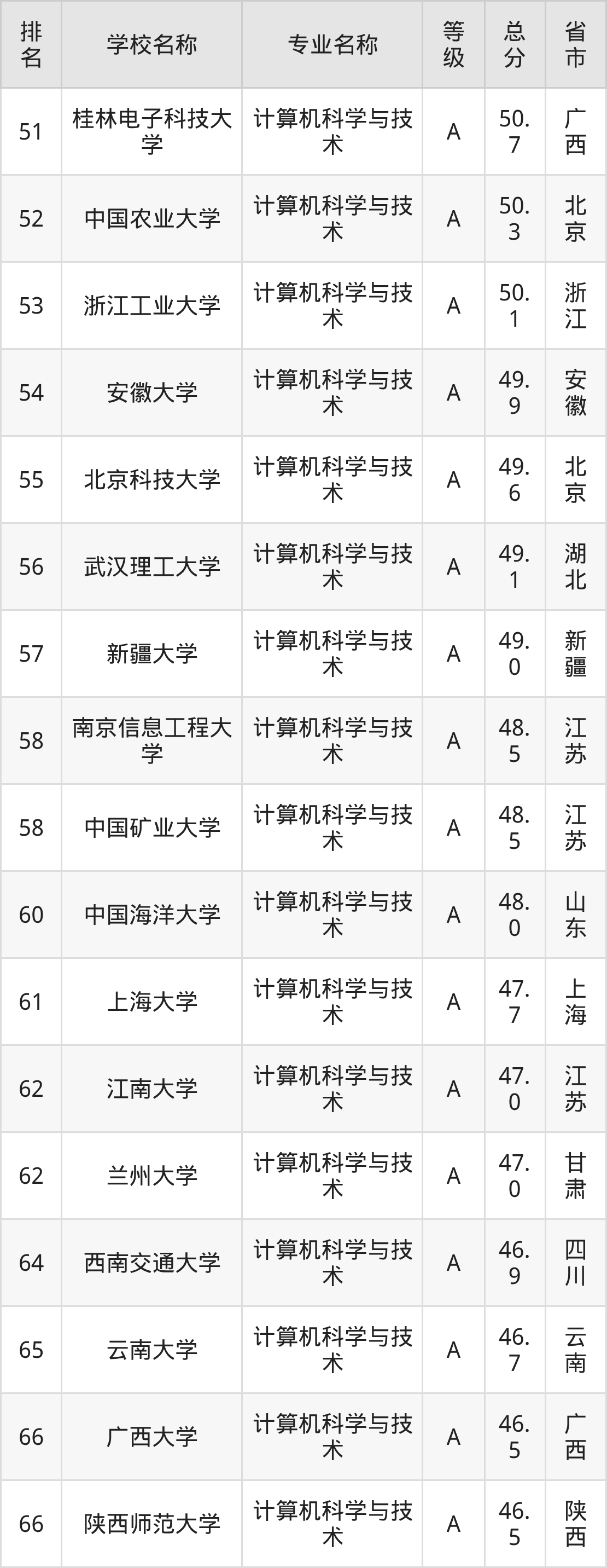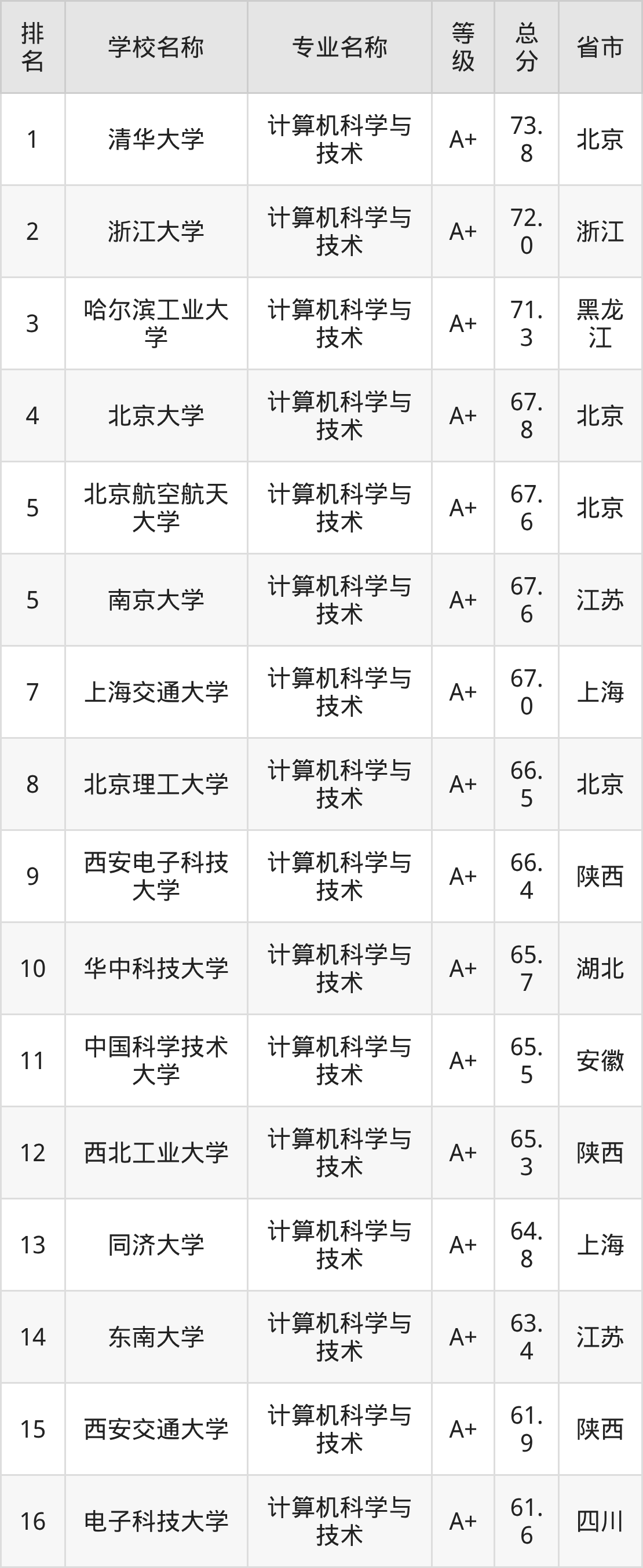 附计算机科学与技术专业全国486所院校排名榜单一览表!
