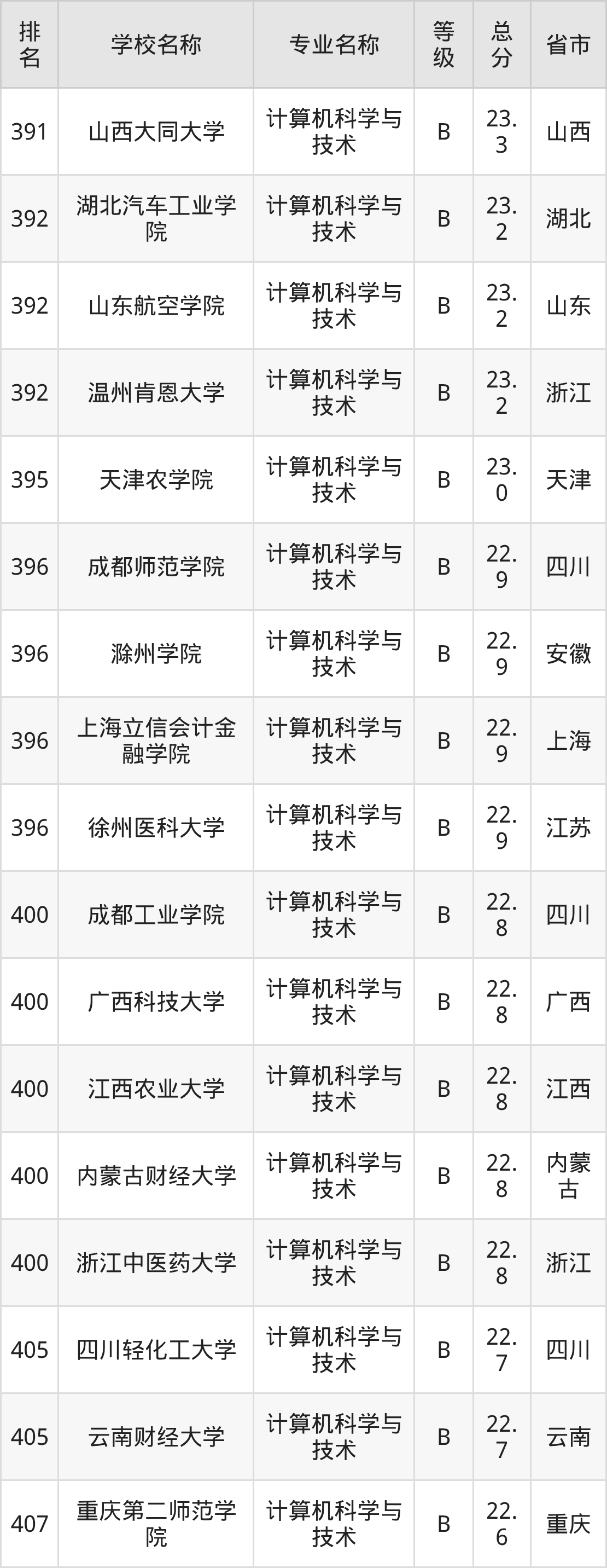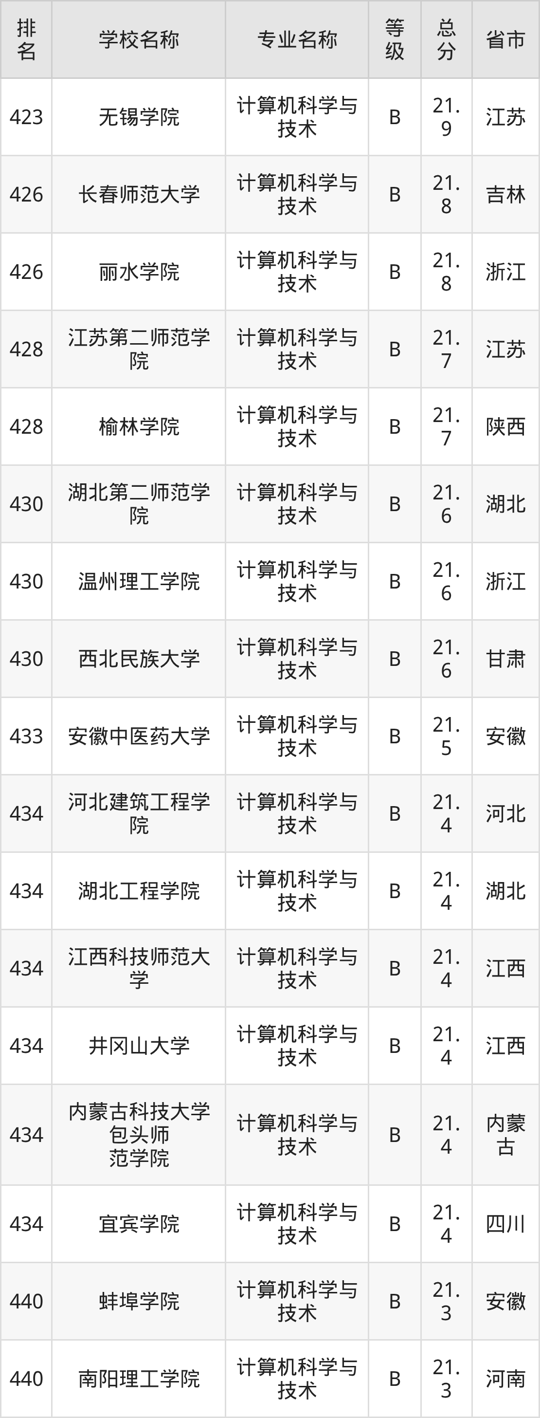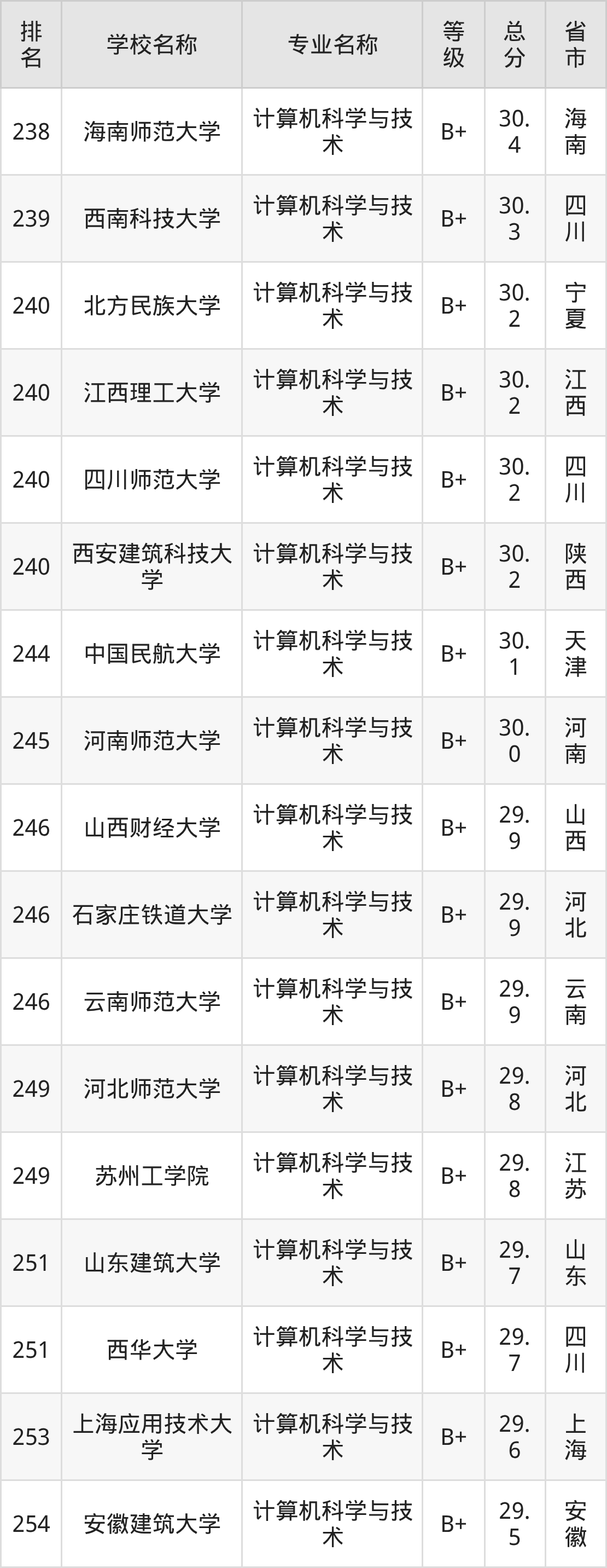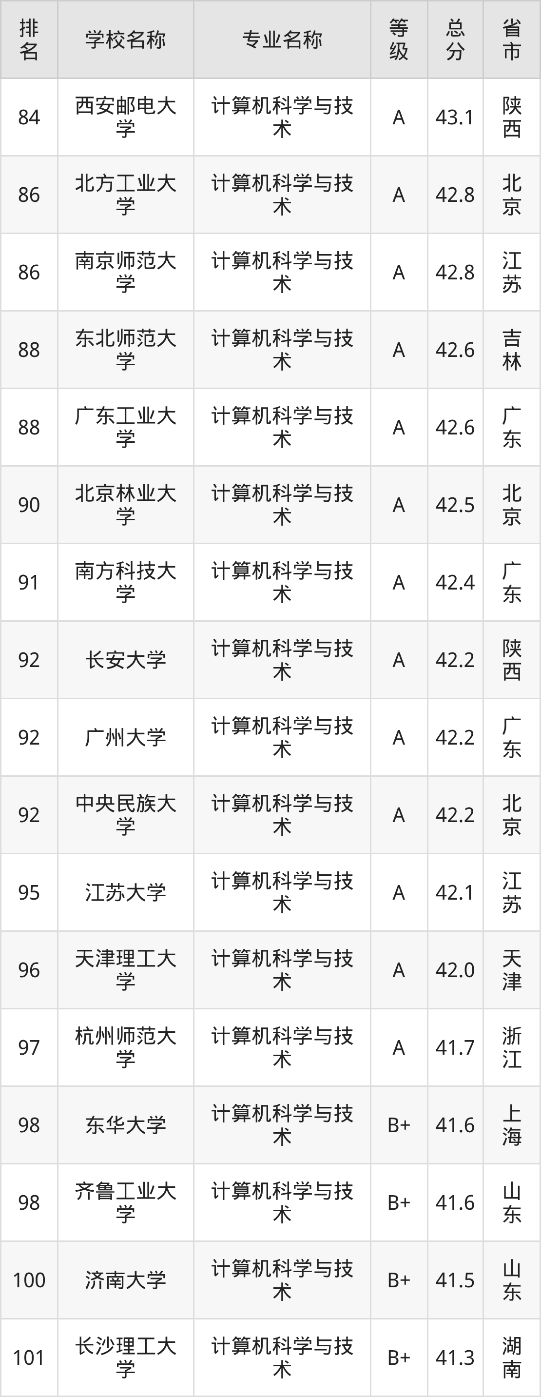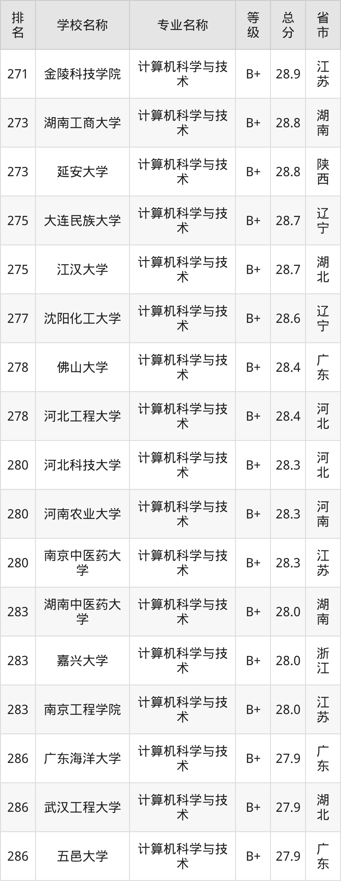 附计算机科学与技术专业全国486所院校排名榜单一览表!