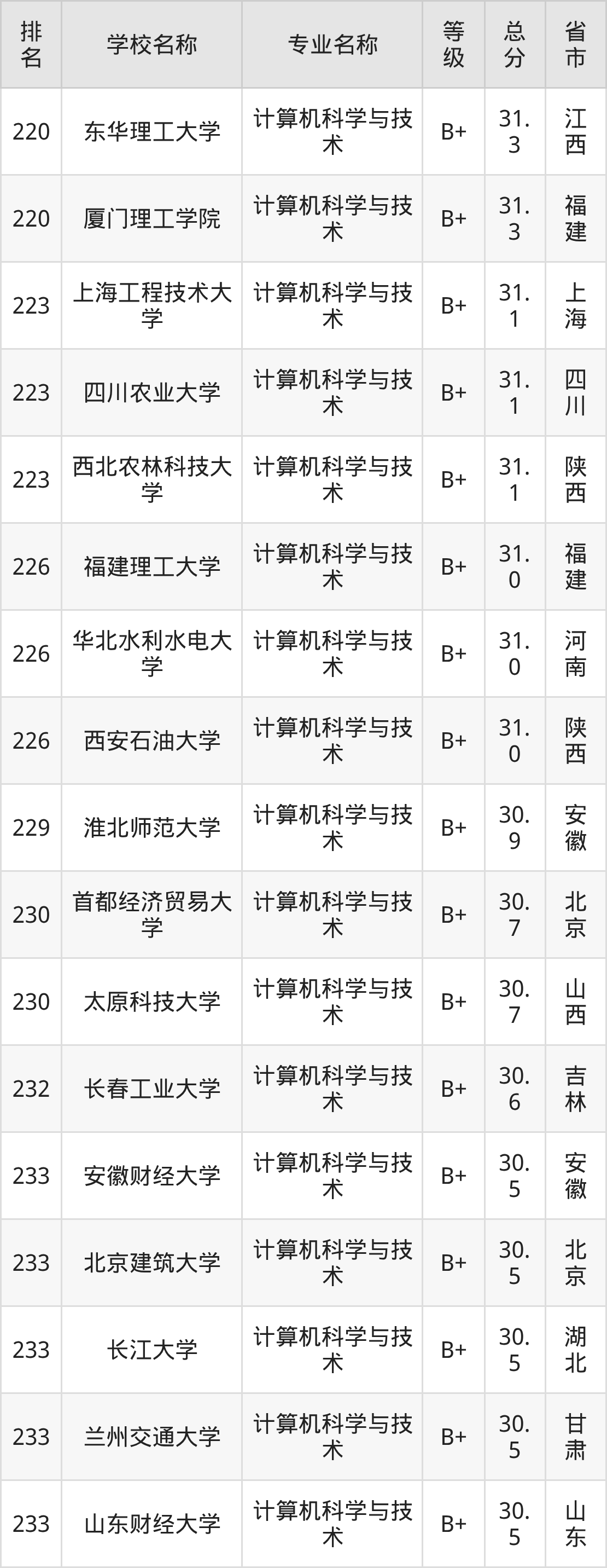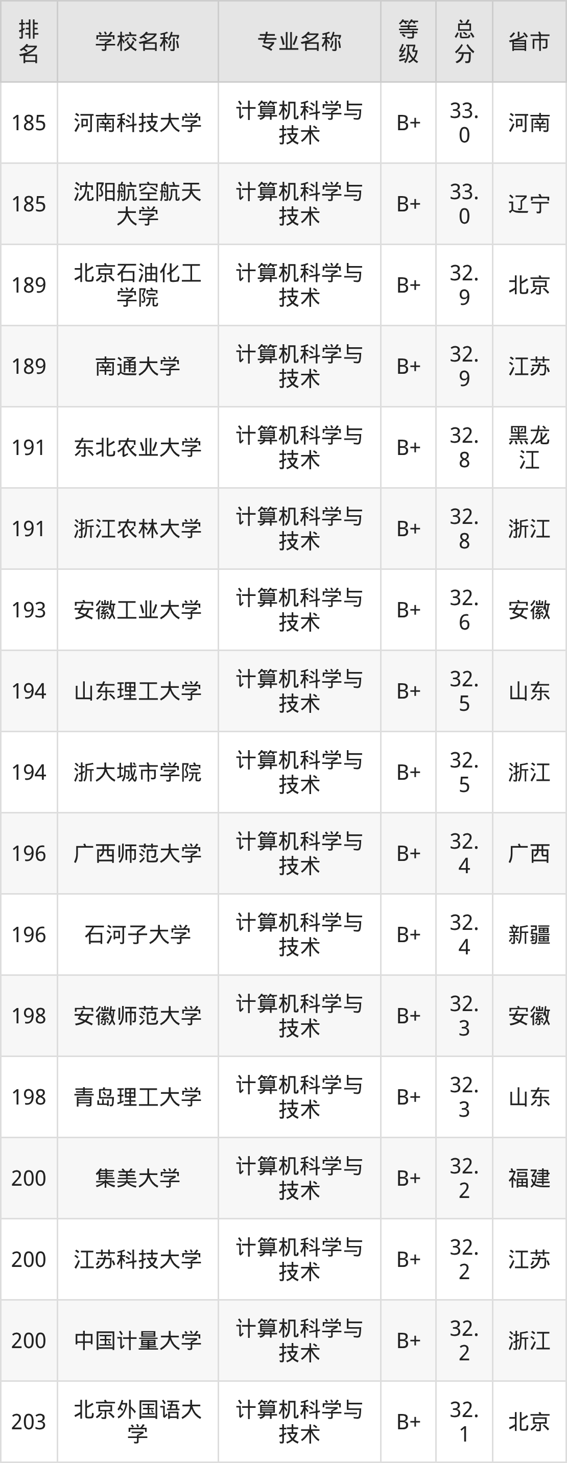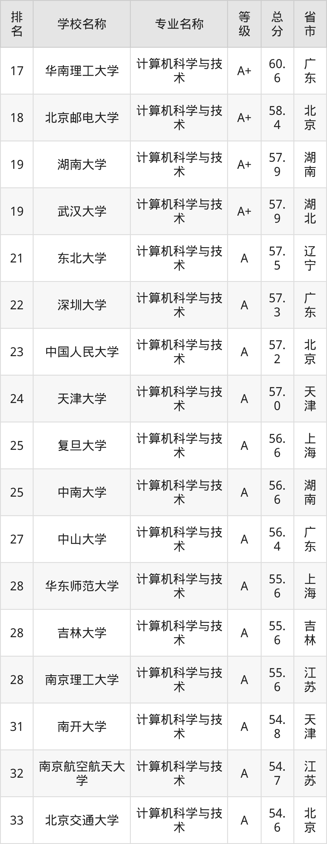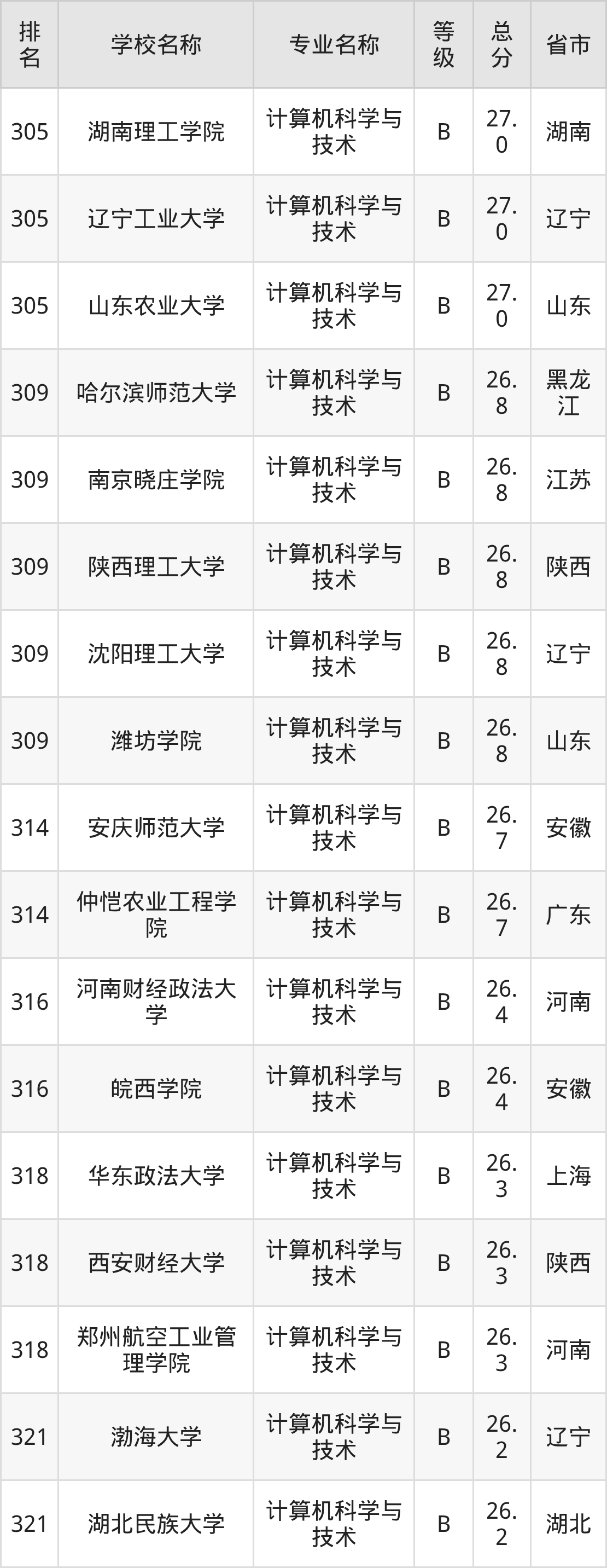 附计算机科学与技术专业全国486所院校排名榜单一览表!