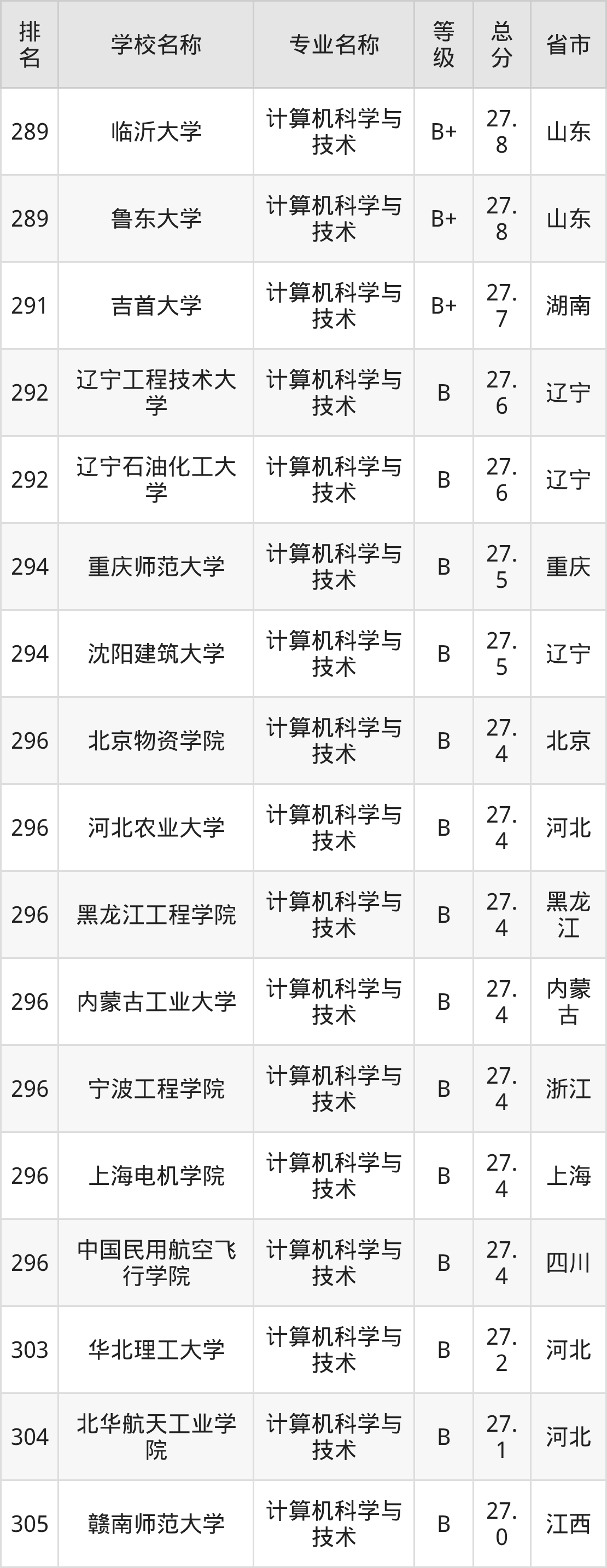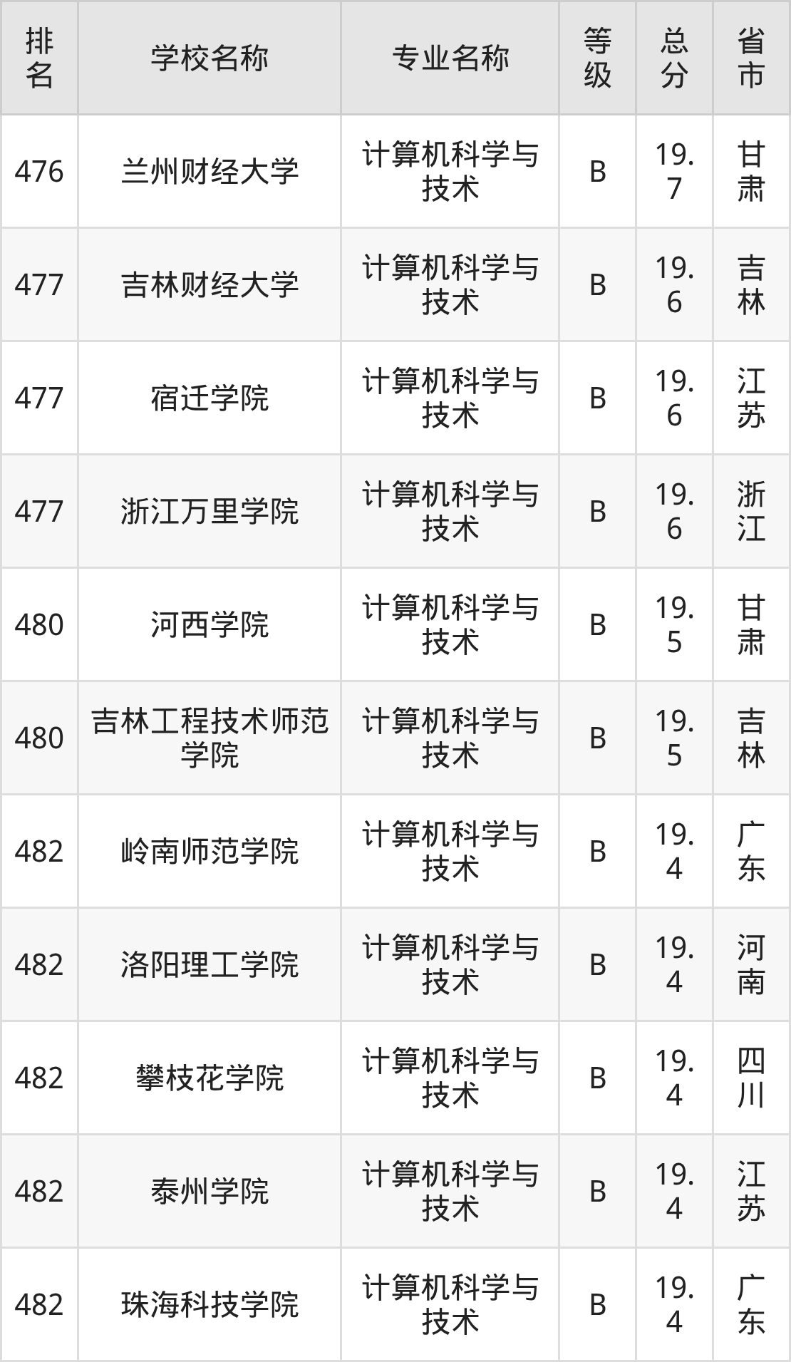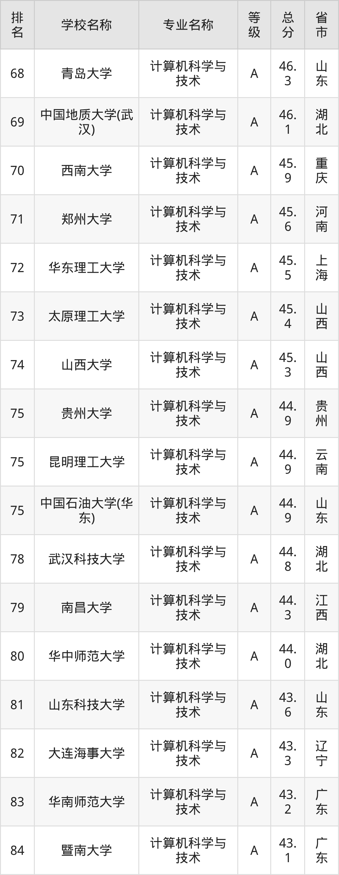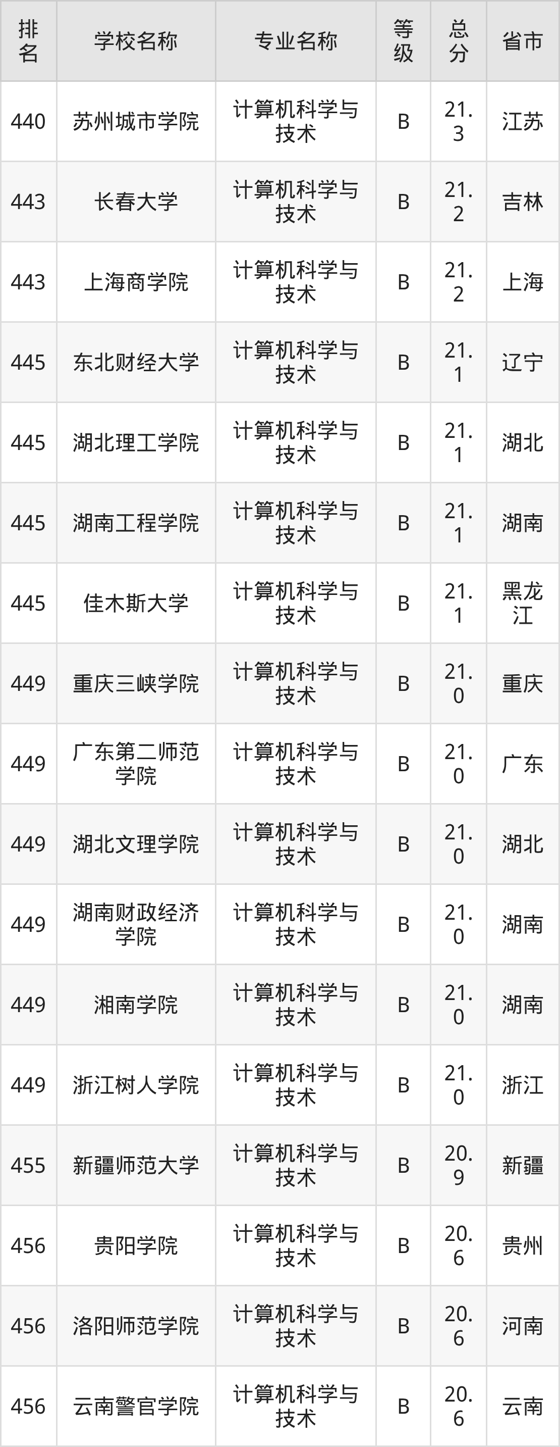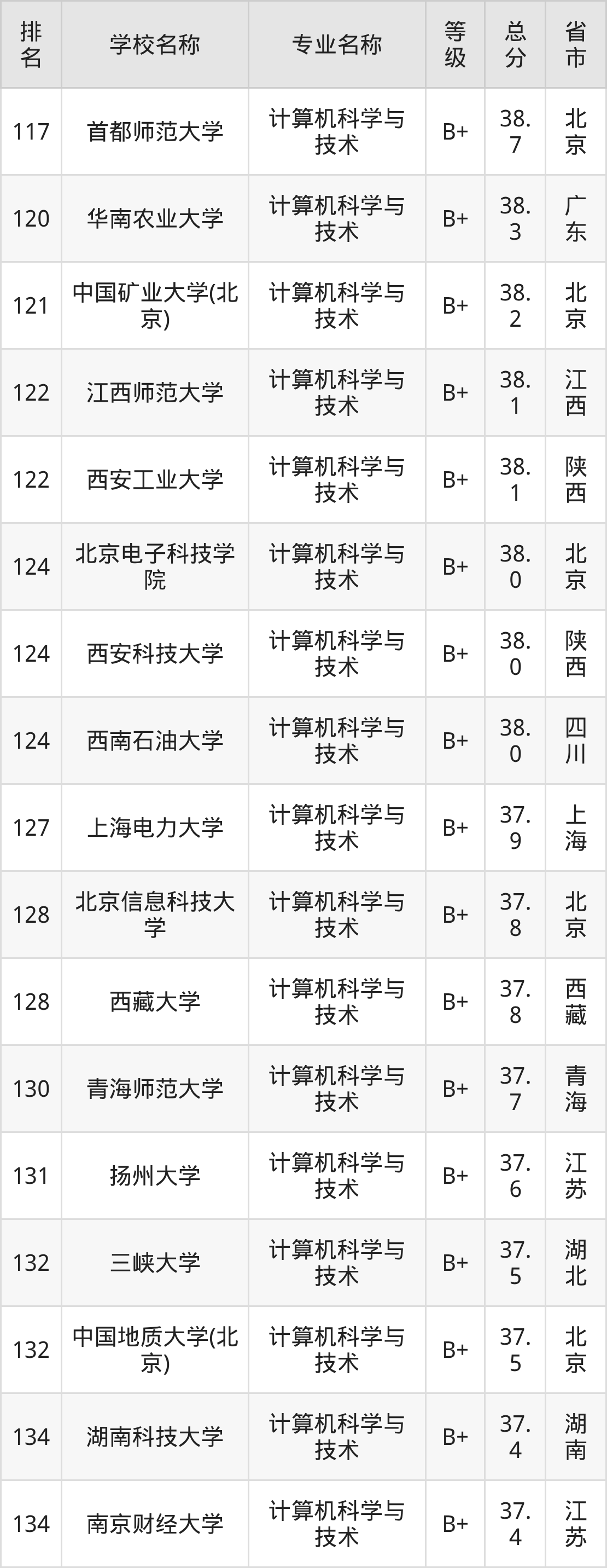 附计算机科学与技术专业全国486所院校排名榜单一览表!