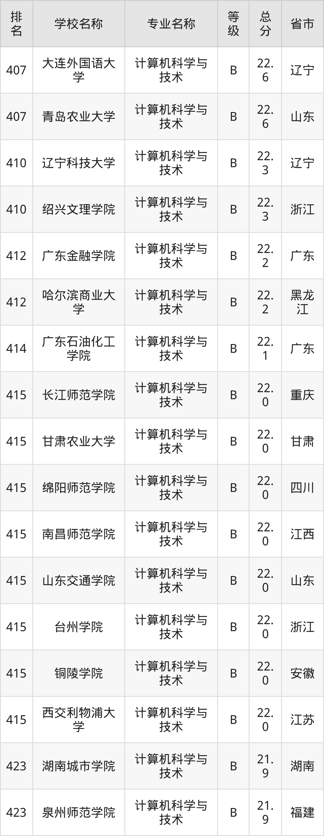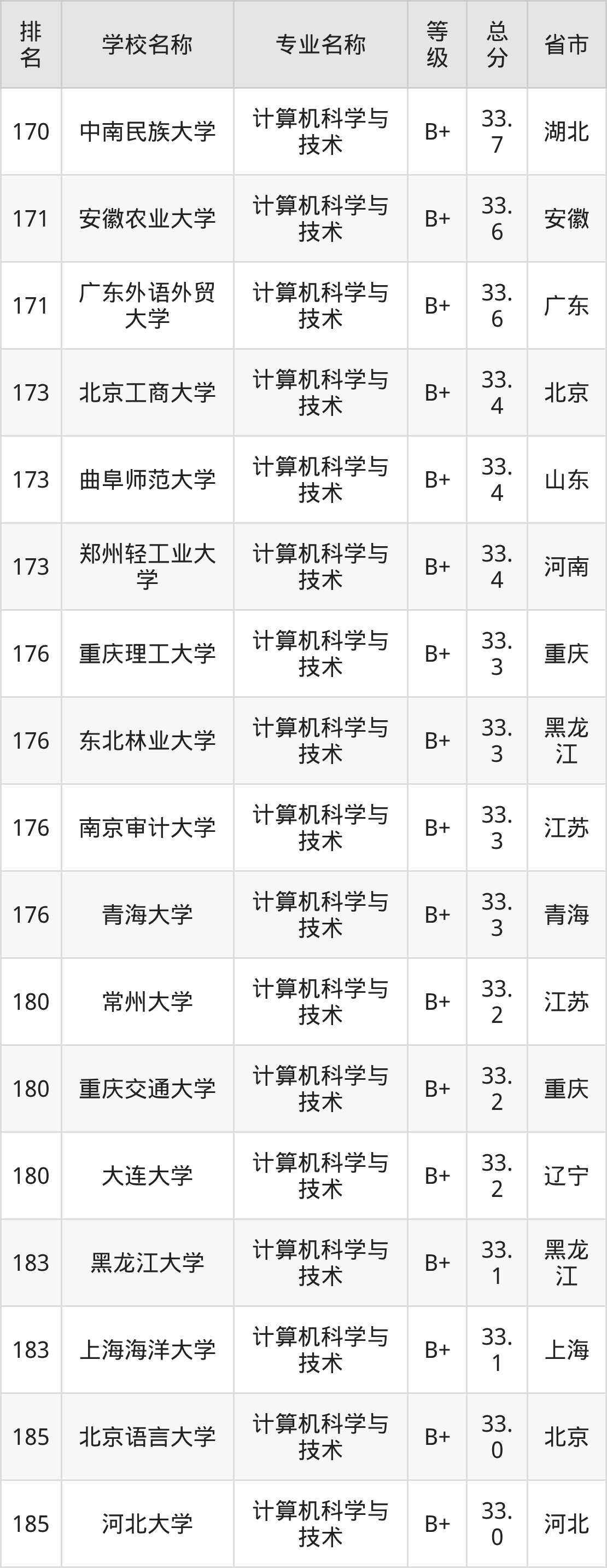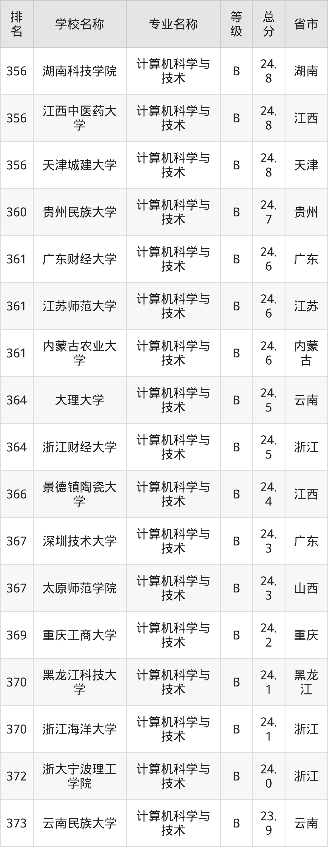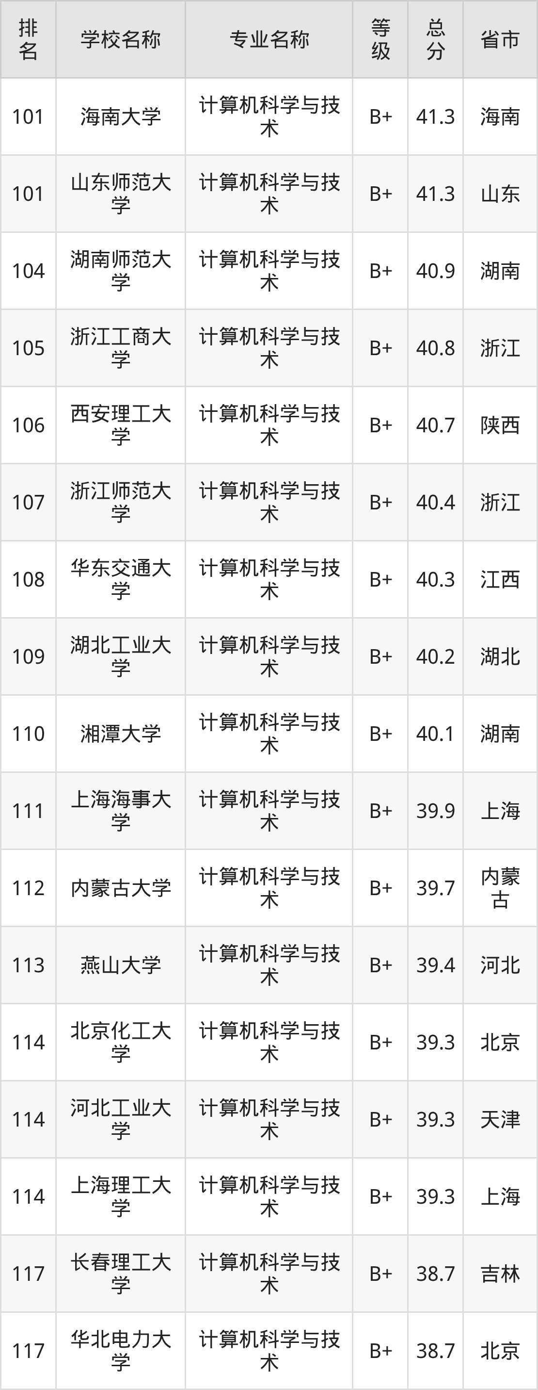 附计算机科学与技术专业全国486所院校排名榜单一览表!
