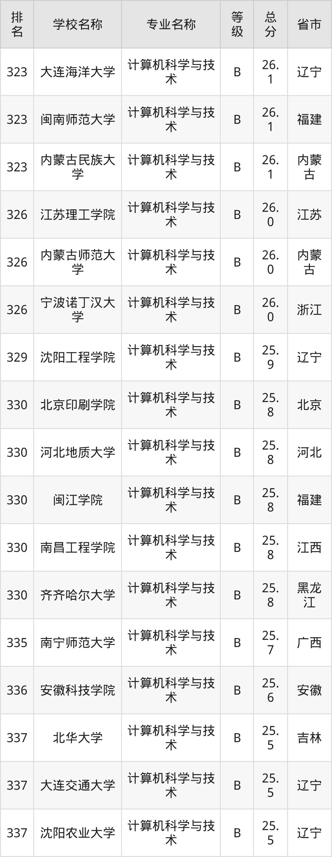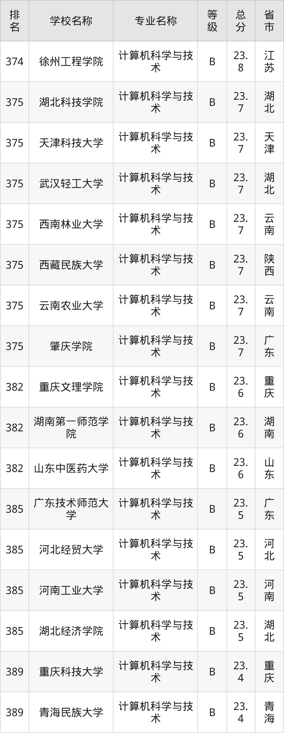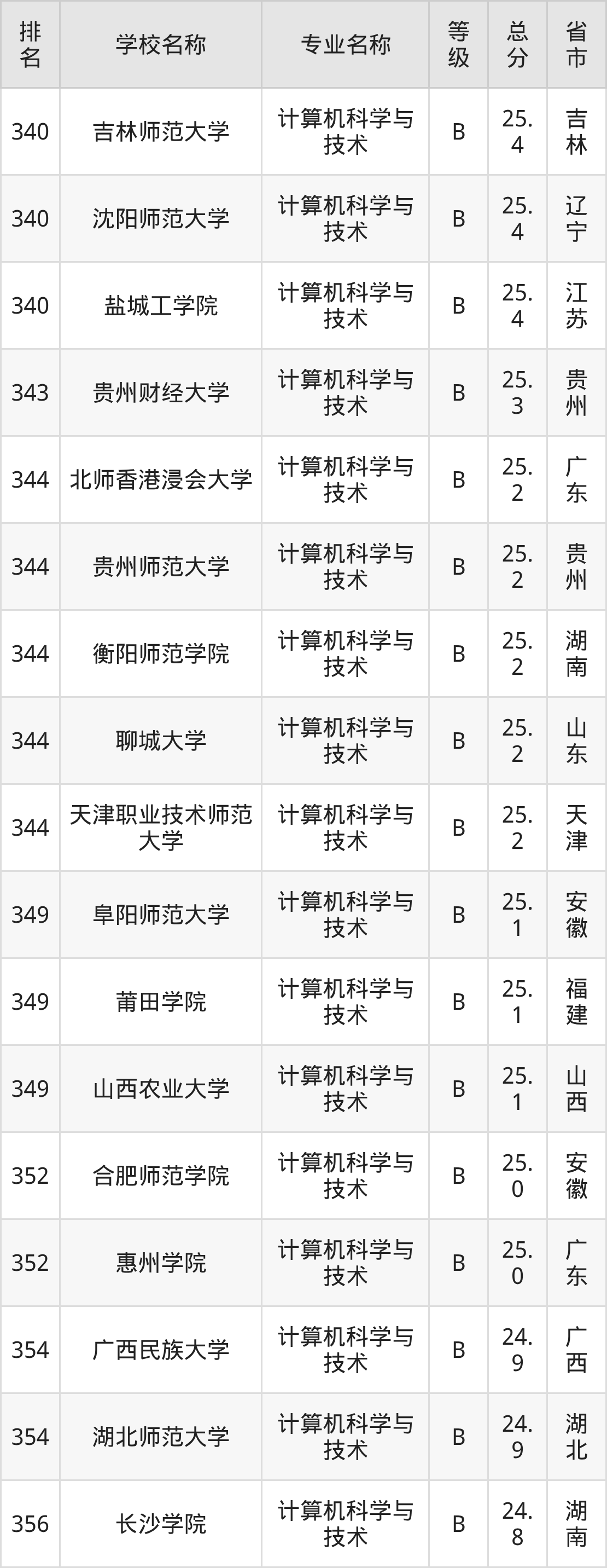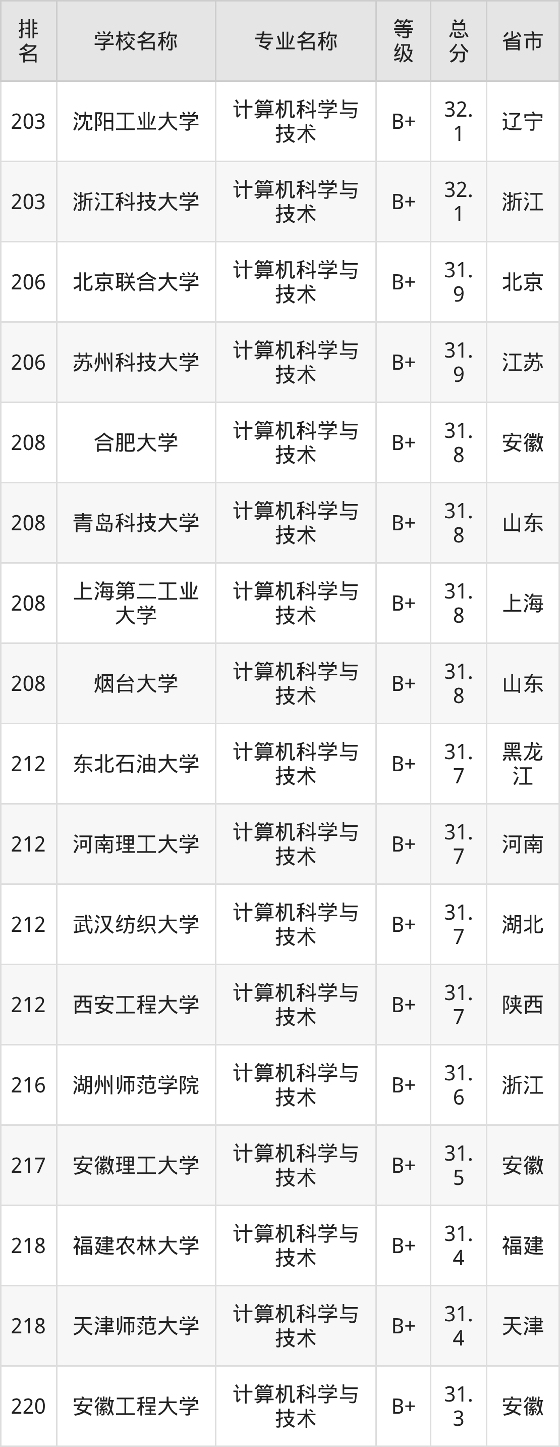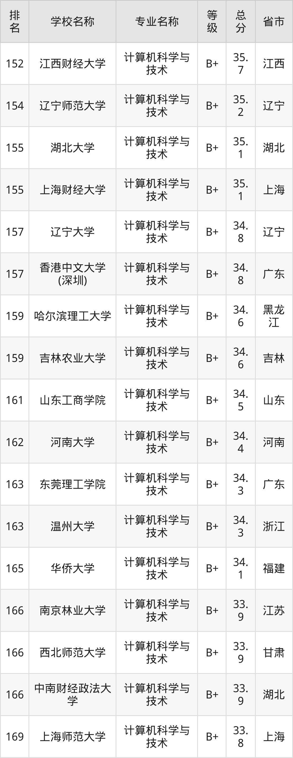 附计算机科学与技术专业全国486所院校排名榜单一览表!