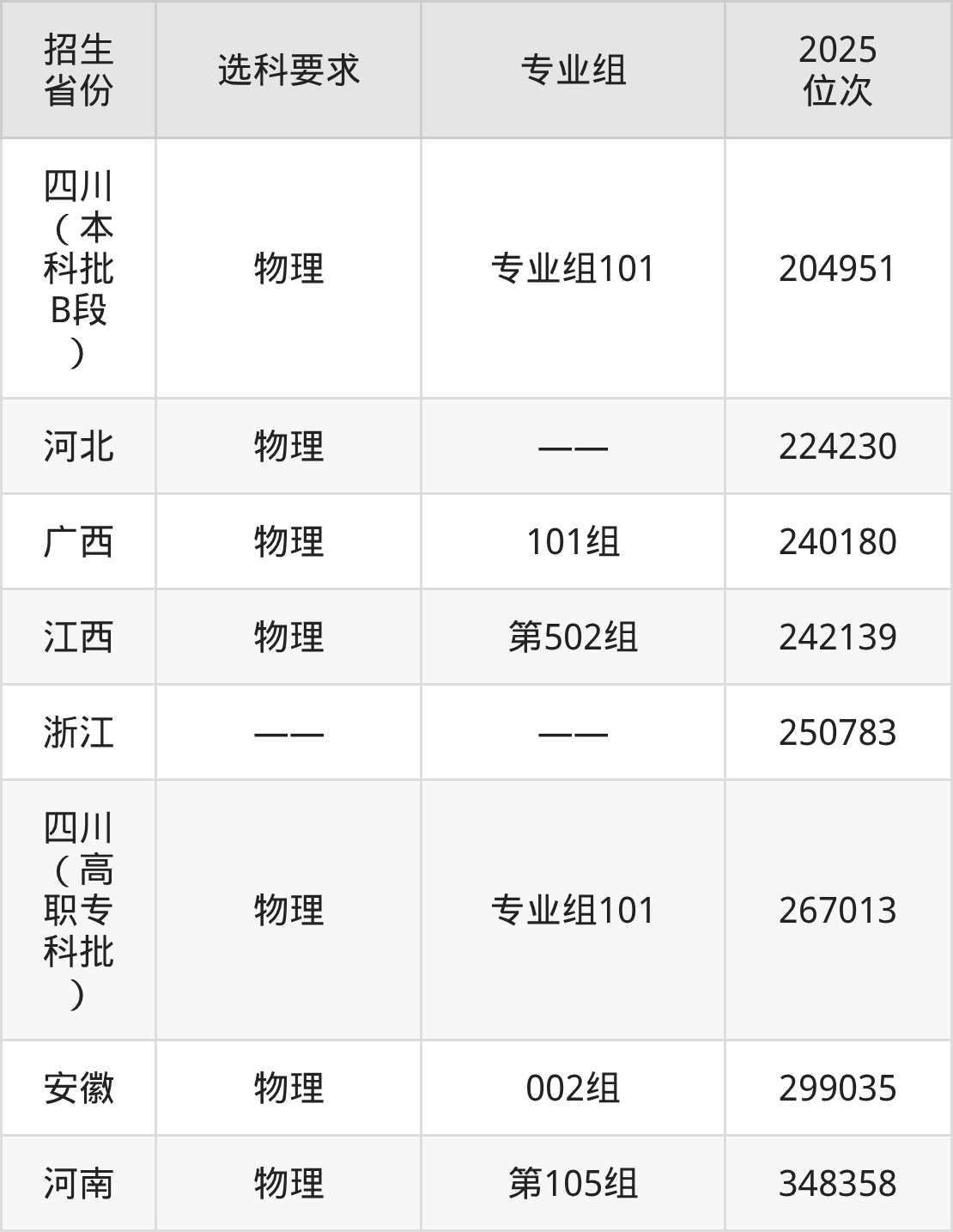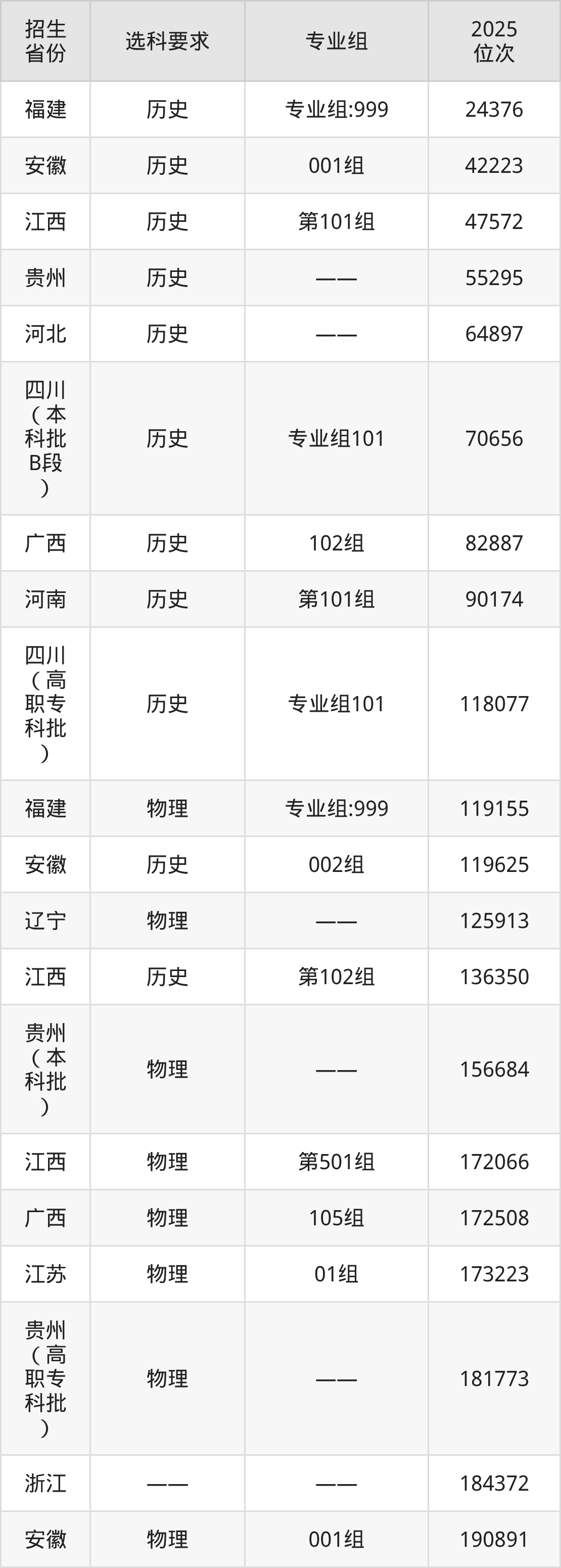 浙江广厦建设职业技术大学2025年在全国各省的位次差异较大,最高位次是24376位(福建历史类)、最低位次是348358位(河南物理类)。各省具体位次请看下图: