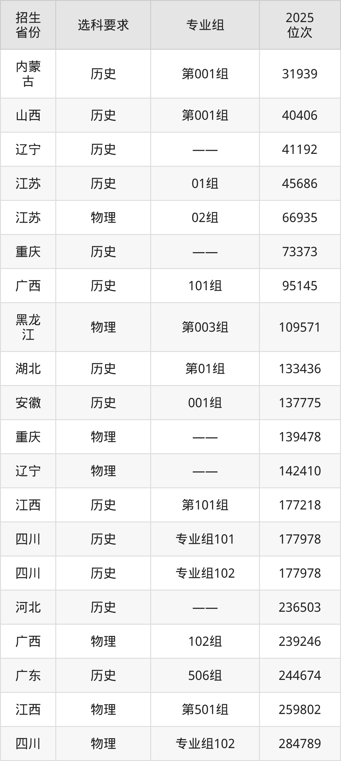 德阳农业科技职业学院2025年在全国各省的位次差异较大,最高位次是31939位(内蒙古历史类)、最低位次是680736位(山东)。各省具体位次请看下图: