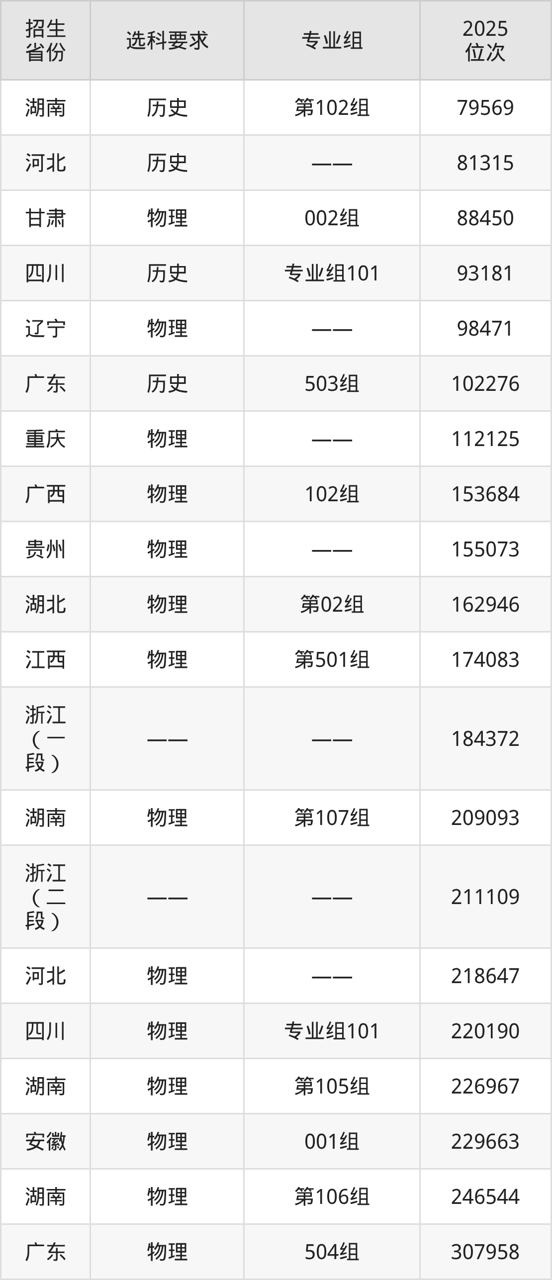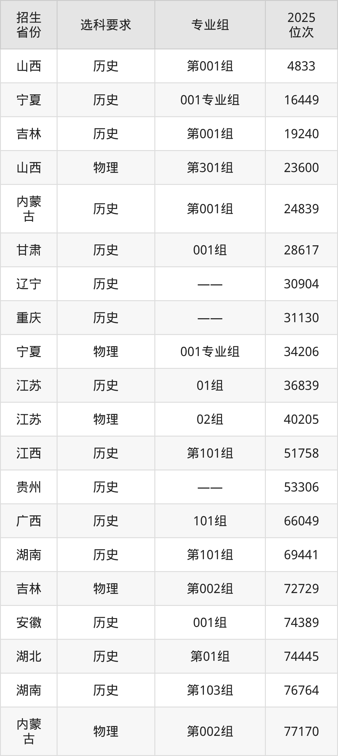 湖南交通职业技术学院2025年在全国各省的位次差异较大,最高位次是4833位(山西历史类)、最低位次是349122位(山东)。各省具体位次请看下图:
