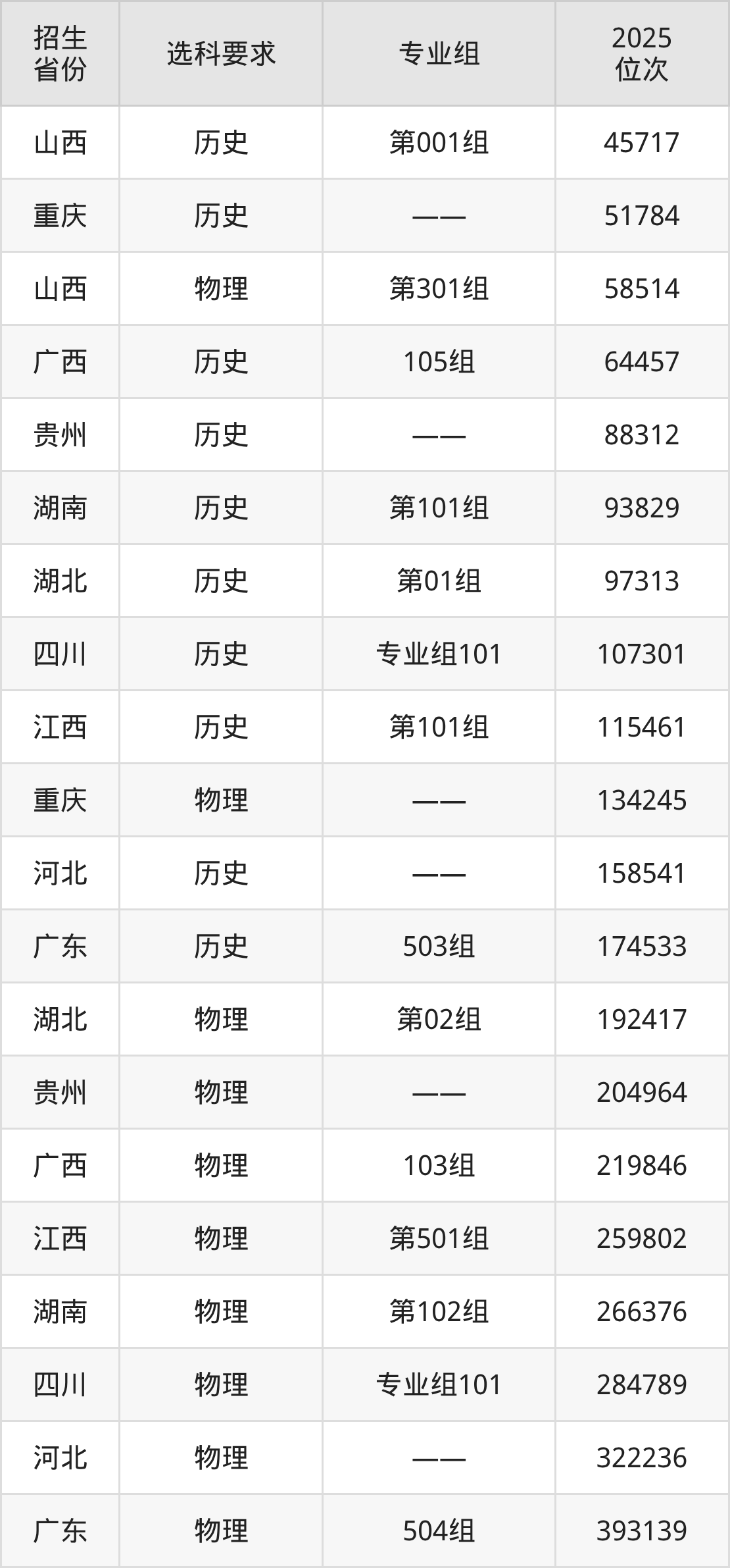 黔西南民族职业技术学院2025年在全国各省的位次差异较大,最高位次是45717位(山西历史类)、最低位次是641592位(山东)。各省具体位次请看下图: