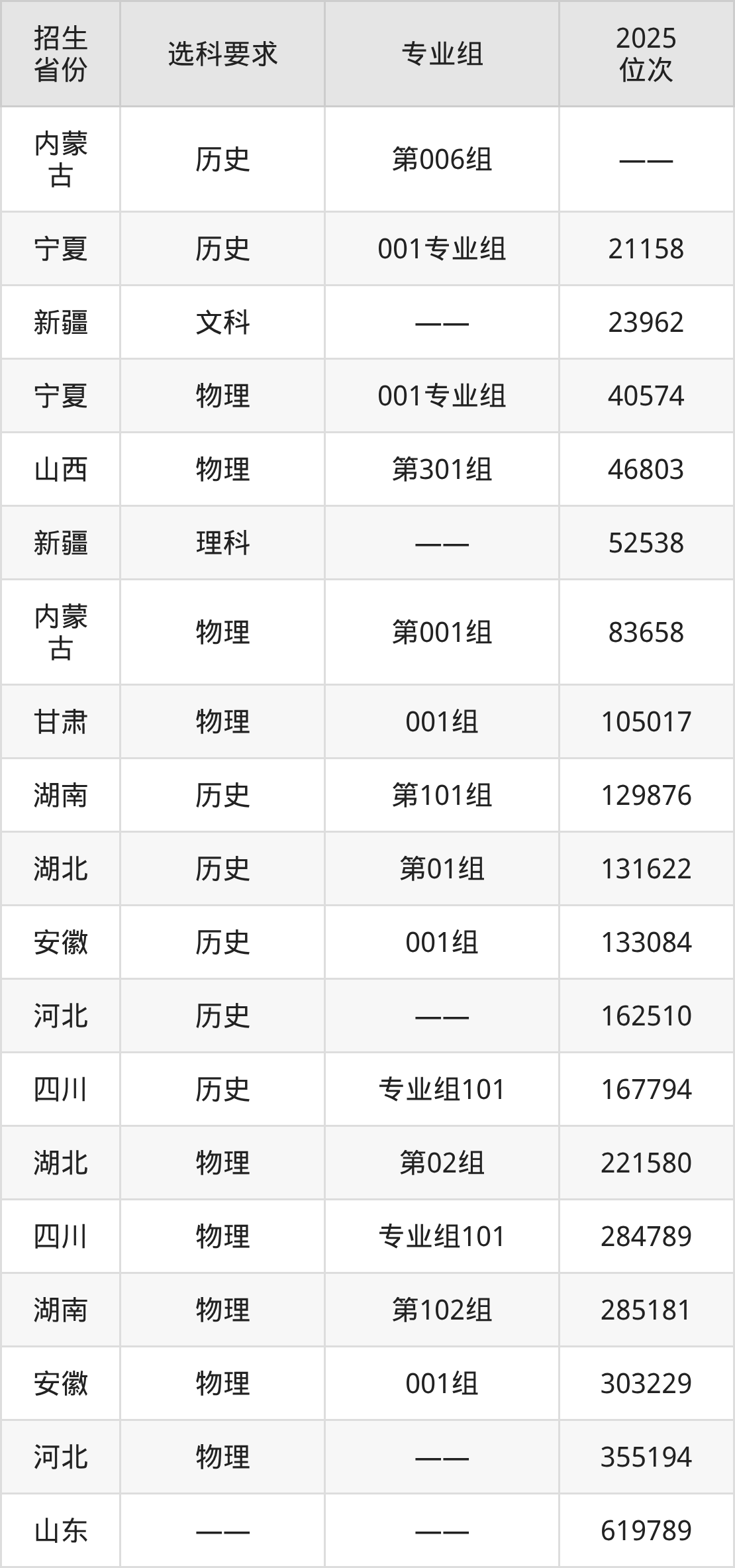 阿拉善职业技术学院2025年在全国各省的位次差异较大,最高位次是21158位(宁夏历史类)、最低位次是619789位(山东)。各省具体位次请看下图:
