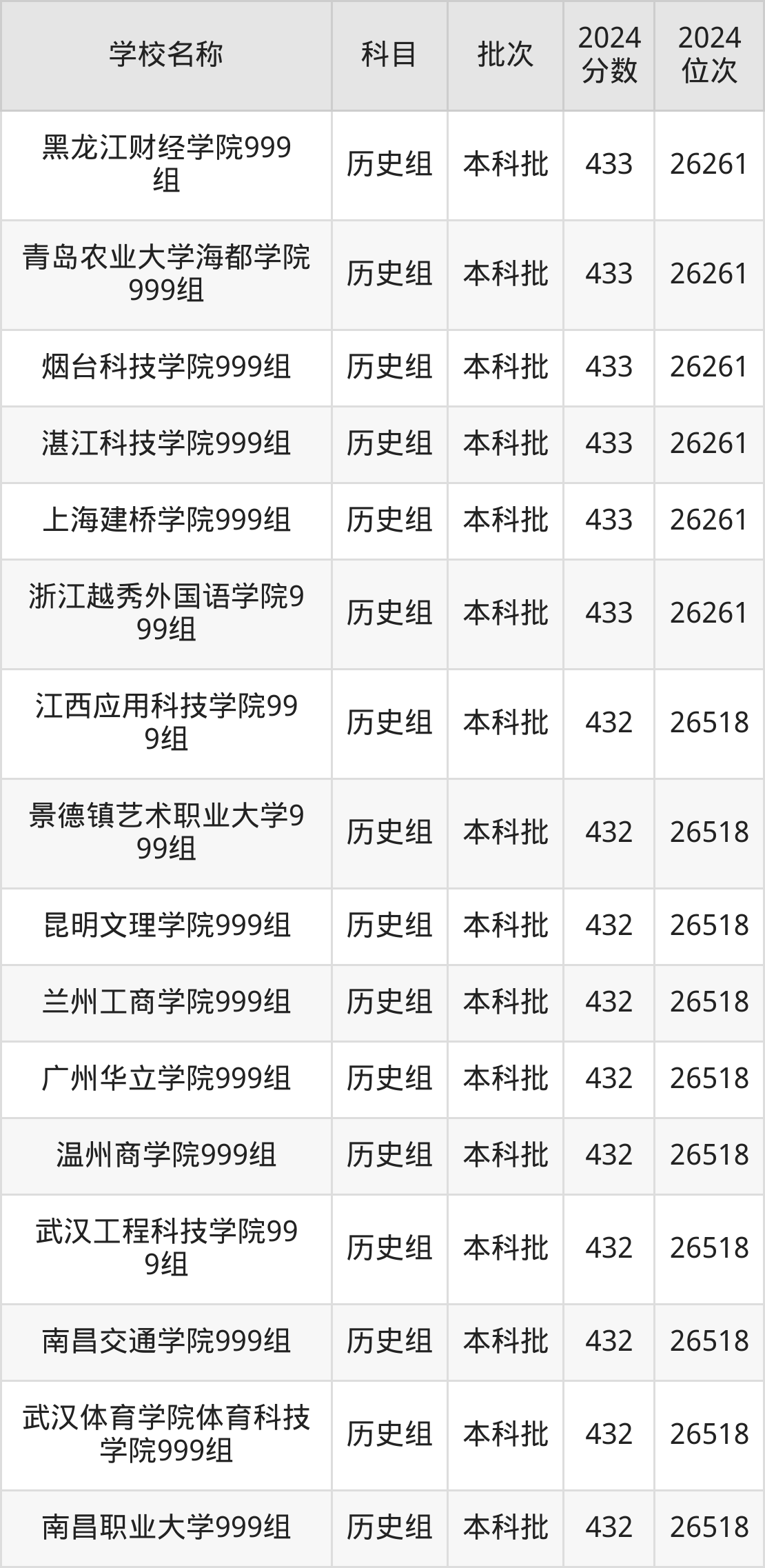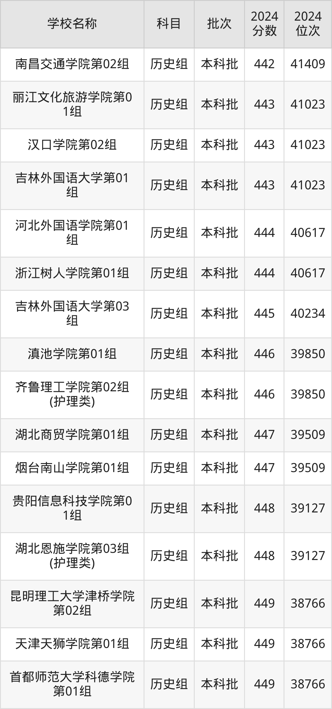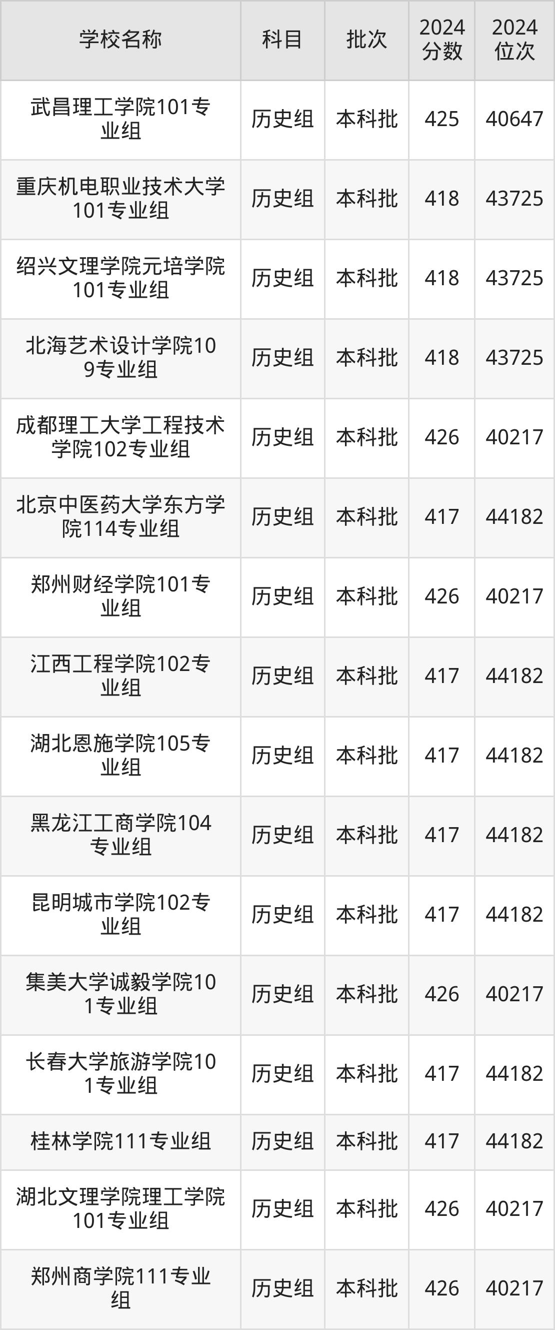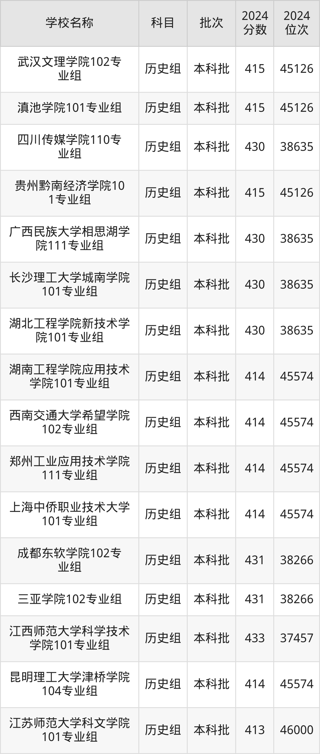 湖北高考历史组共有100所二本民办大学在410到450分之间录取,包含大连医科大学中山学院、南昌交通学院、汉口学院、新疆天山职业技术大学、武汉生物工程学院、天津仁爱学院、宁波财经学院、湖南中医药大学湘杏学院、昆明理工大学津桥学院、湖北恩施学院。