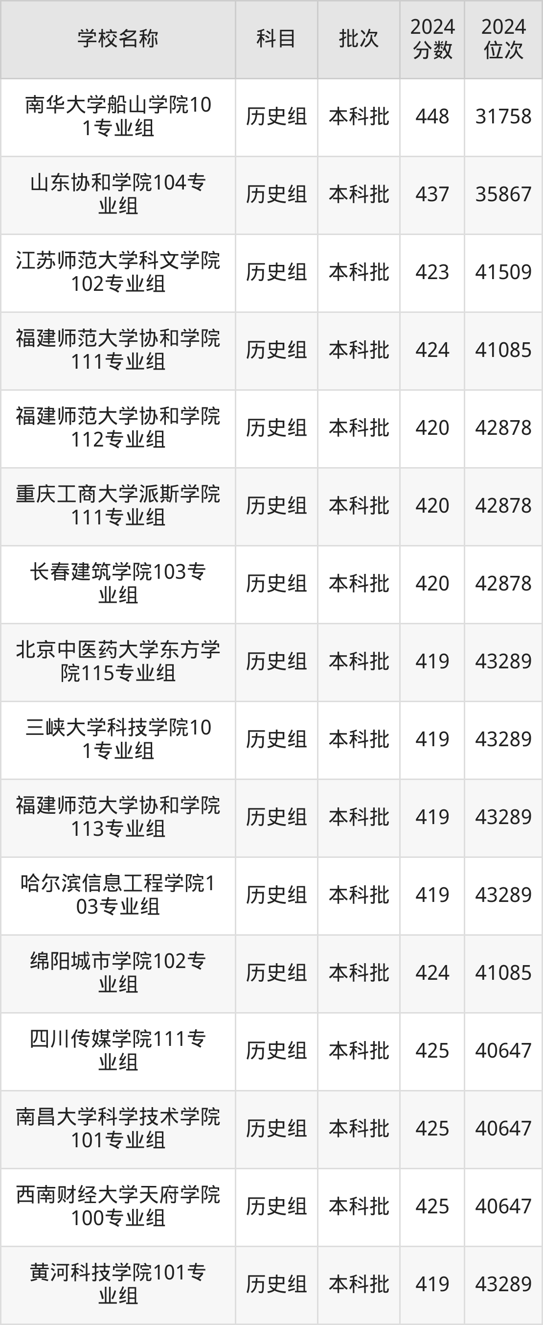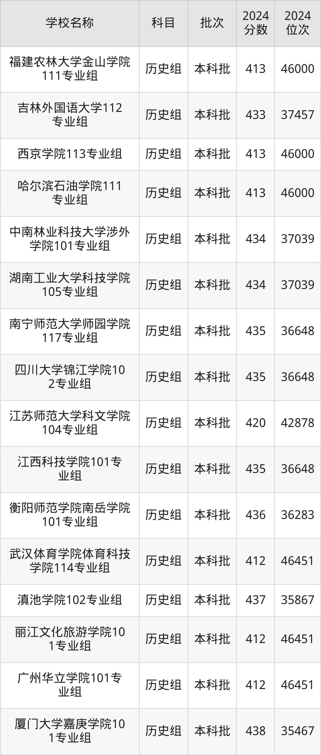 福建高考历史组共有163所二本民办大学在410到450分之间录取,包含四川工商学院、江西农业大学南昌商学院、福建农林大学金山学院、武汉学院、上海财经大学浙江学院、重庆人文科技学院、江苏大学京江学院、贵阳人文科技学院、武汉文理学院、西安培华学院。