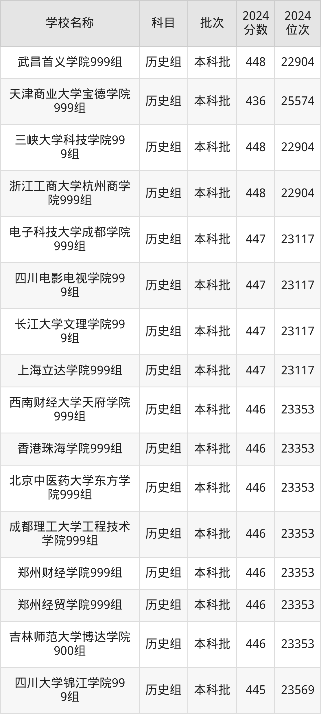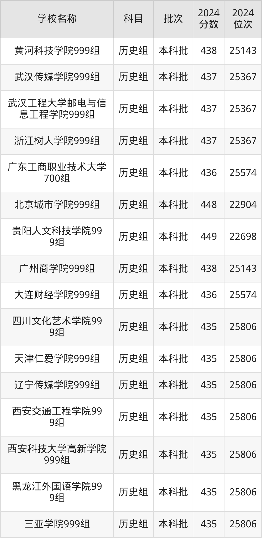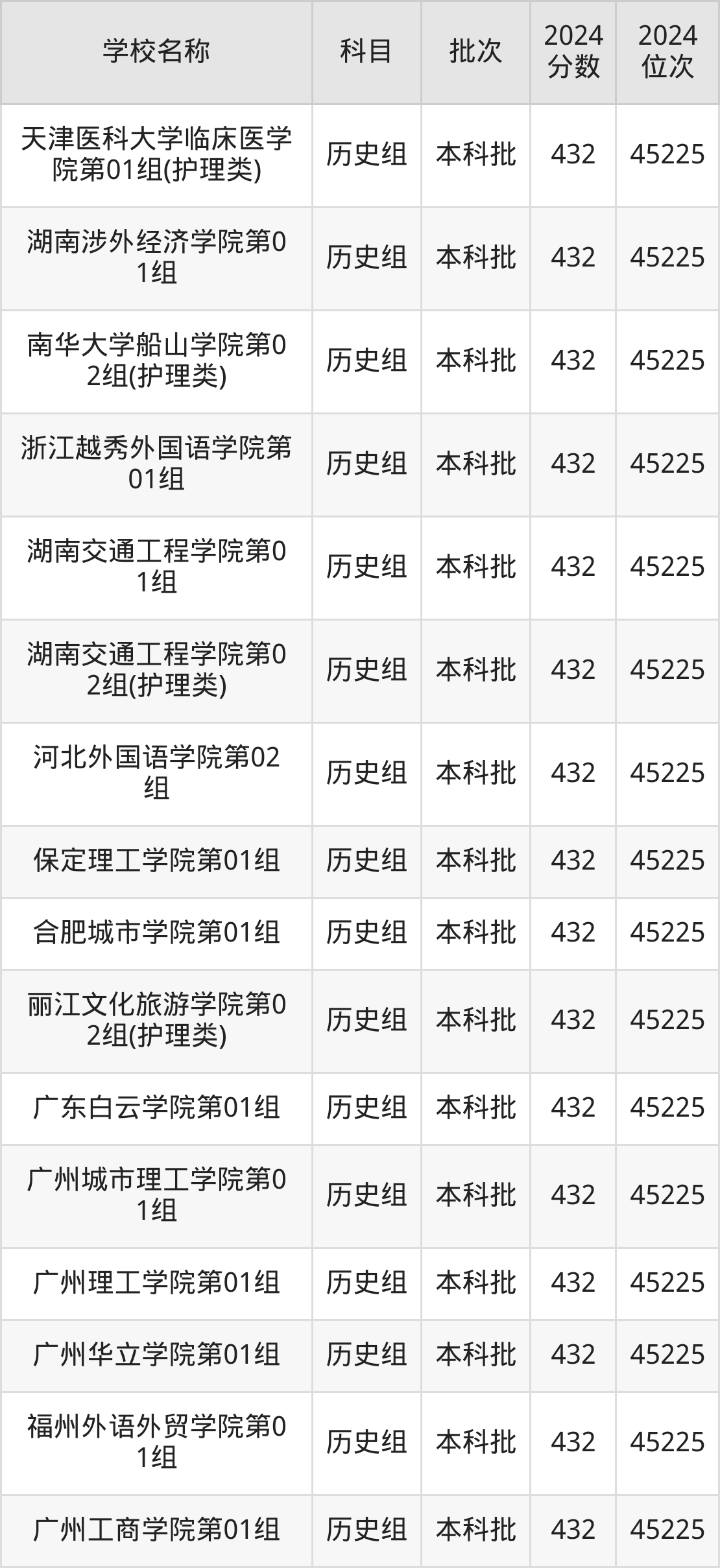 广西高考历史组共有96所二本民办大学在410到450分之间录取,包含南华大学船山学院、重庆人文科技学院、衡阳师范学院南岳学院、南宁师范大学师园学院、南昌应用技术师范学院、重庆城市科技学院、石家庄铁道大学四方学院、成都锦城学院、信阳学院、四川工商学院。