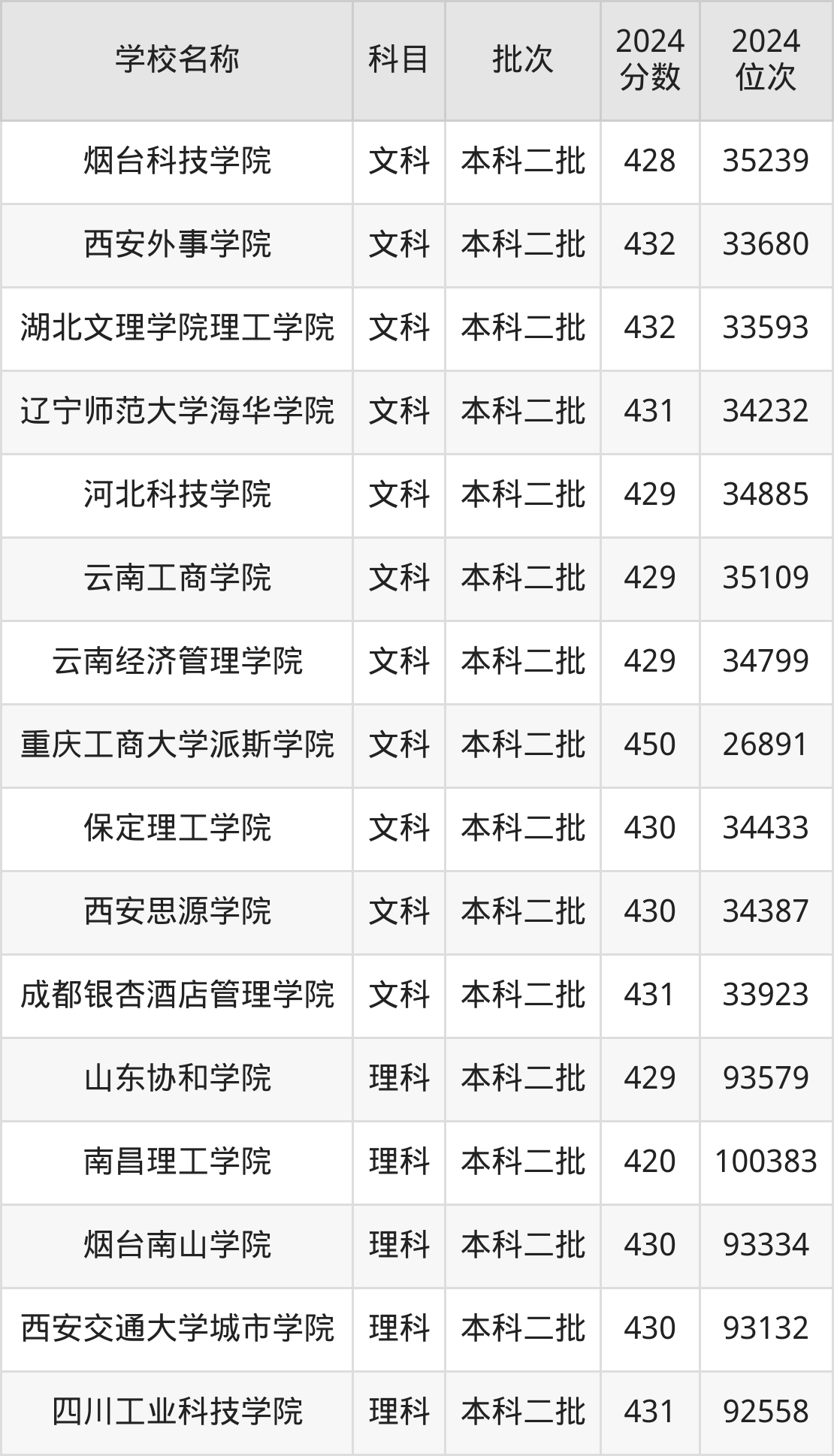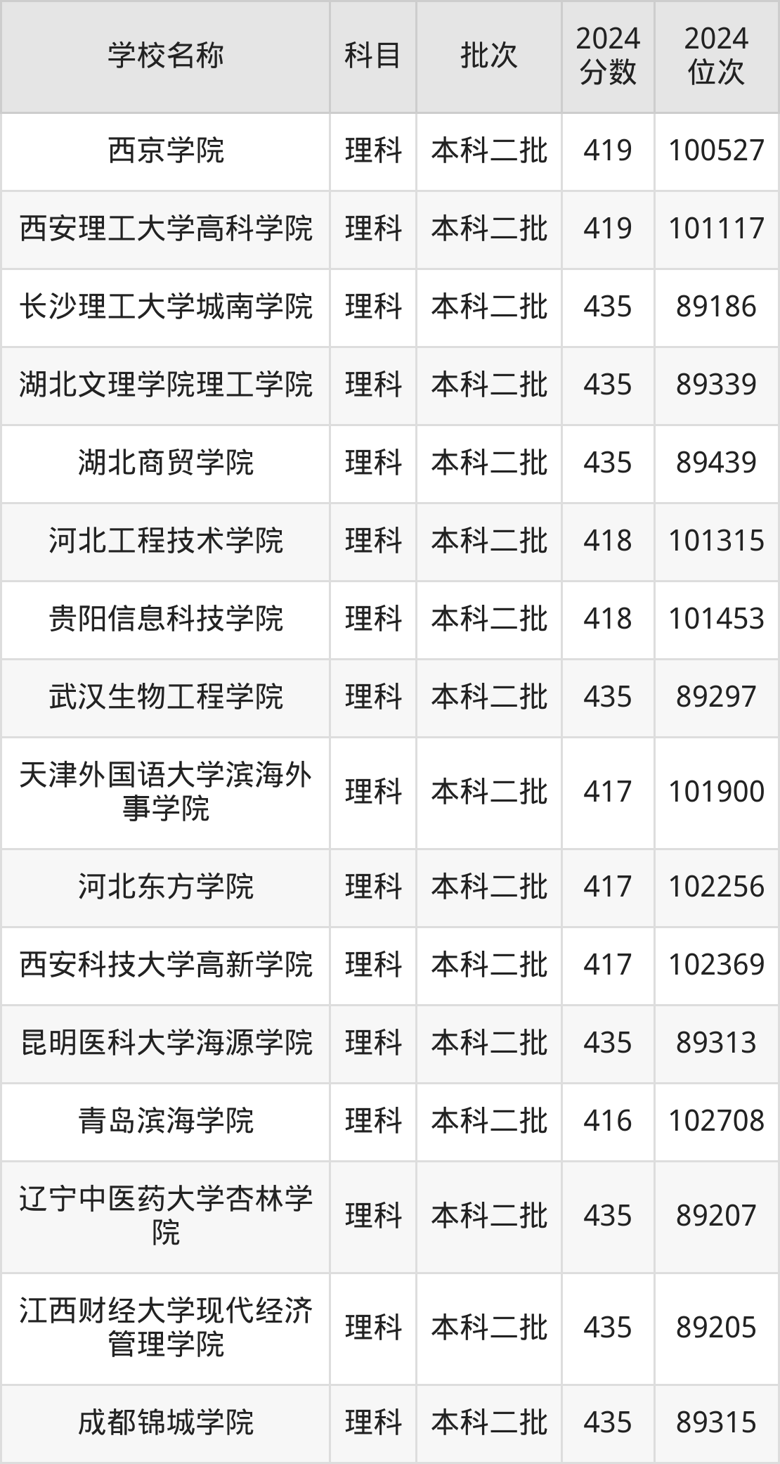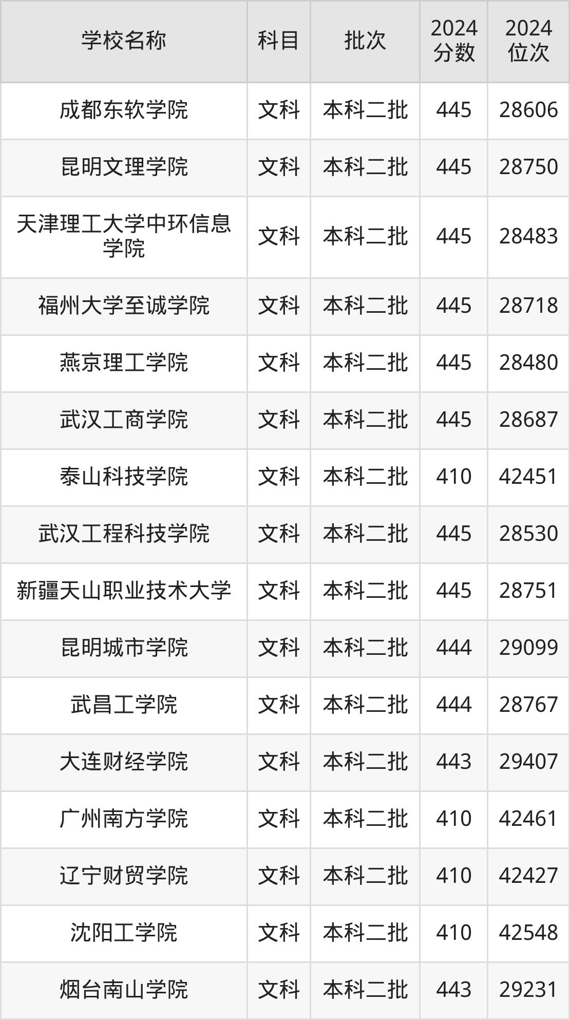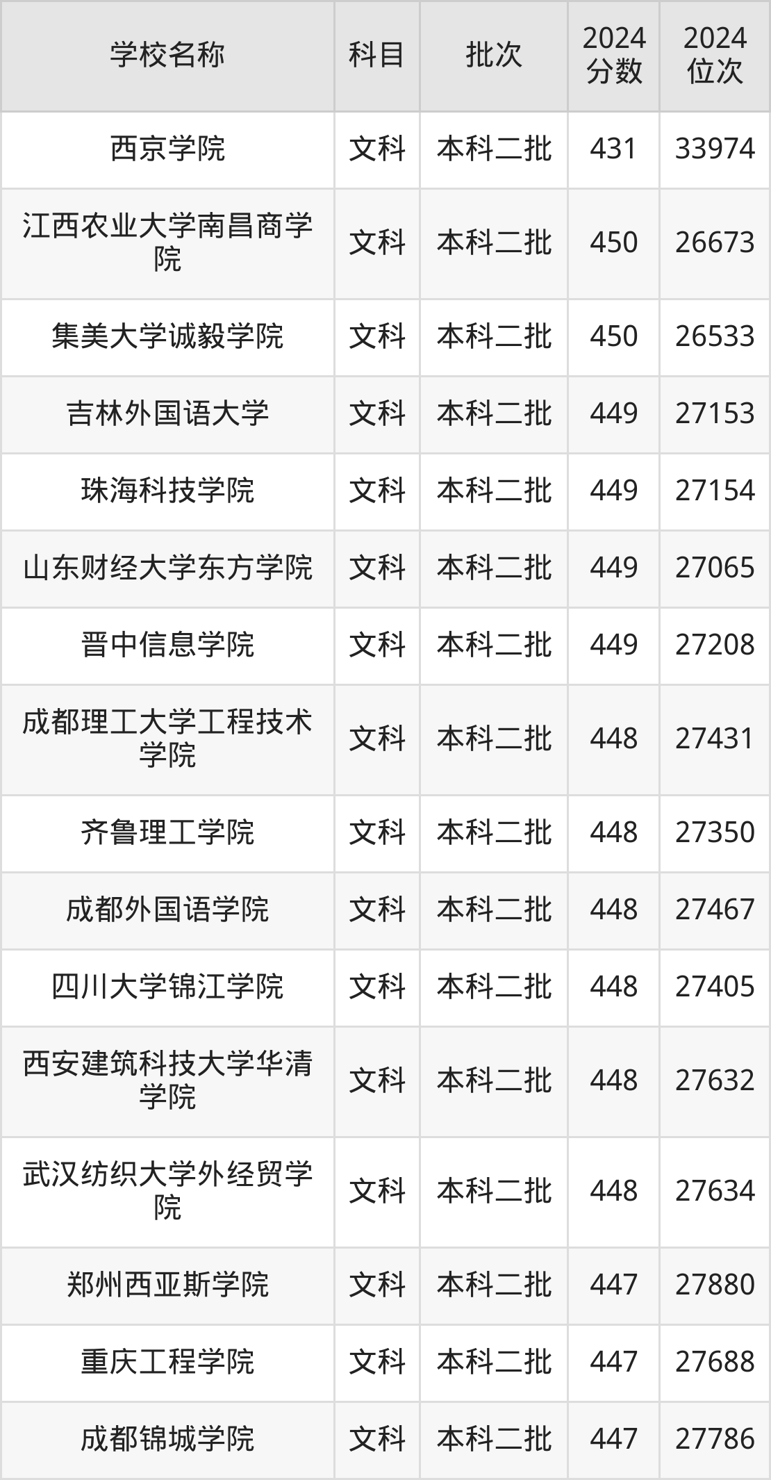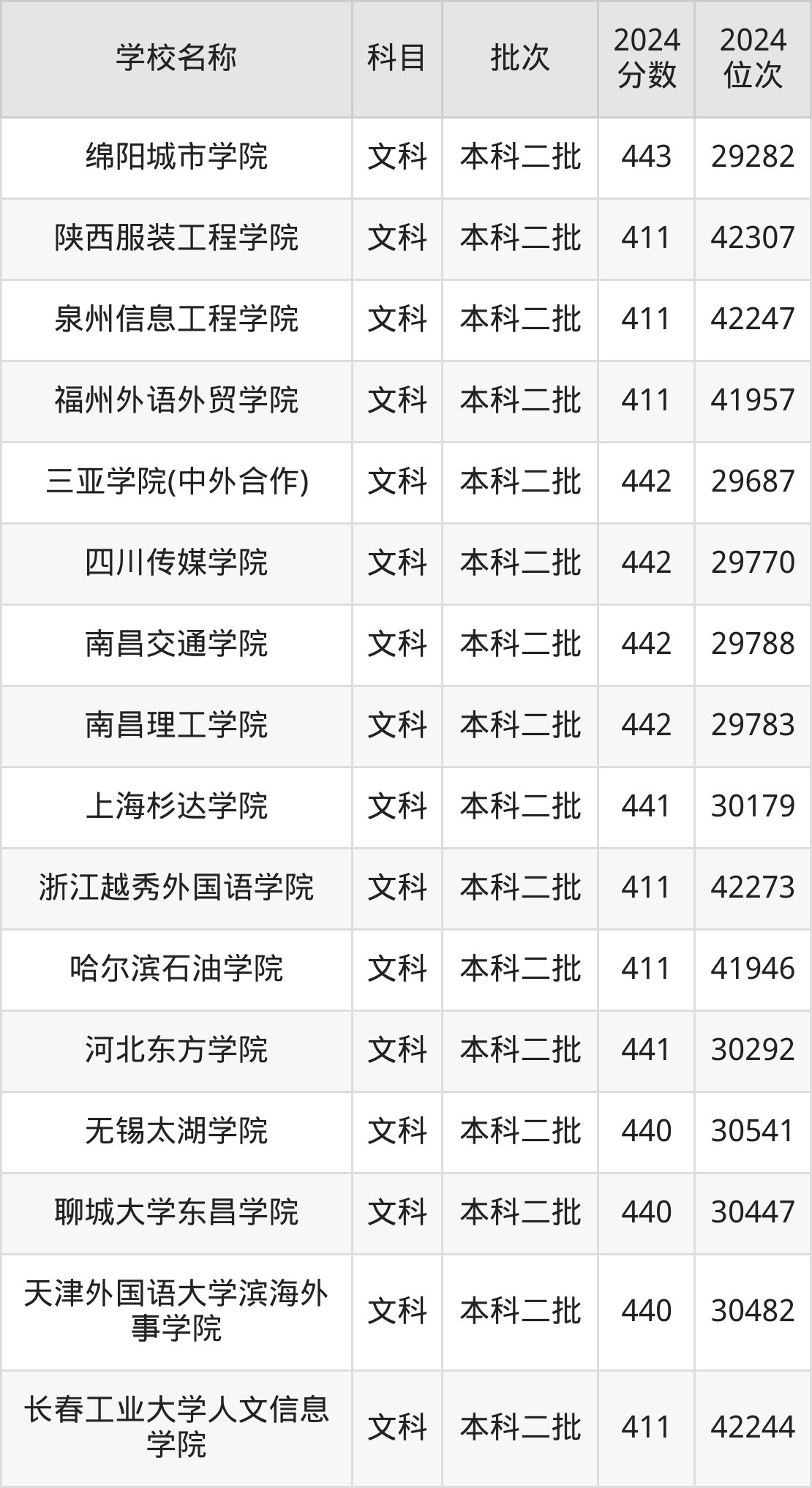 一、410到450分的二本民办大学最低分一览表