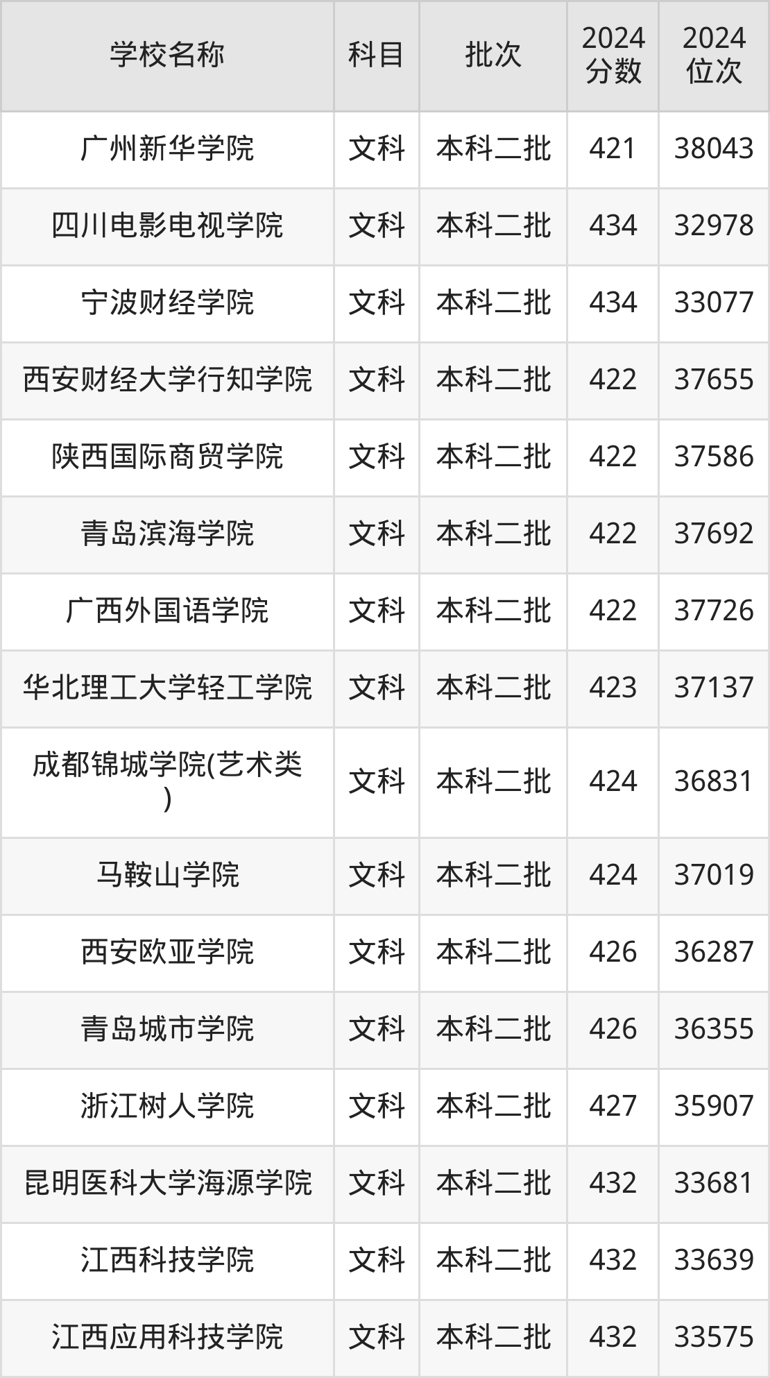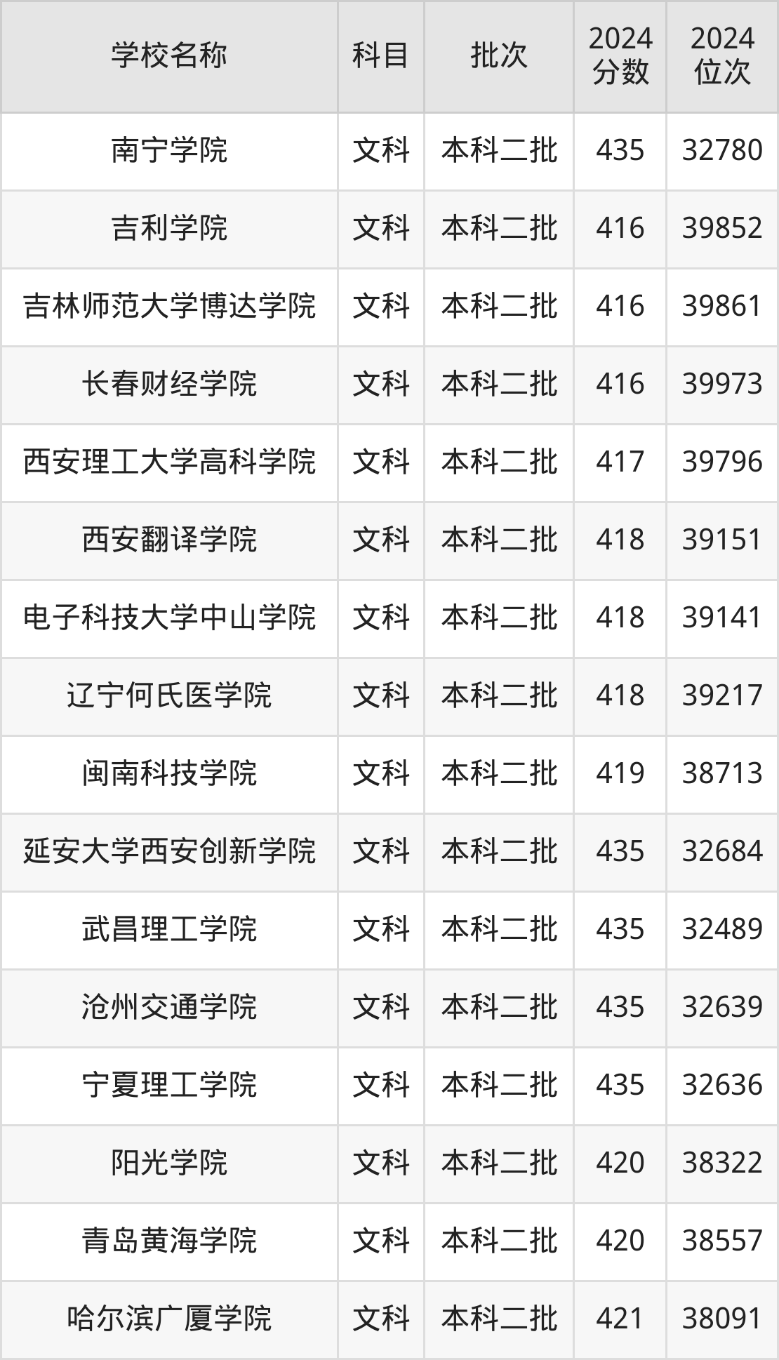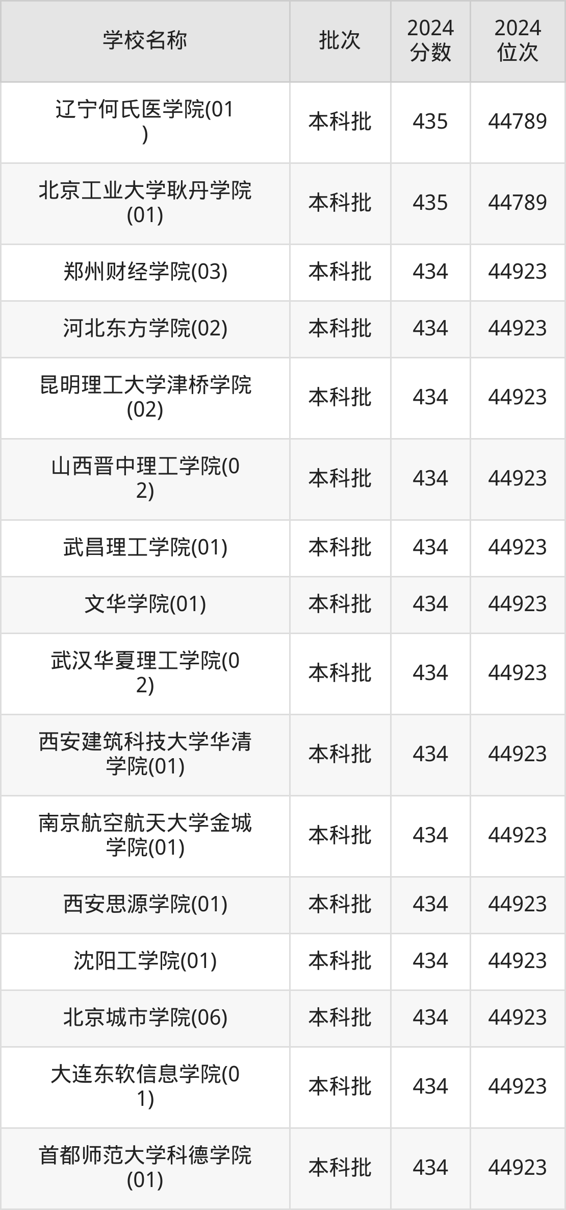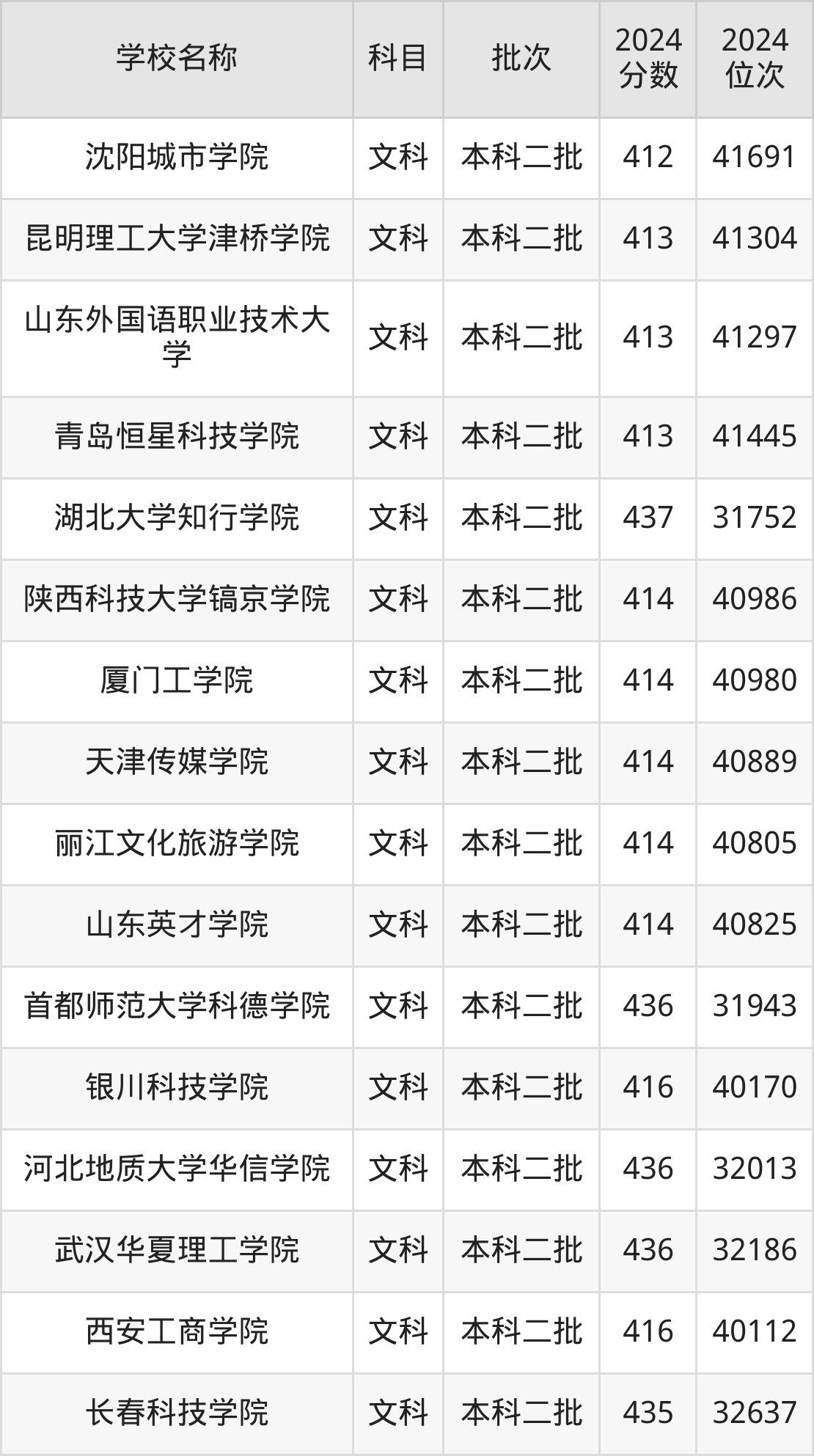 一、410到450分的二本民办大学最低分一览表
