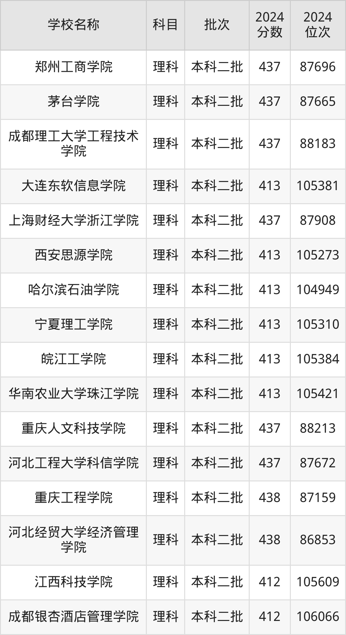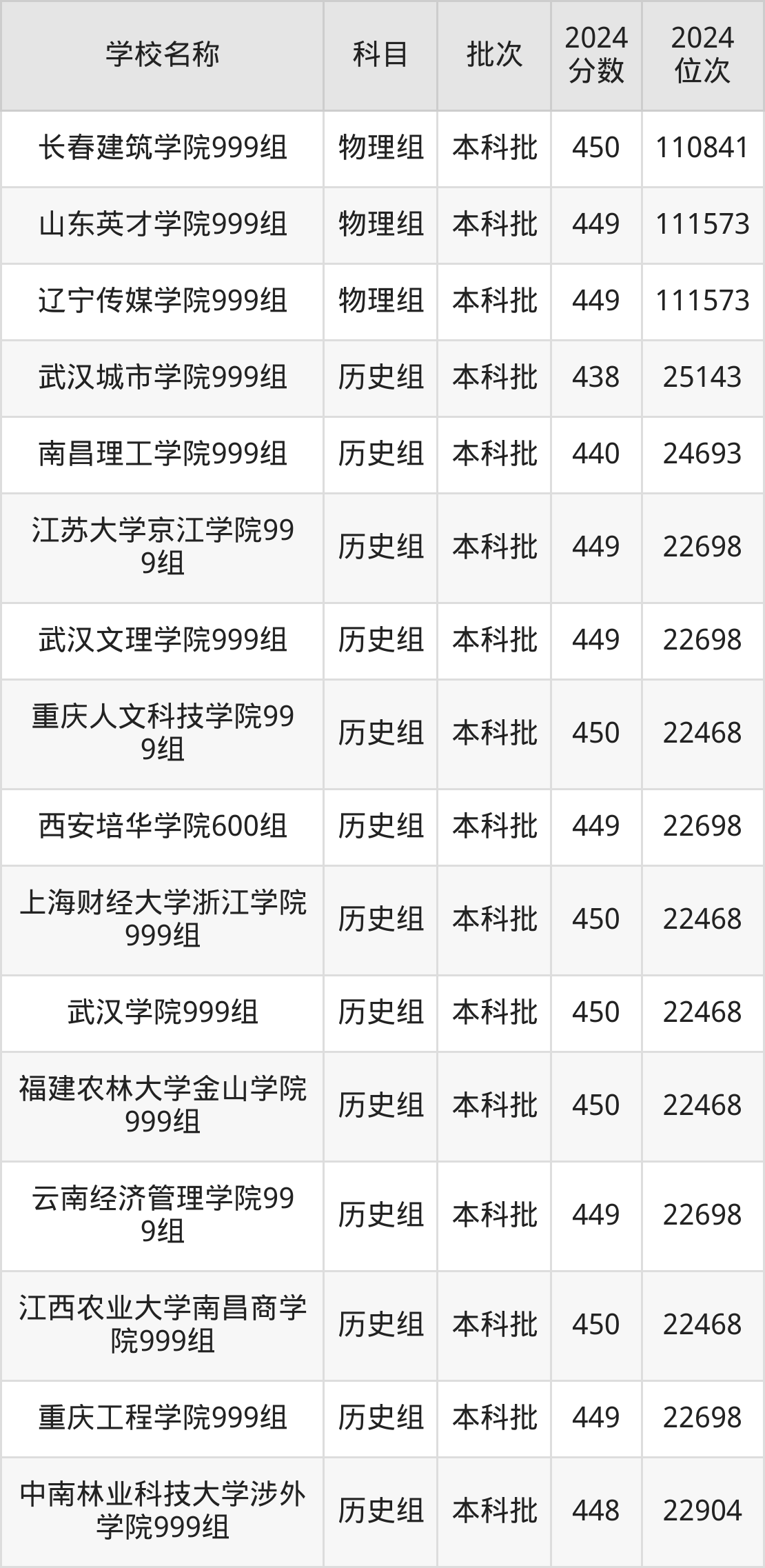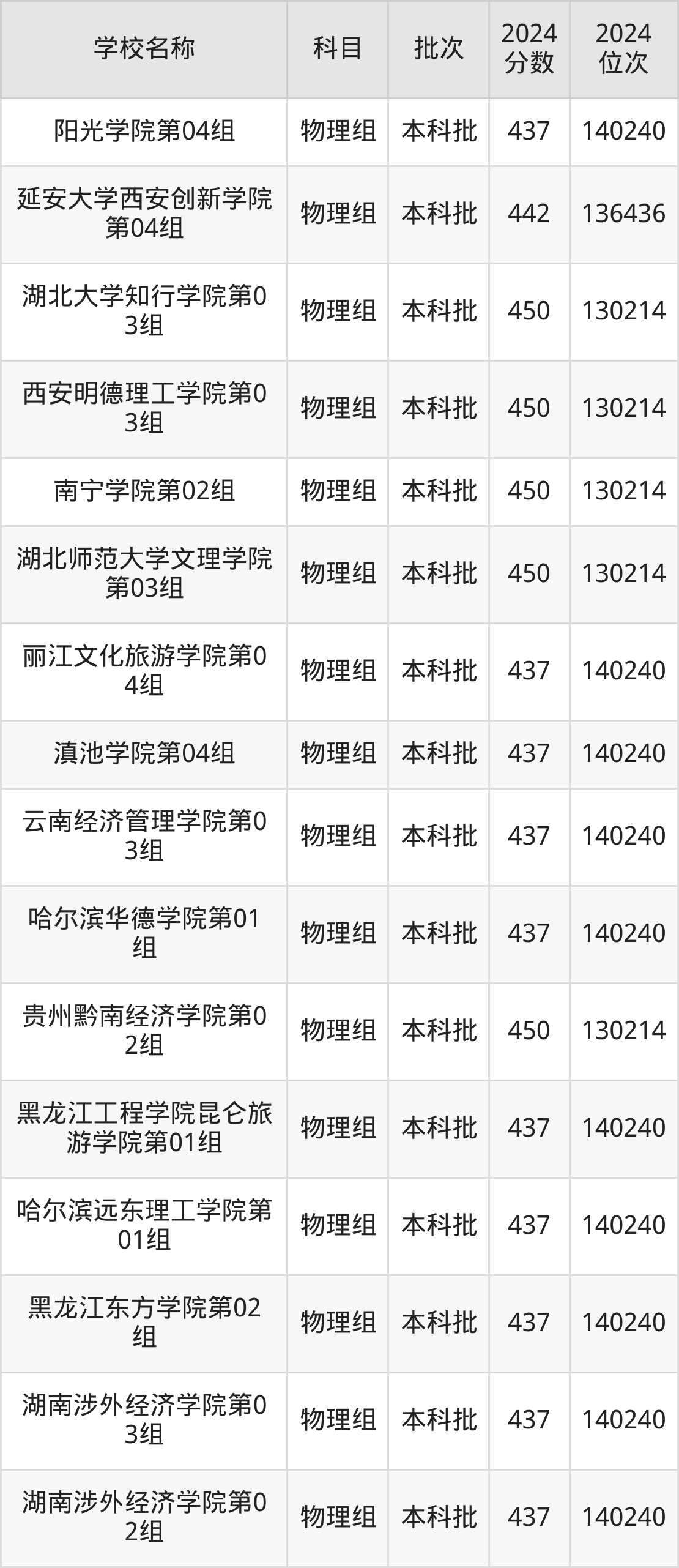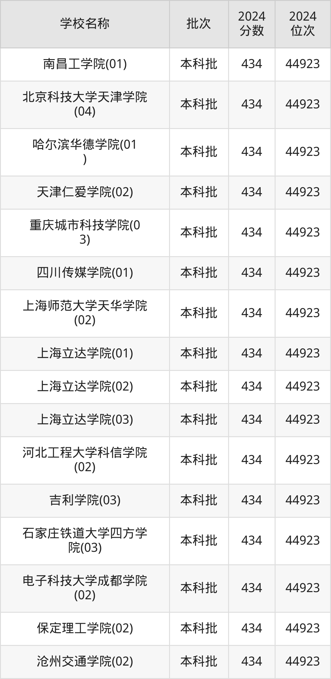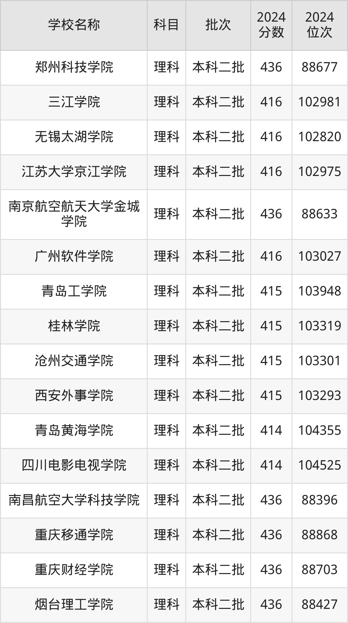 一、410到450分的二本民办大学最低分一览表