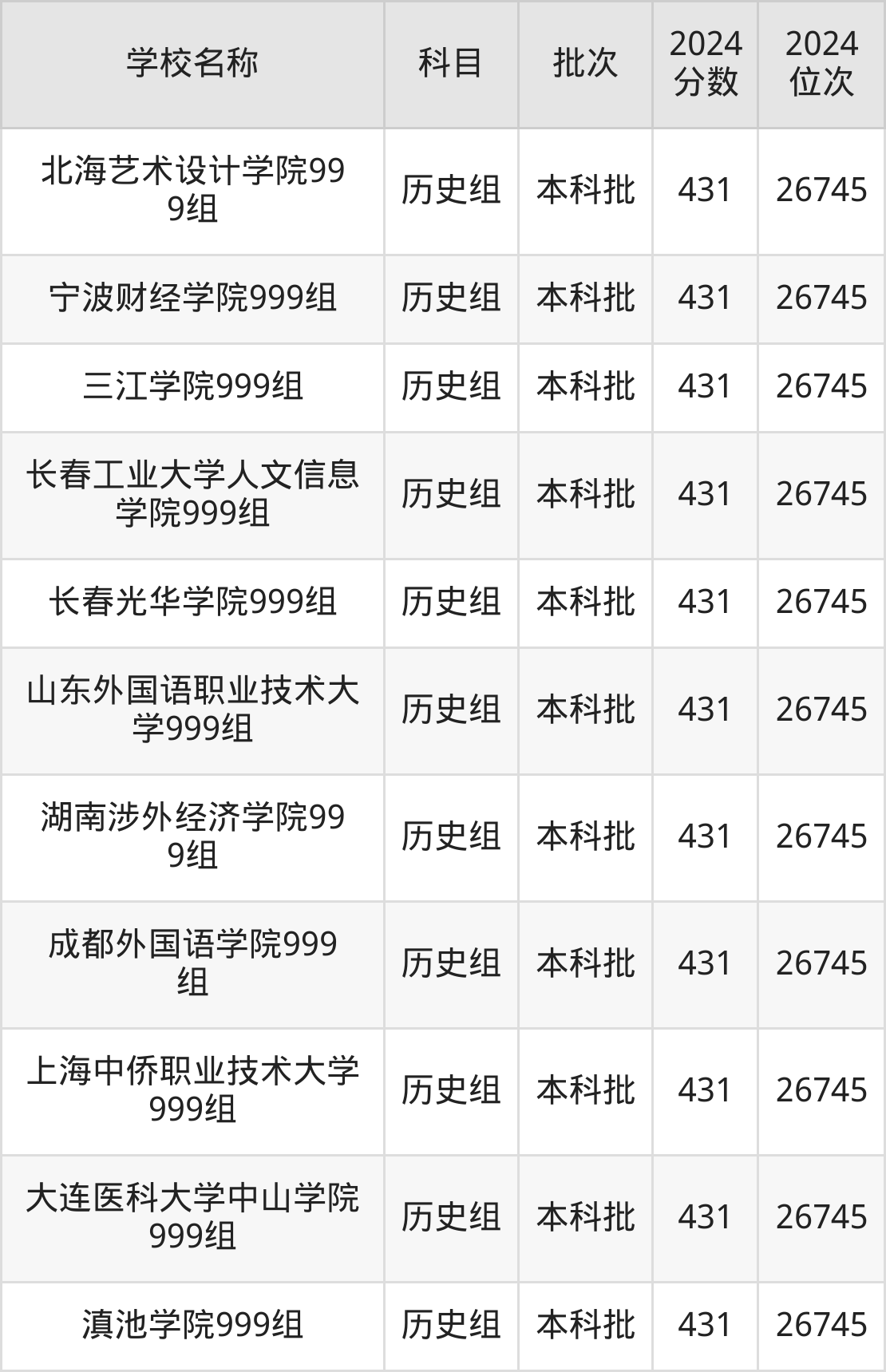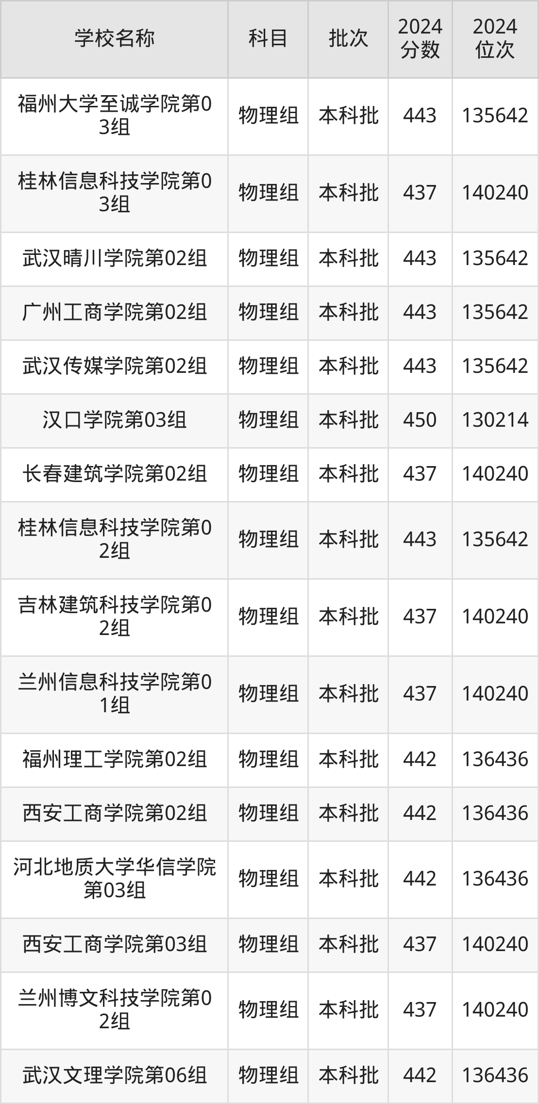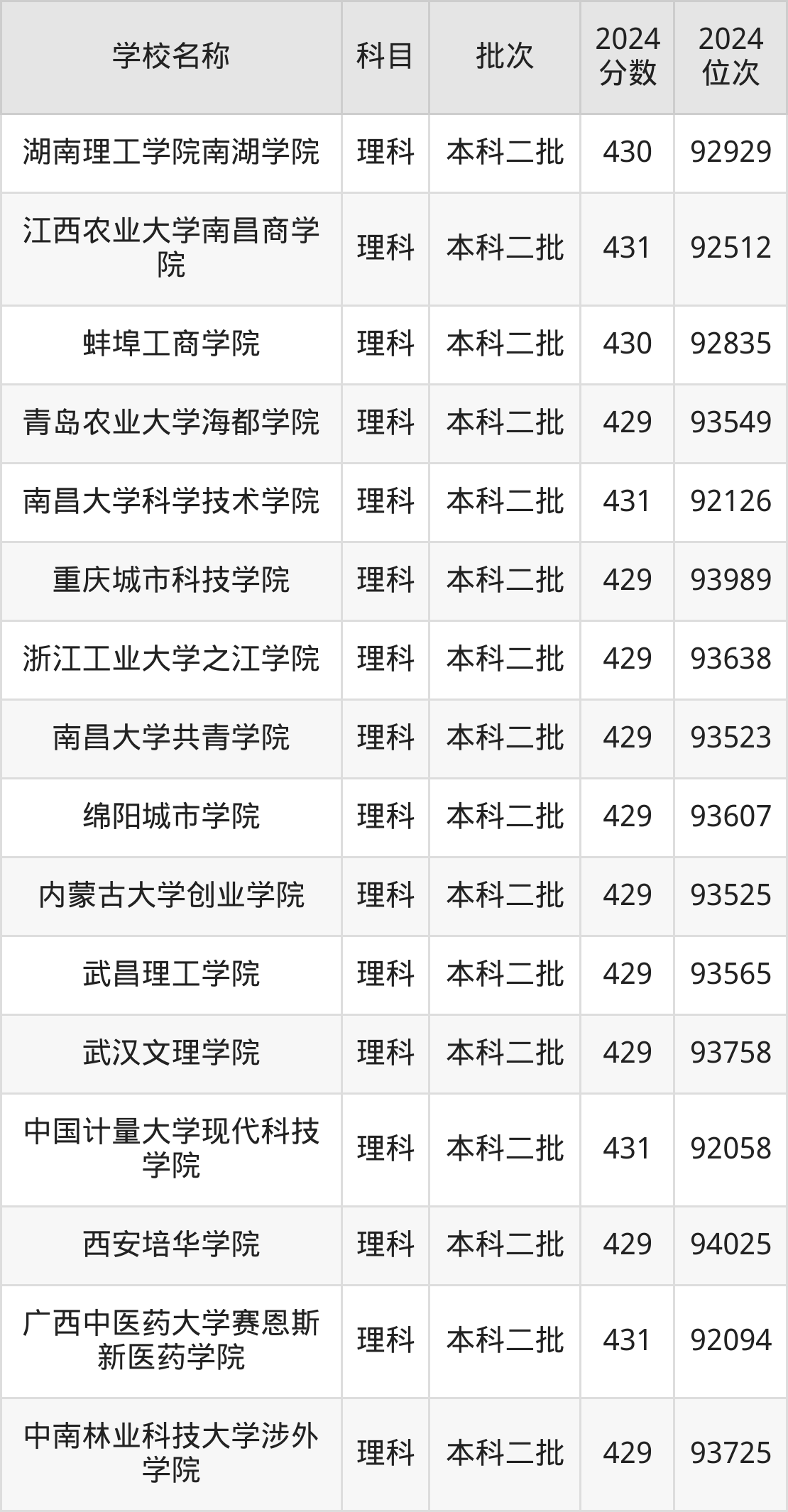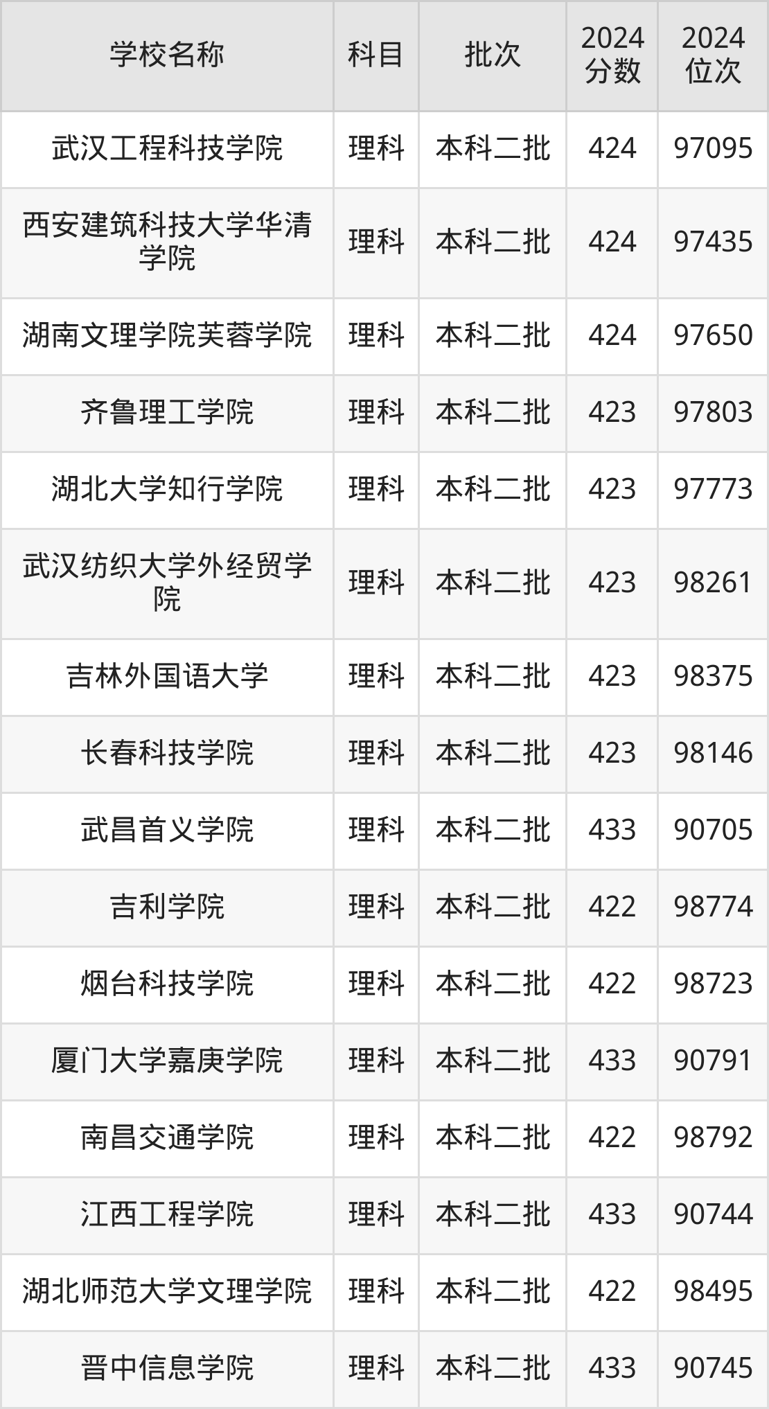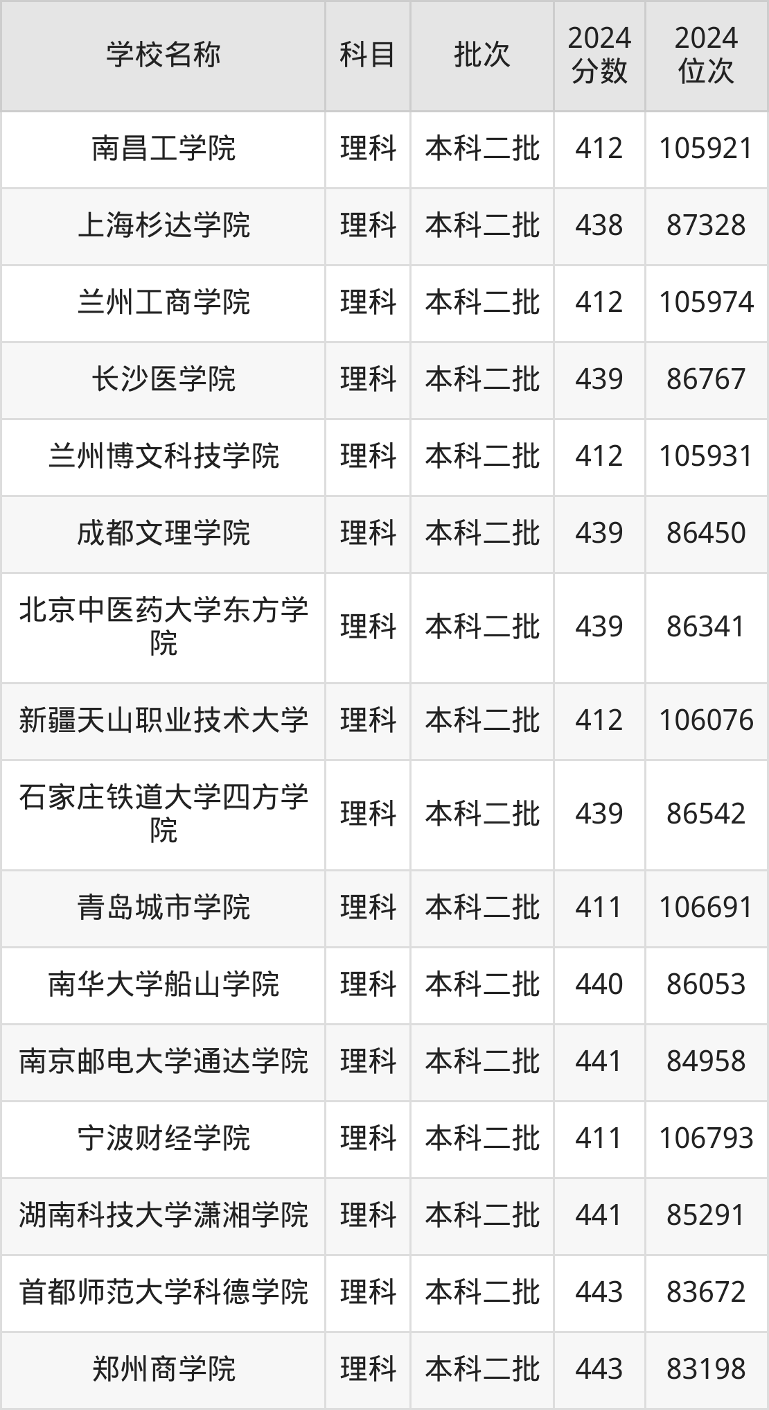 一、410到450分的二本民办大学最低分一览表