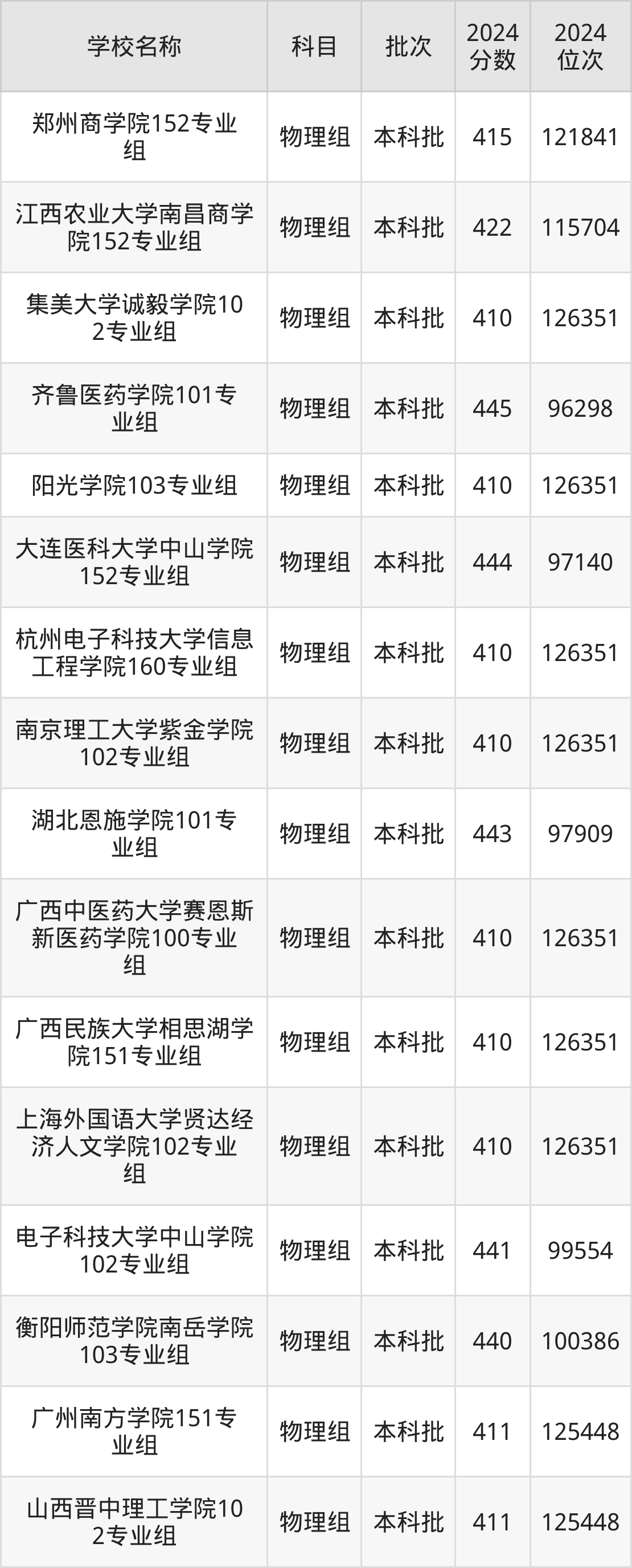 广西高考物理组共有60所二本民办大学在410到450分之间录取,包含湖南中医药大学湘杏学院、齐鲁医药学院、大连医科大学中山学院、湖北恩施学院、电子科技大学中山学院、衡阳师范学院南岳学院、北京金融科技学院、石家庄铁道大学四方学院、珠海科技学院、湖南科技大学潇湘学院。