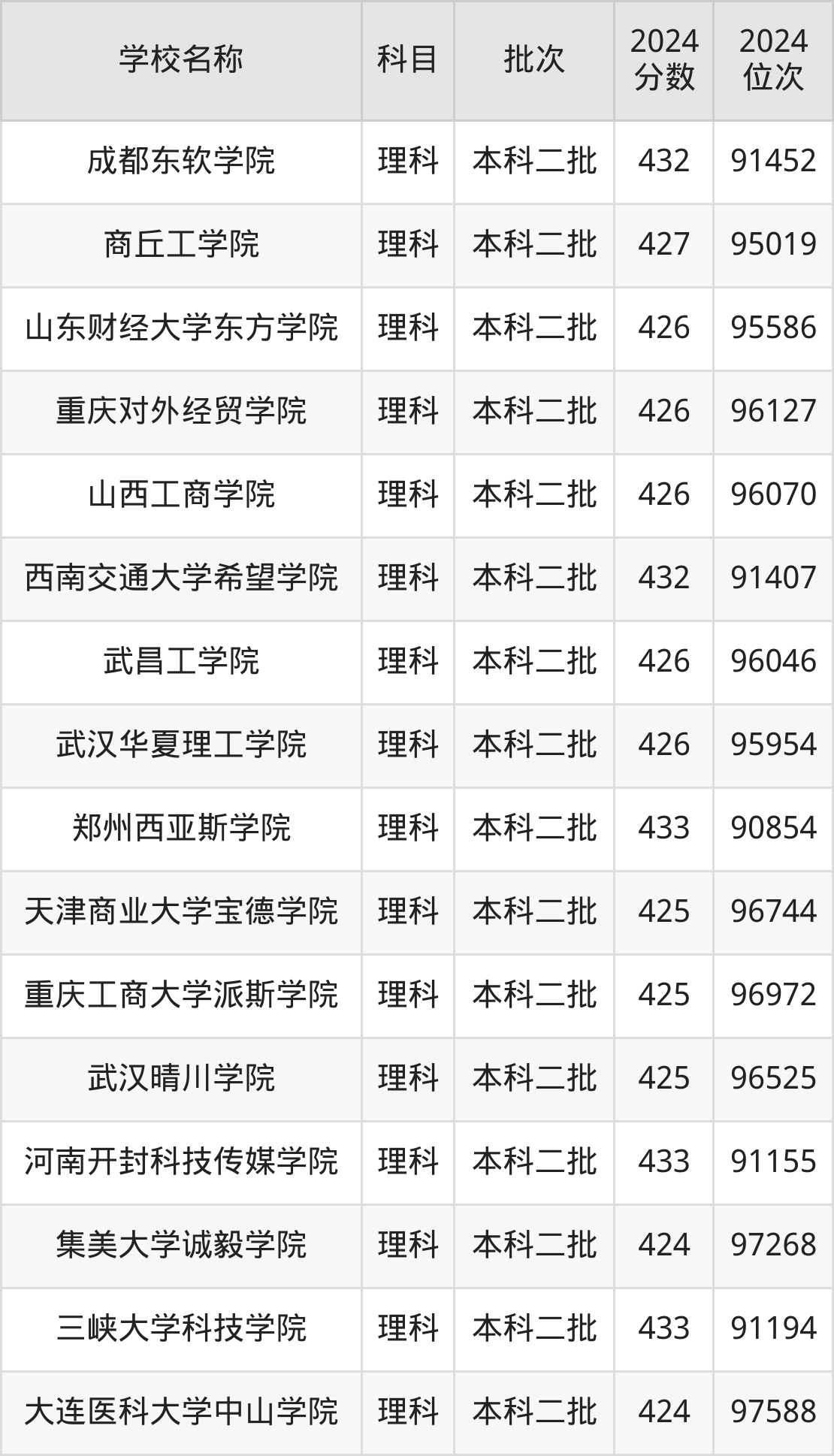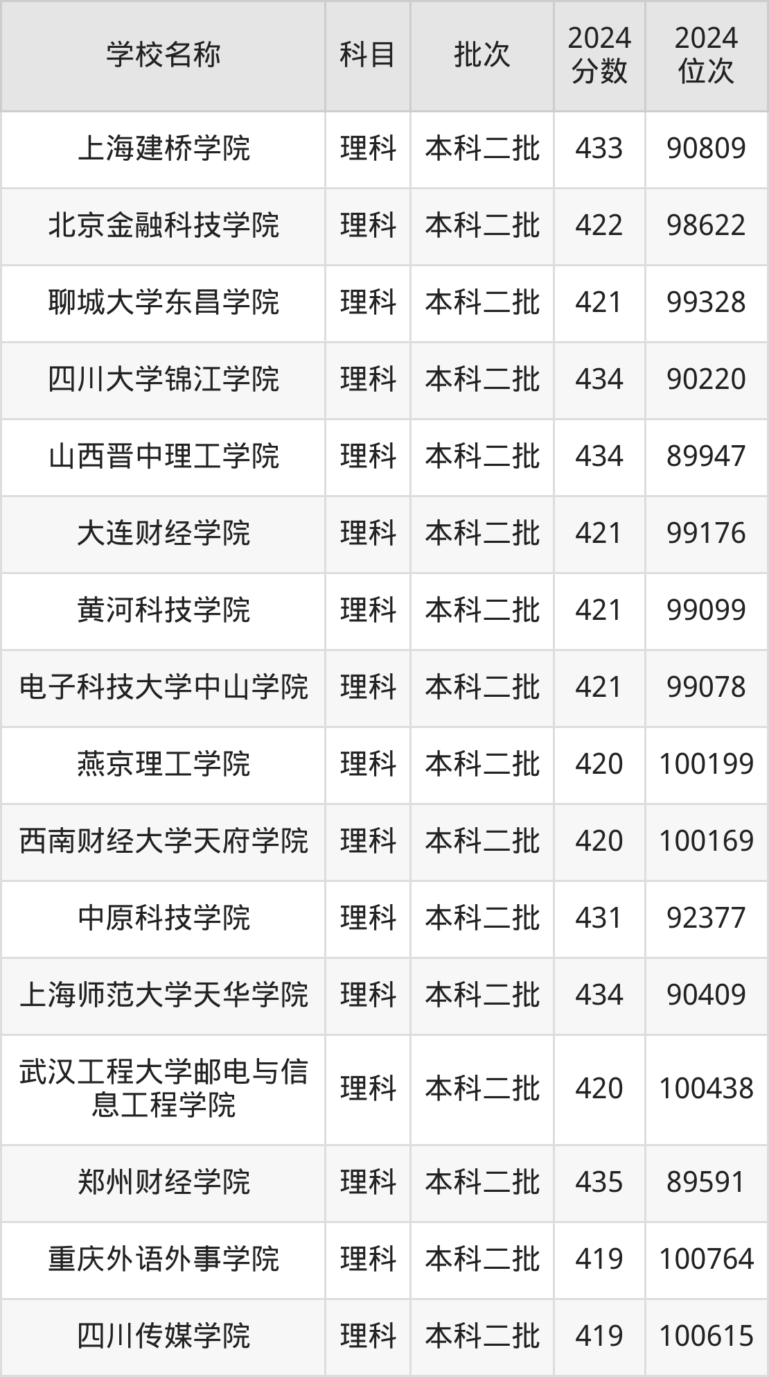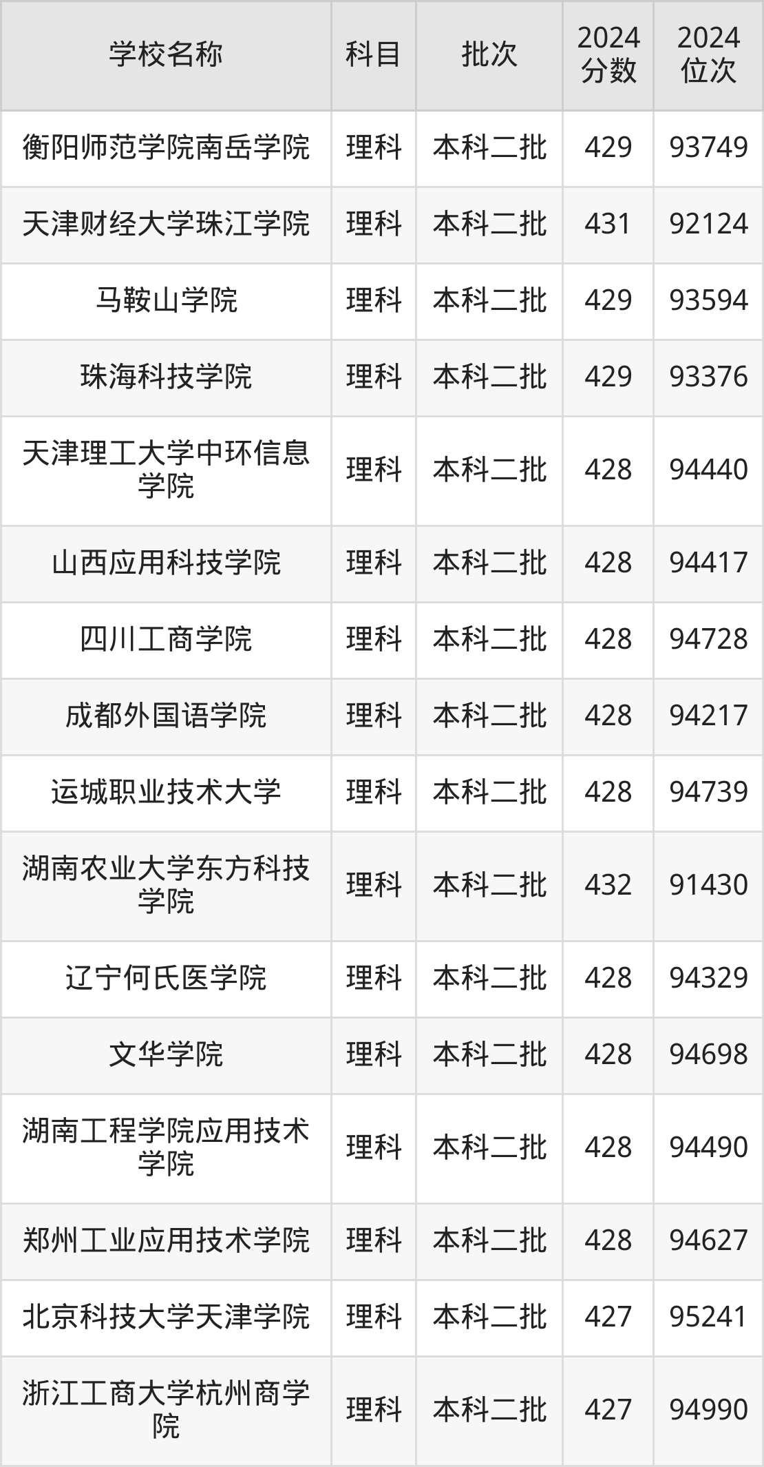 陕西高考理科共有157所二本民办大学在410到450分之间录取,包含南京审计大学金审学院、湖北医药学院药护学院、南京理工大学紫金学院、电子科技大学成都学院、锦州医科大学医疗学院、郑州商学院、首都师范大学科德学院、湖南科技大学潇湘学院、南京邮电大学通达学院、南华大学船山学院。