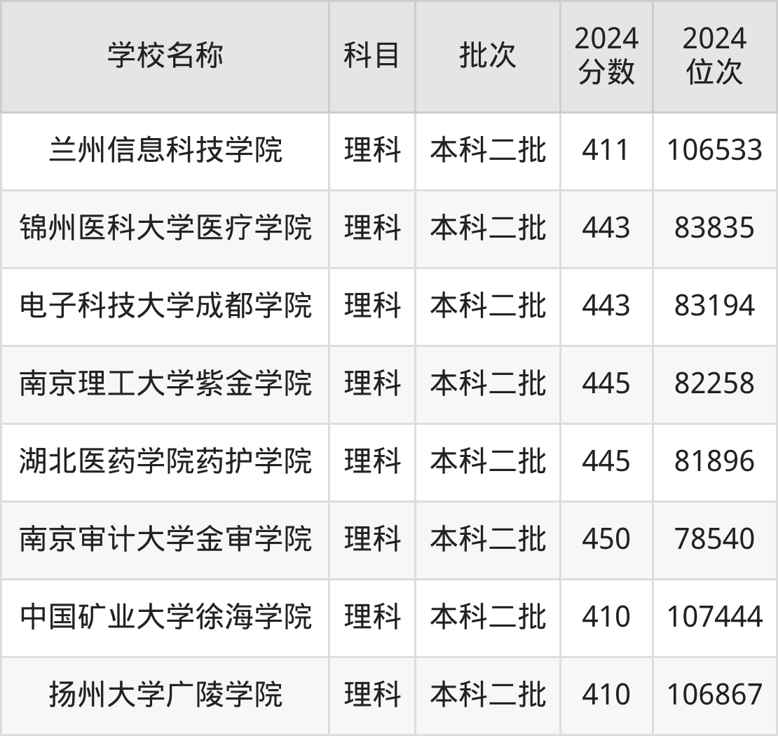 全国各省410到450分能够上的二本民办大学是不同的。小编以国内部分高考省份为例,为大家带来410到450分的二本民办大学最低录取分数线汇总,供2025届想报考二本民办大学的考生同学们查看。