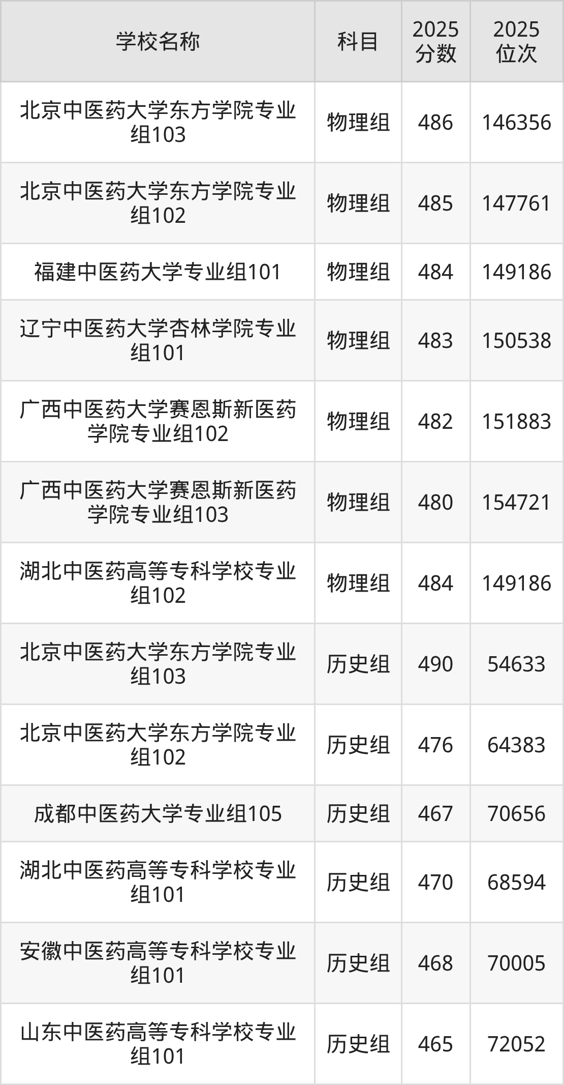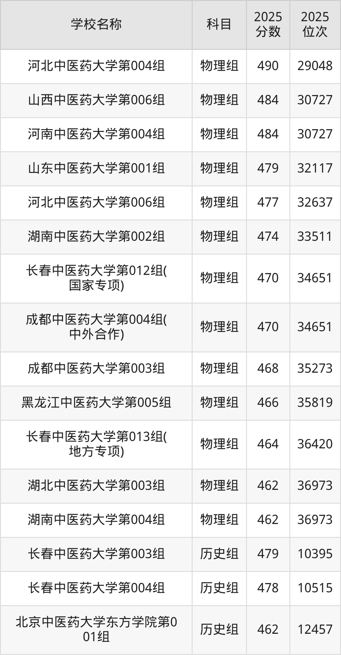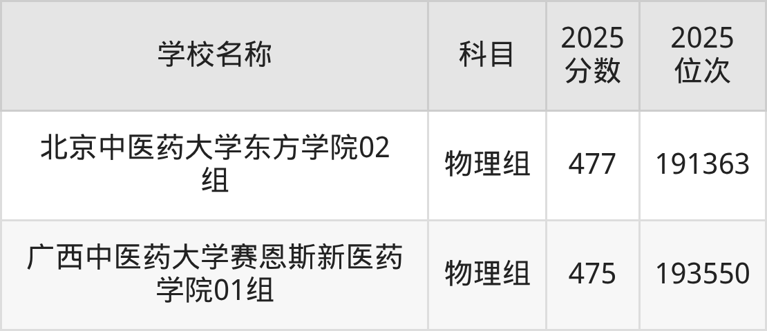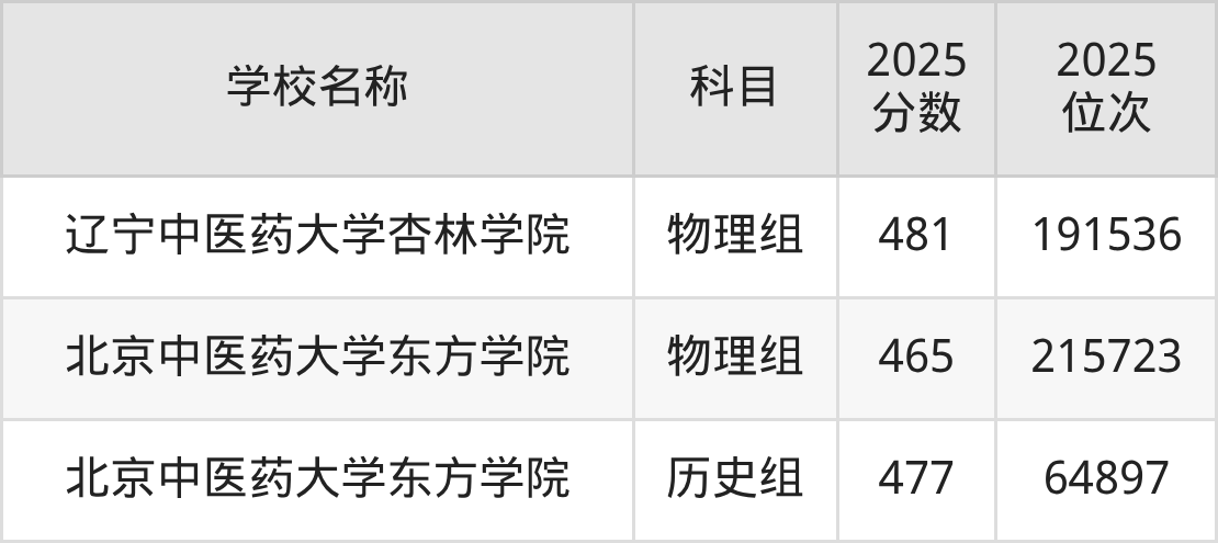 吉林高考历史组共有2所中医药大学在460到490分之间录取,包含长春中医药大学、北京中医药大学东方学院。