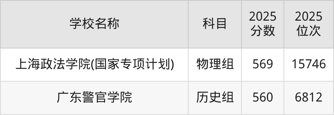 贵州高考历史组共有1所二本政法大学在560到570分之间录取,包含广东警官学院。