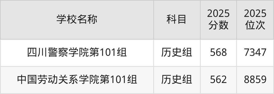 重庆高考历史组共有1所二本政法大学在560到570分之间录取,包含四川警察学院。