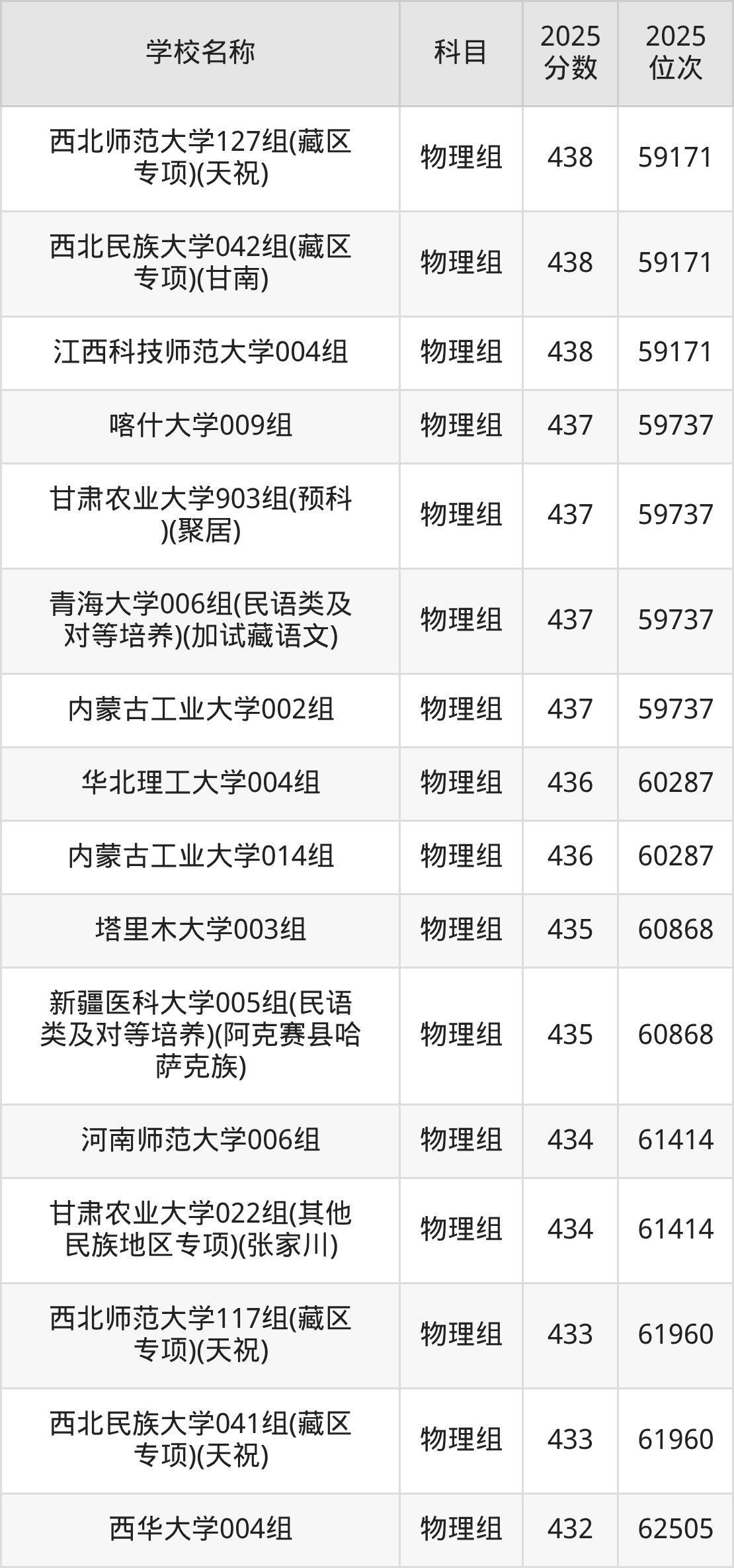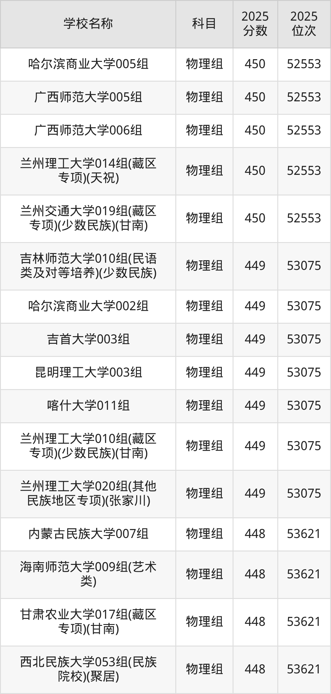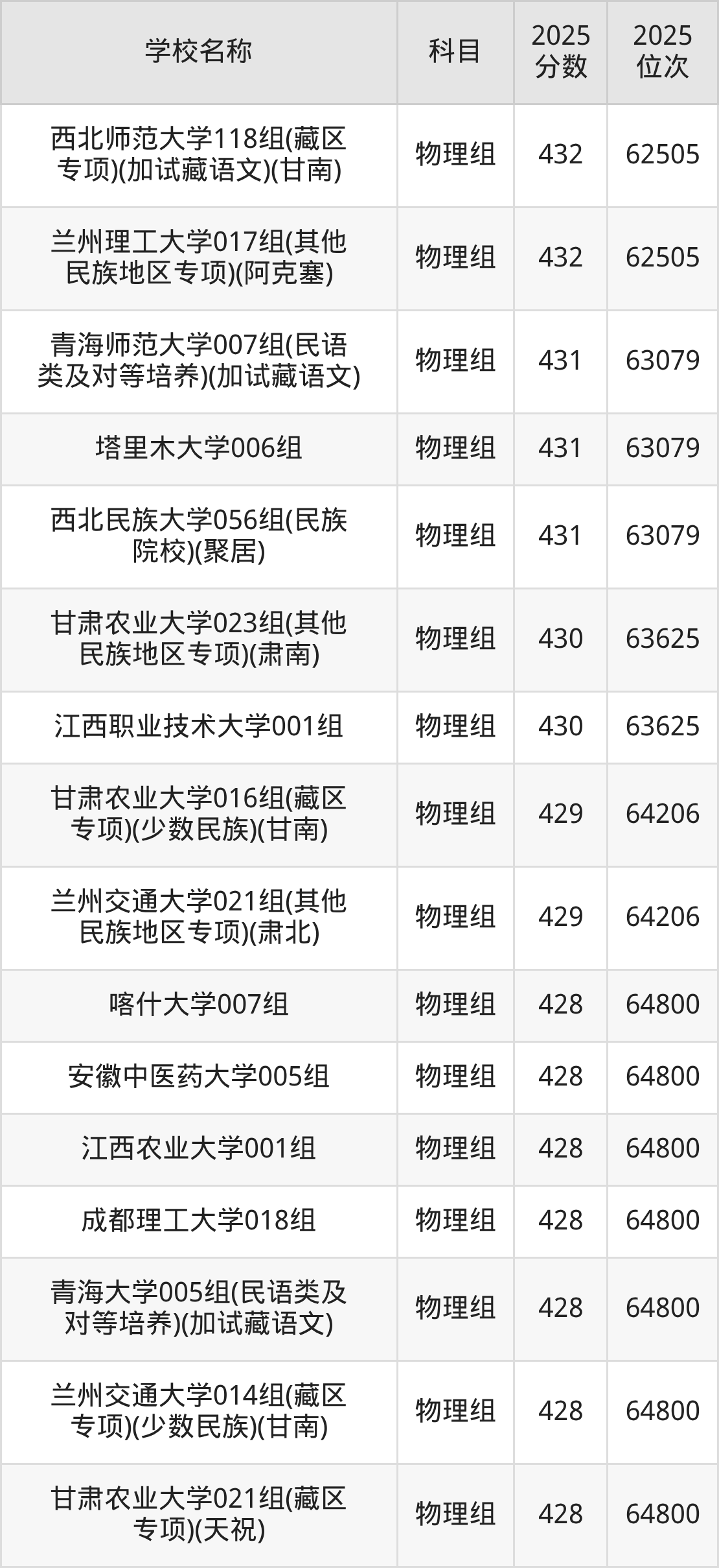 甘肃高考物理组共有46所重点大学在420到450分之间录取,包含哈尔滨商业大学、广西师范大学、兰州理工大学、兰州交通大学、吉林师范大学、吉首大学、昆明理工大学、喀什大学、内蒙古民族大学、海南师范大学。
