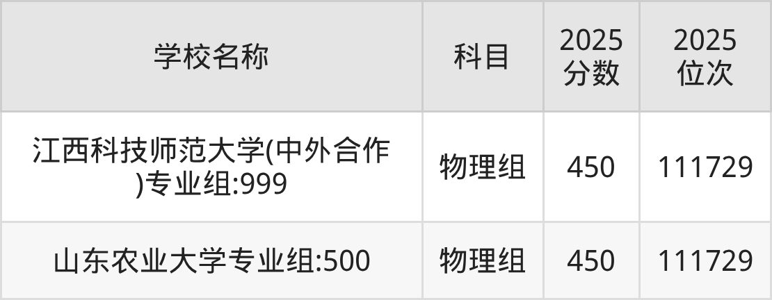 福建高考物理组共有2所重点大学在420到450分之间录取,包含江西科技师范大学(中外合作)、山东农业大学。
