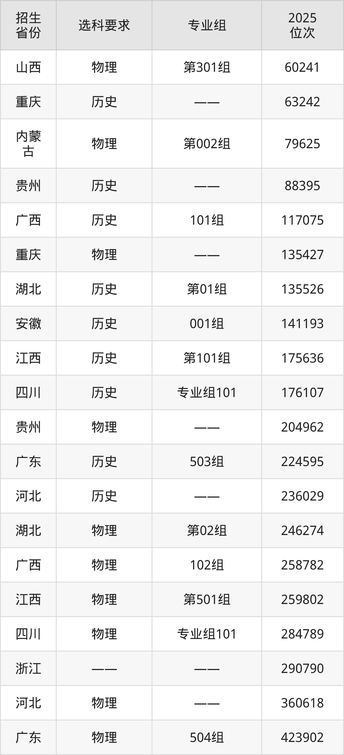 贵州民用航空职业学院2025年在全国各省的位次差异较大,最高位次是60241位(山西物理类)、最低位次是669320位(山东)。各省具体位次请看下图: