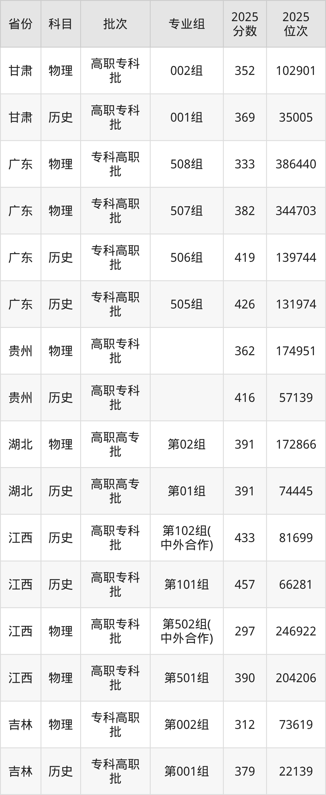 江西交通职业技术学院第001组:2025年投档录取最低分为370分,录取最低位次为26105名。