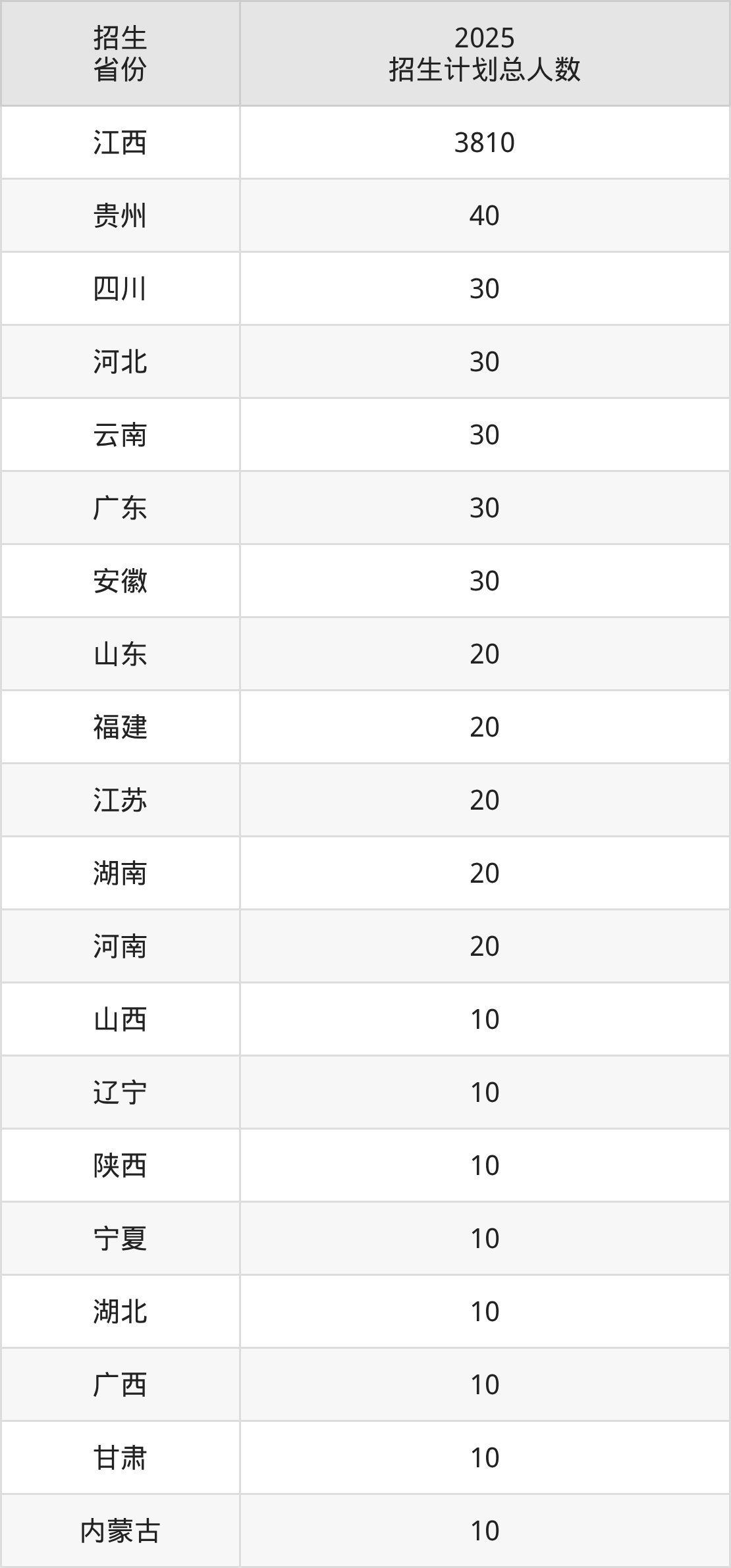 2025年江西交通职业技术学院面向全国23个省市开展专科招生;招生专业共43个,招生人数共4203人。2025年在江西省招生计划总人数是3810人,其中,江西交通职业技术学院在江西省招生人数最多的是道路与桥梁工程技术。江西交通职业技术学院在各省具体招生人数情况如下表。